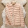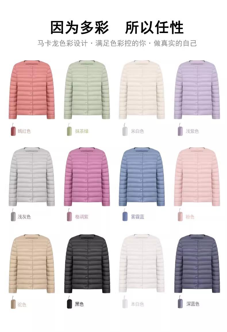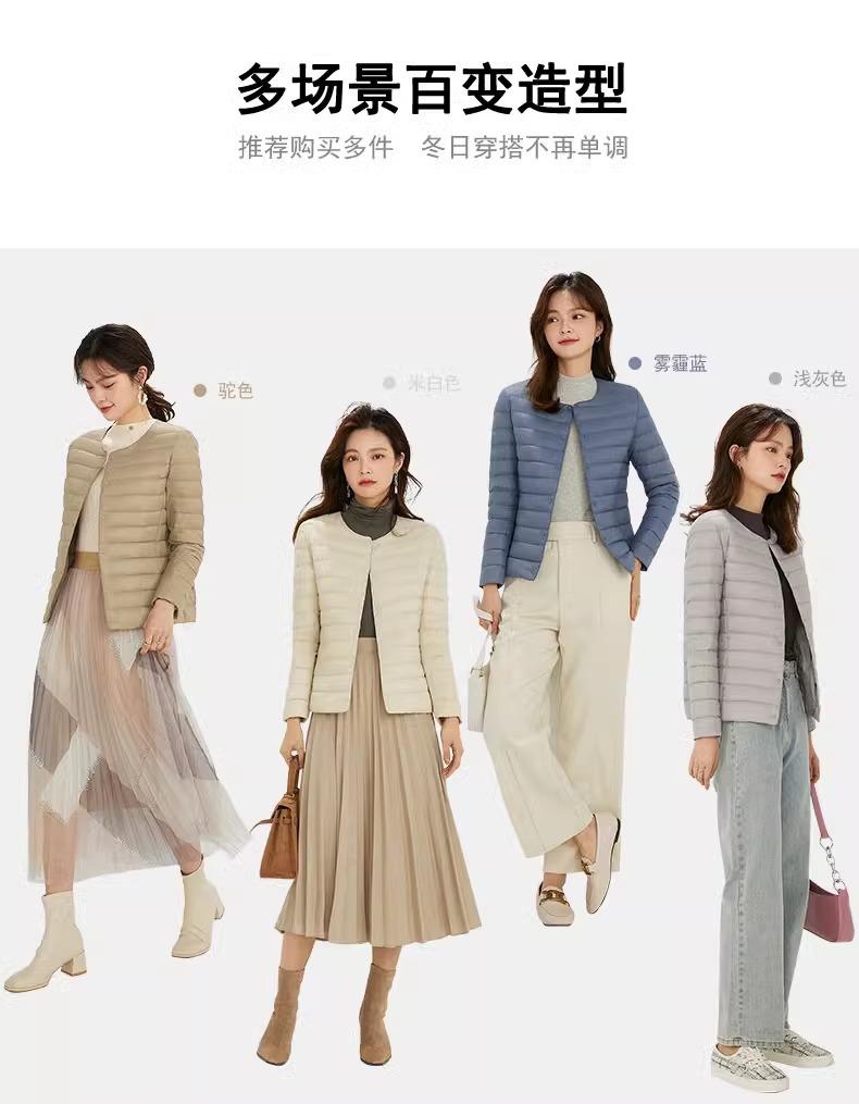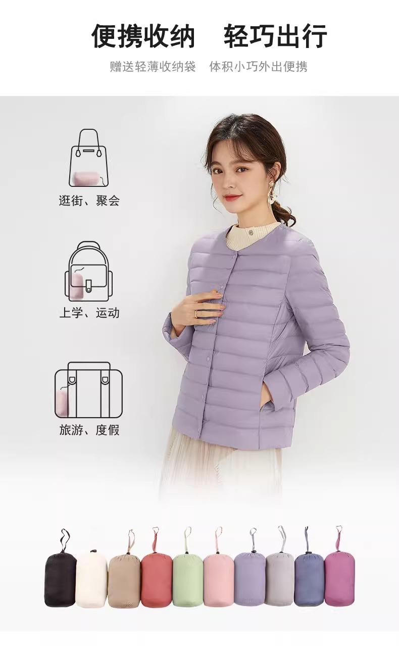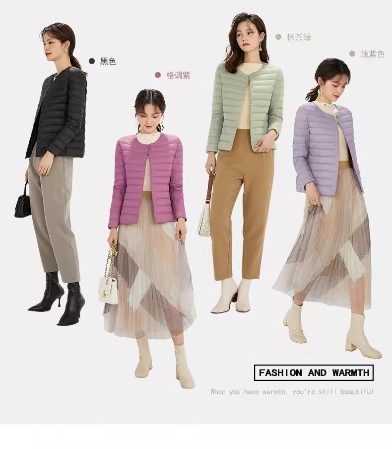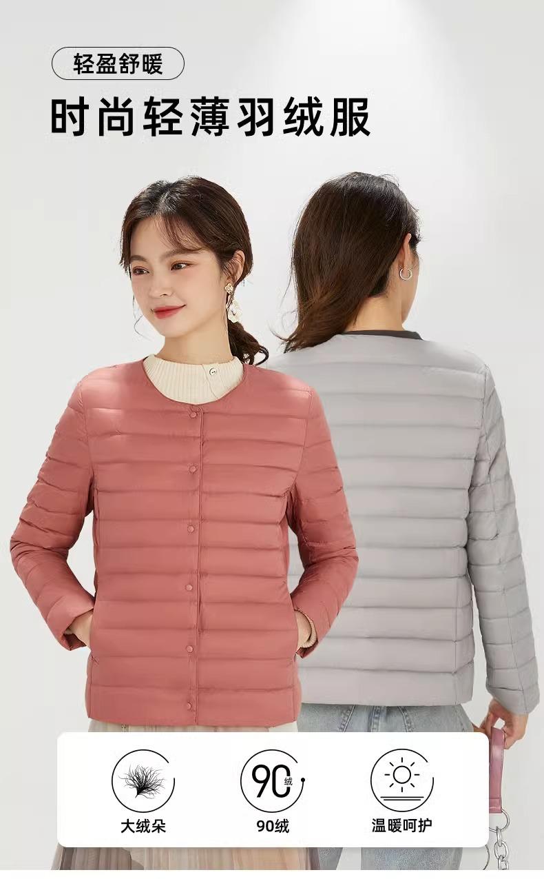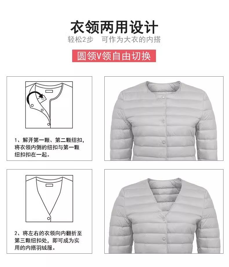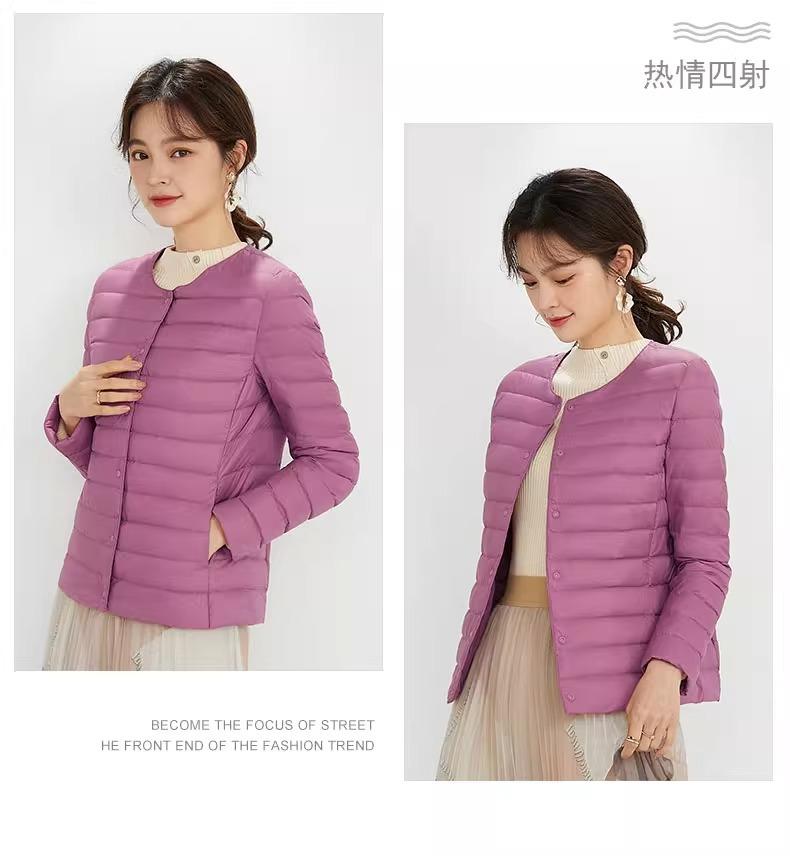 2025 Nuevo Chaqueta de Plumón Ligera 90 para Mujer Cuello Redondo Cálido Forro Corto Cuello en V Ropa de Otoño e Invierno para Mujer Sin Cuello