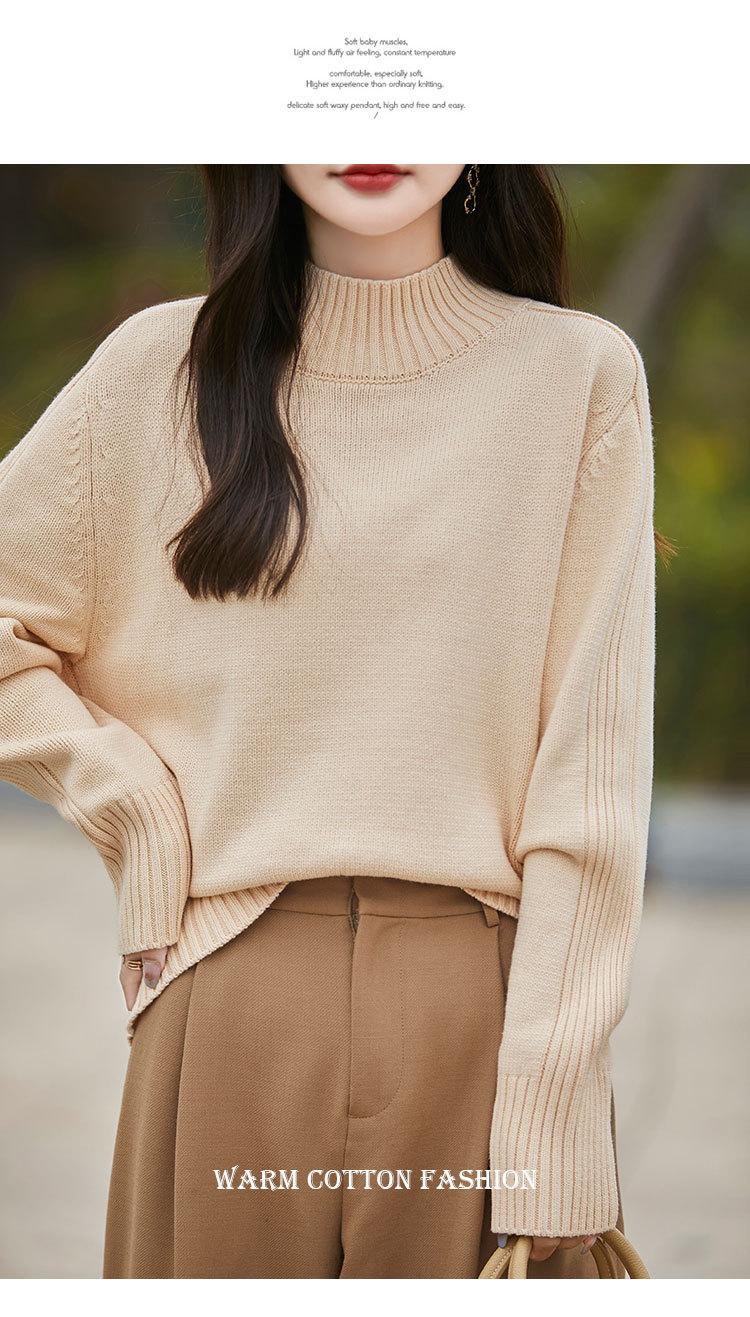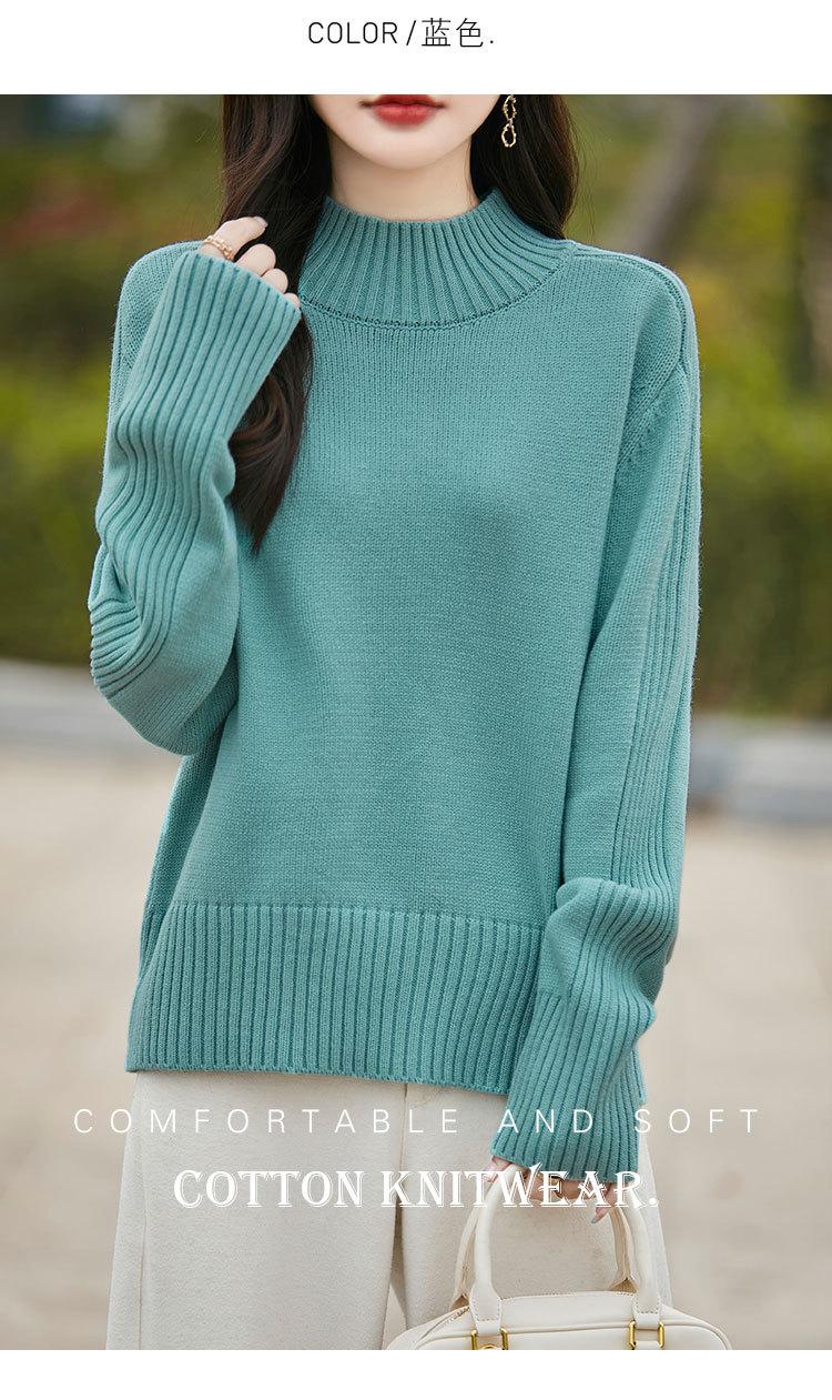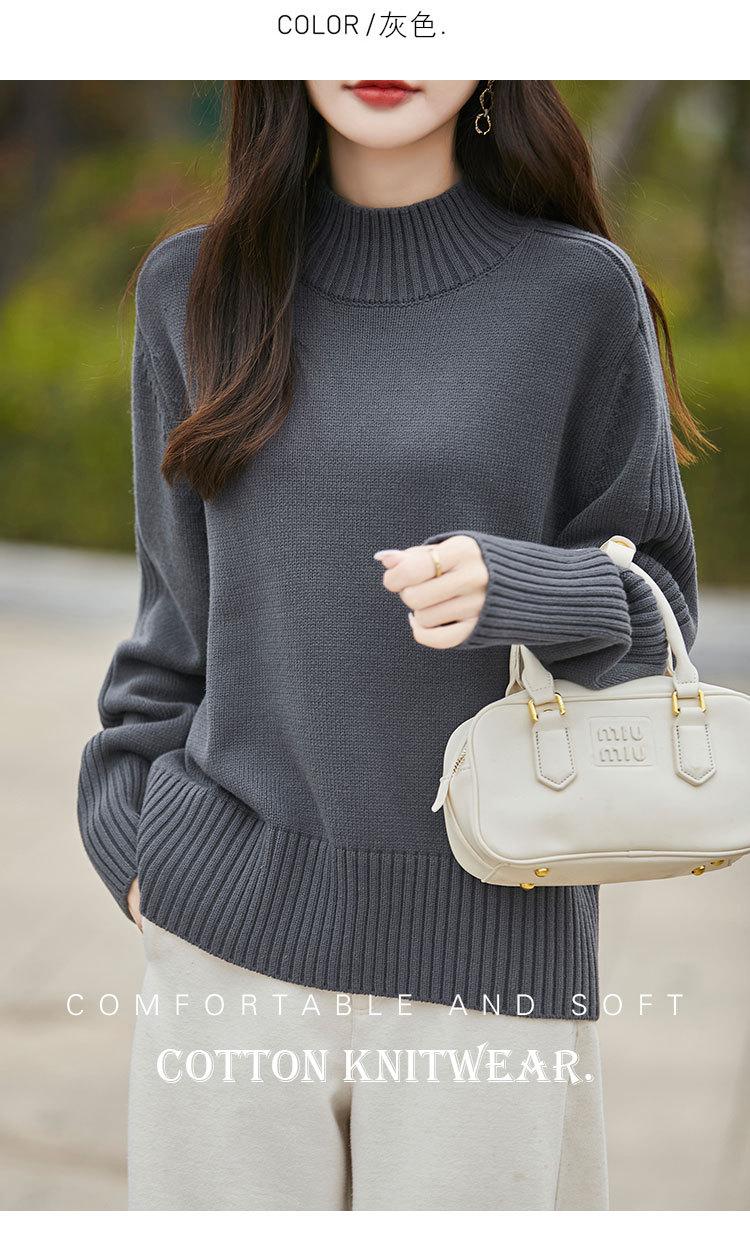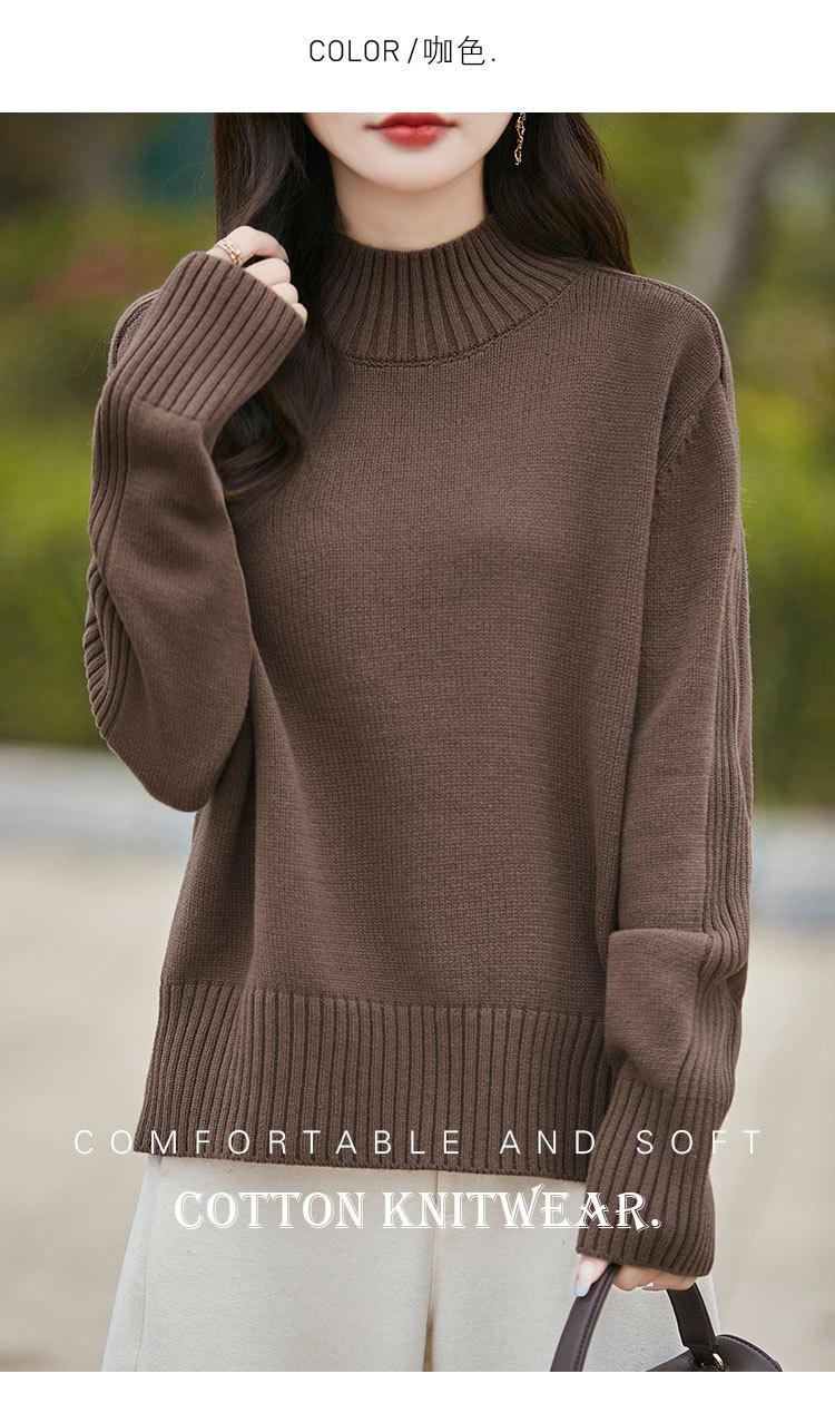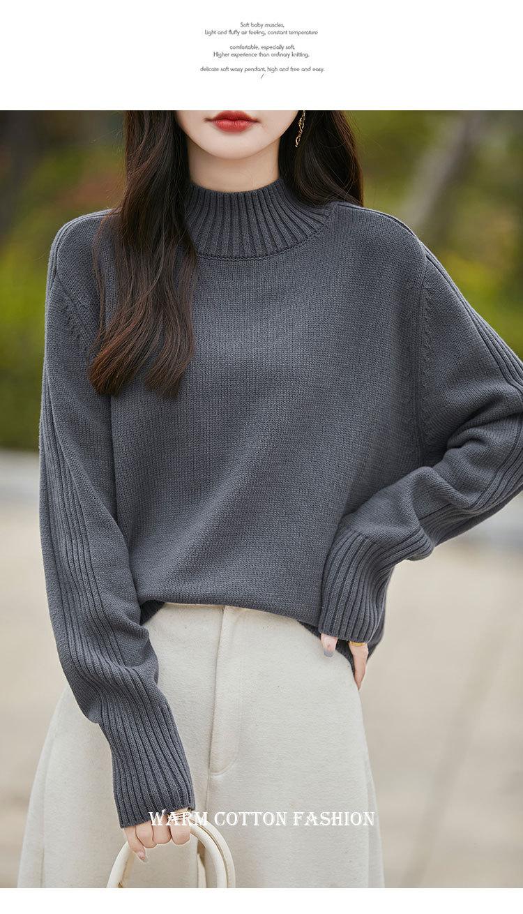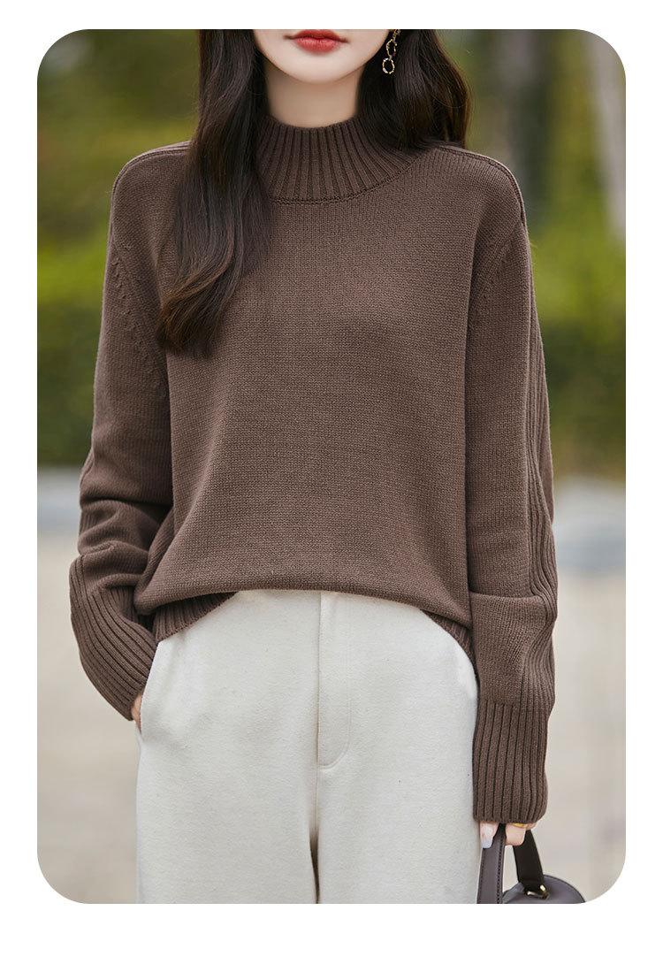 Suéter grueso de algodón para mujer, jersey de cuello alto y manga larga, holgado y adelgazante, para otoño e invierno.