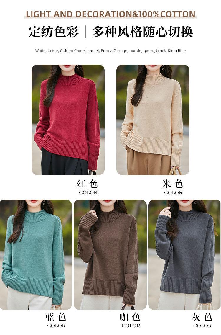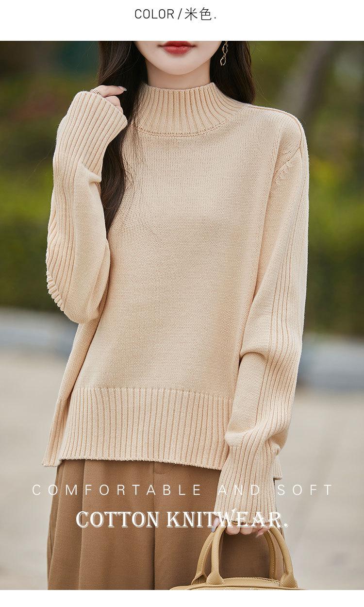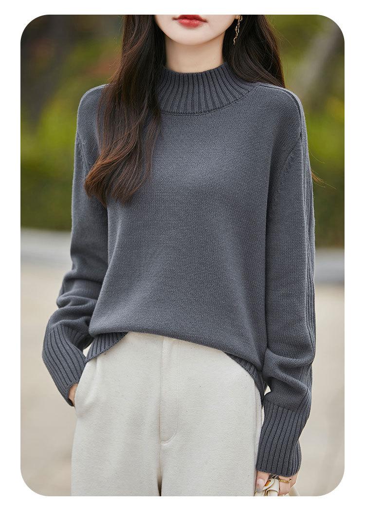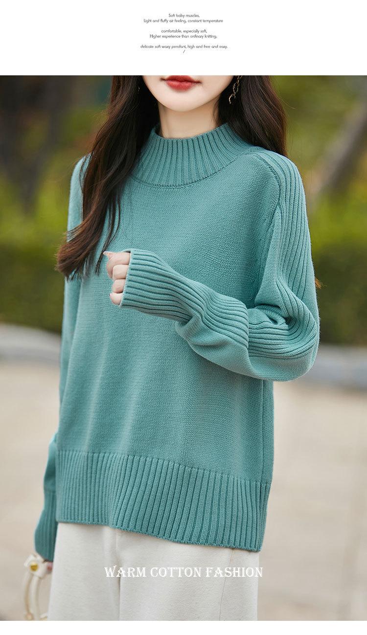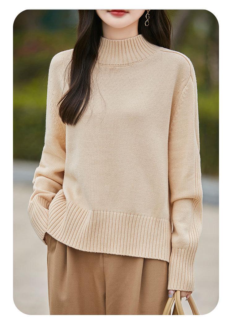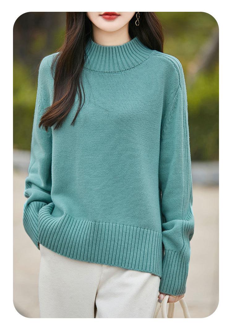 Suéter grueso de algodón para mujer, jersey de cuello alto y manga larga, holgado y adelgazante, para otoño e invierno.