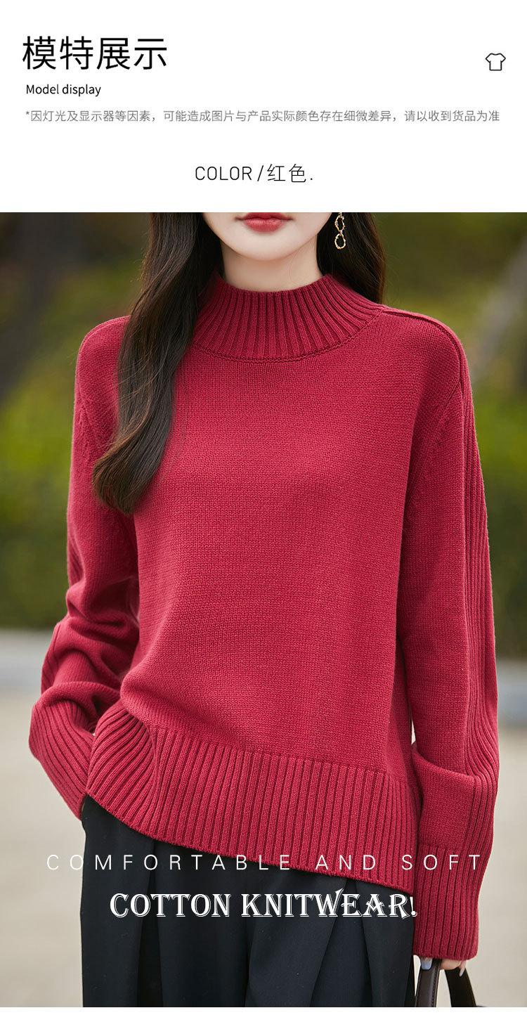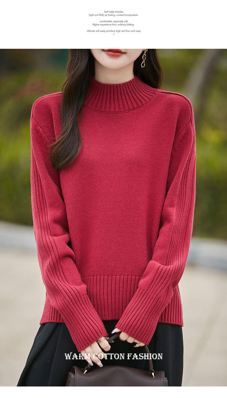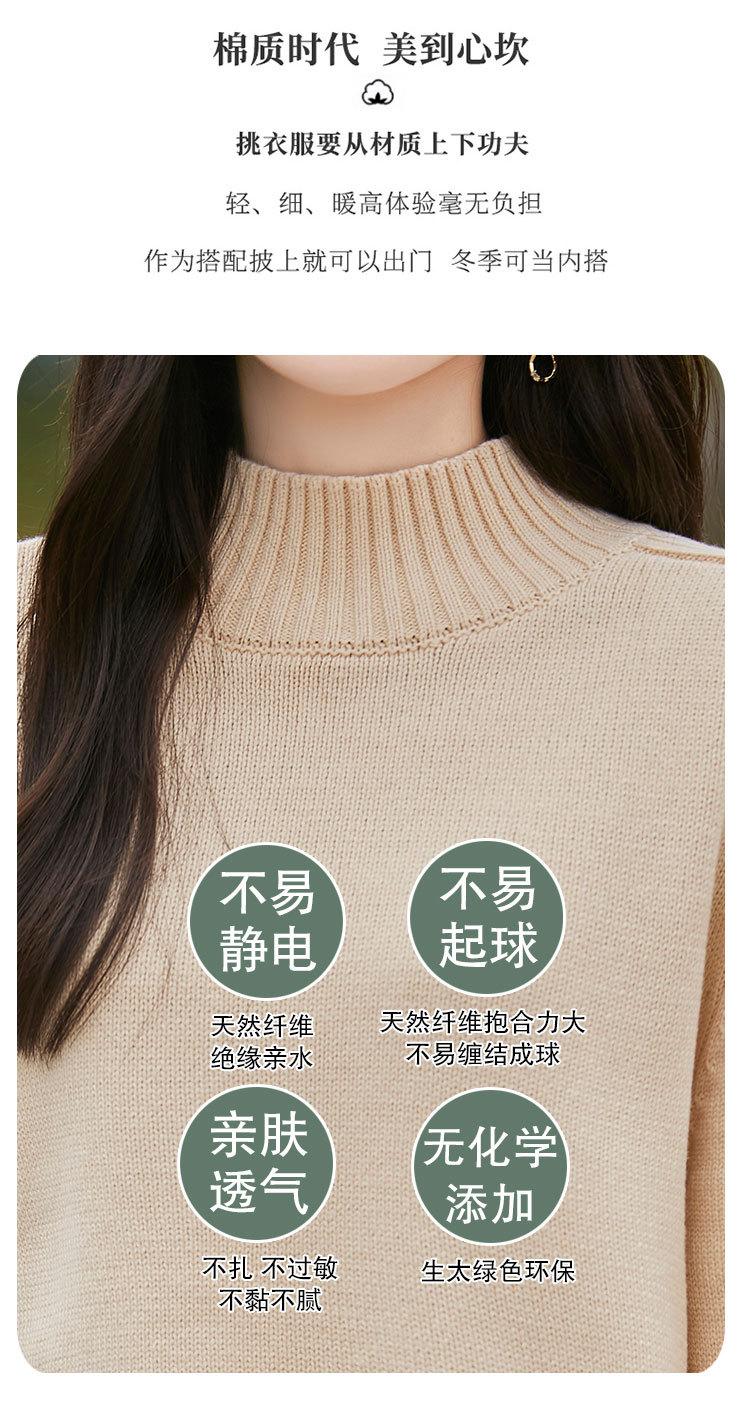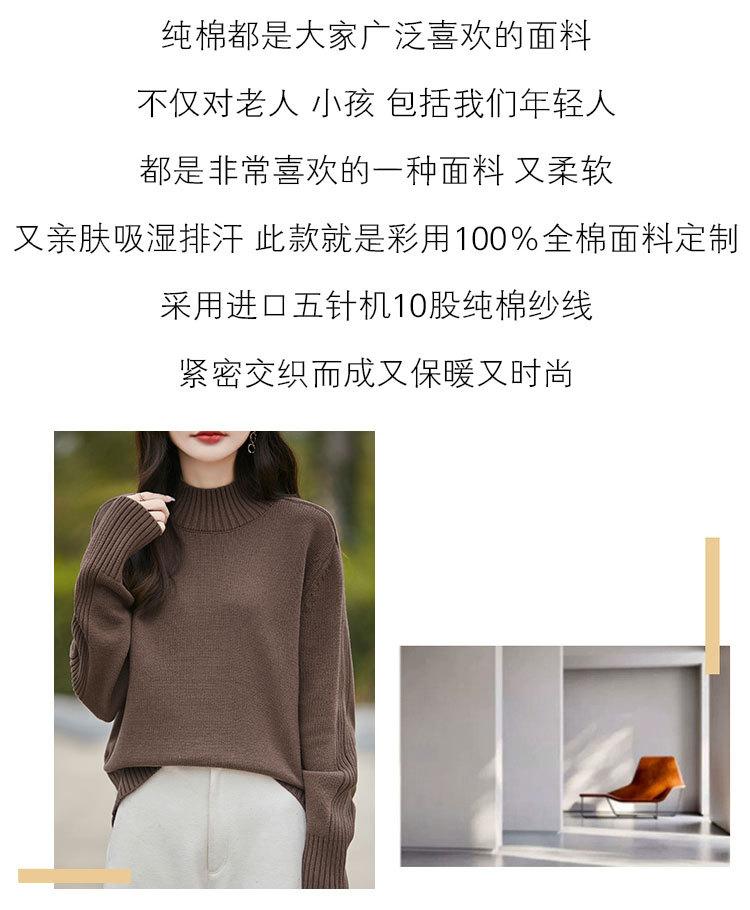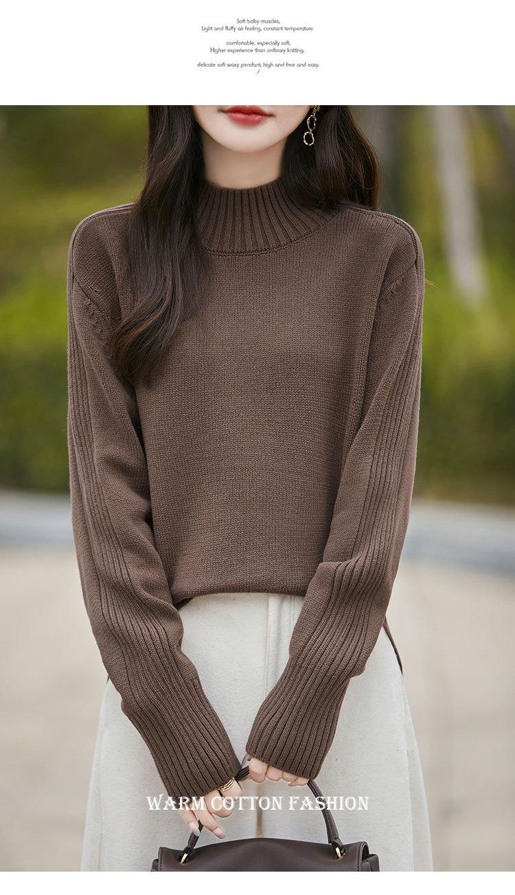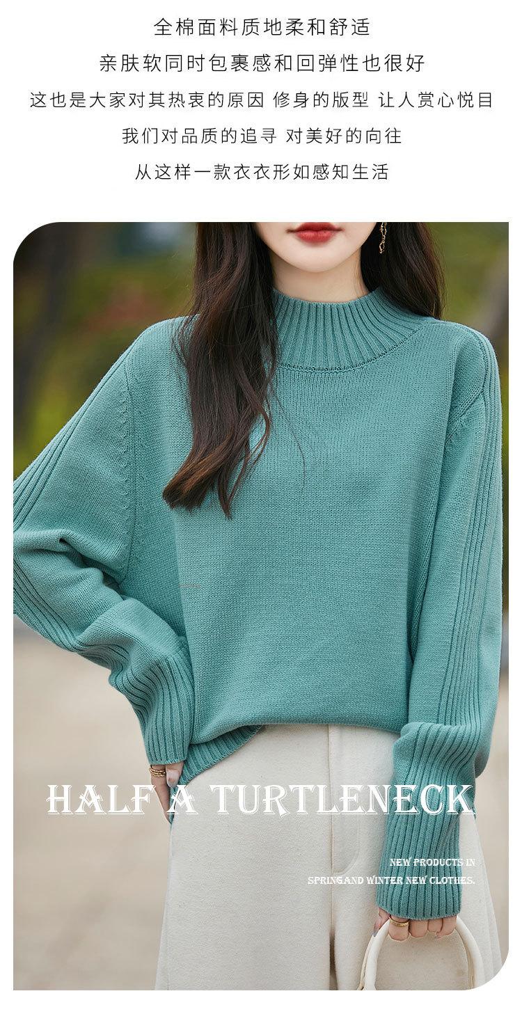 Suéter grueso de algodón para mujer, jersey de cuello alto y manga larga, holgado y adelgazante, para otoño e invierno.