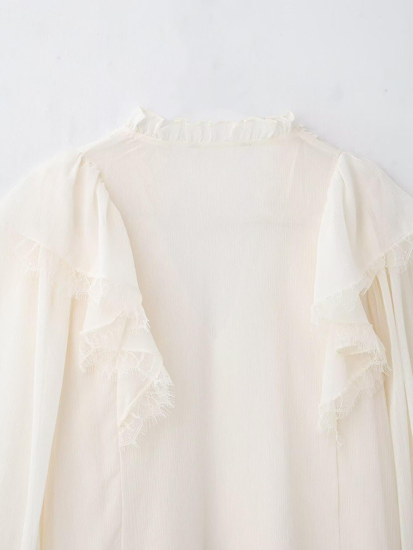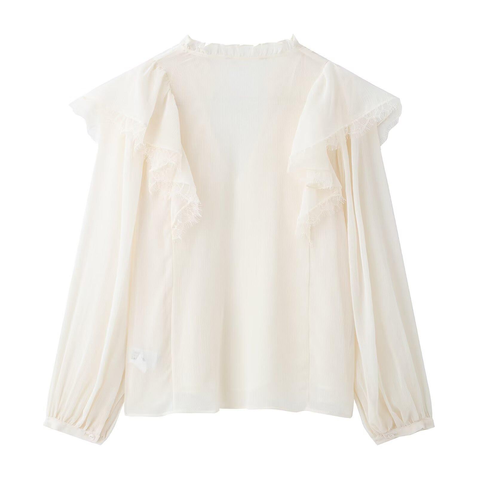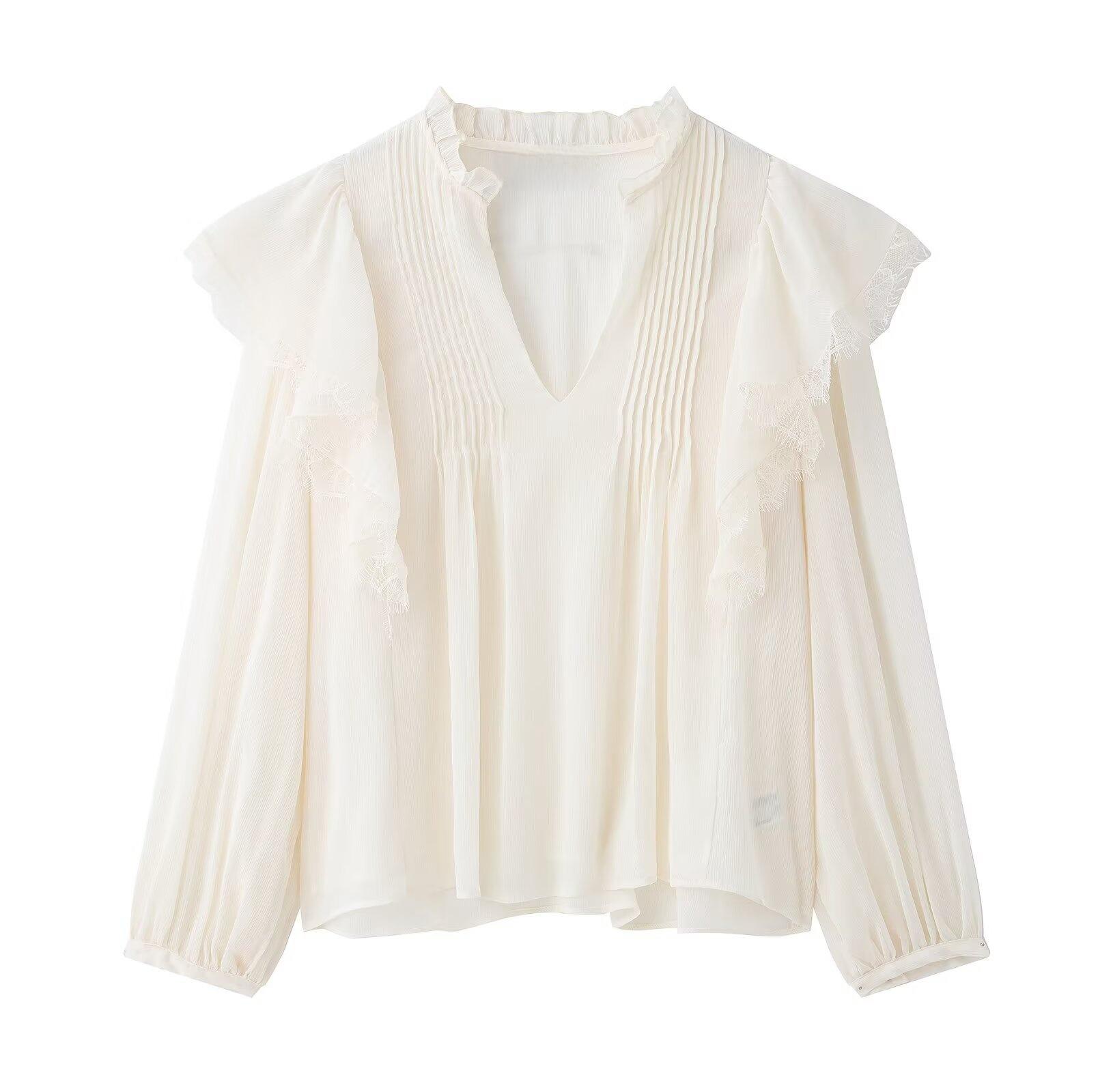Ropa de mujer europea y americana transfronteriza, primavera y verano 2025, nueva moda, camisa decorativa laminada con encaje de temperamento suelto 5029052
