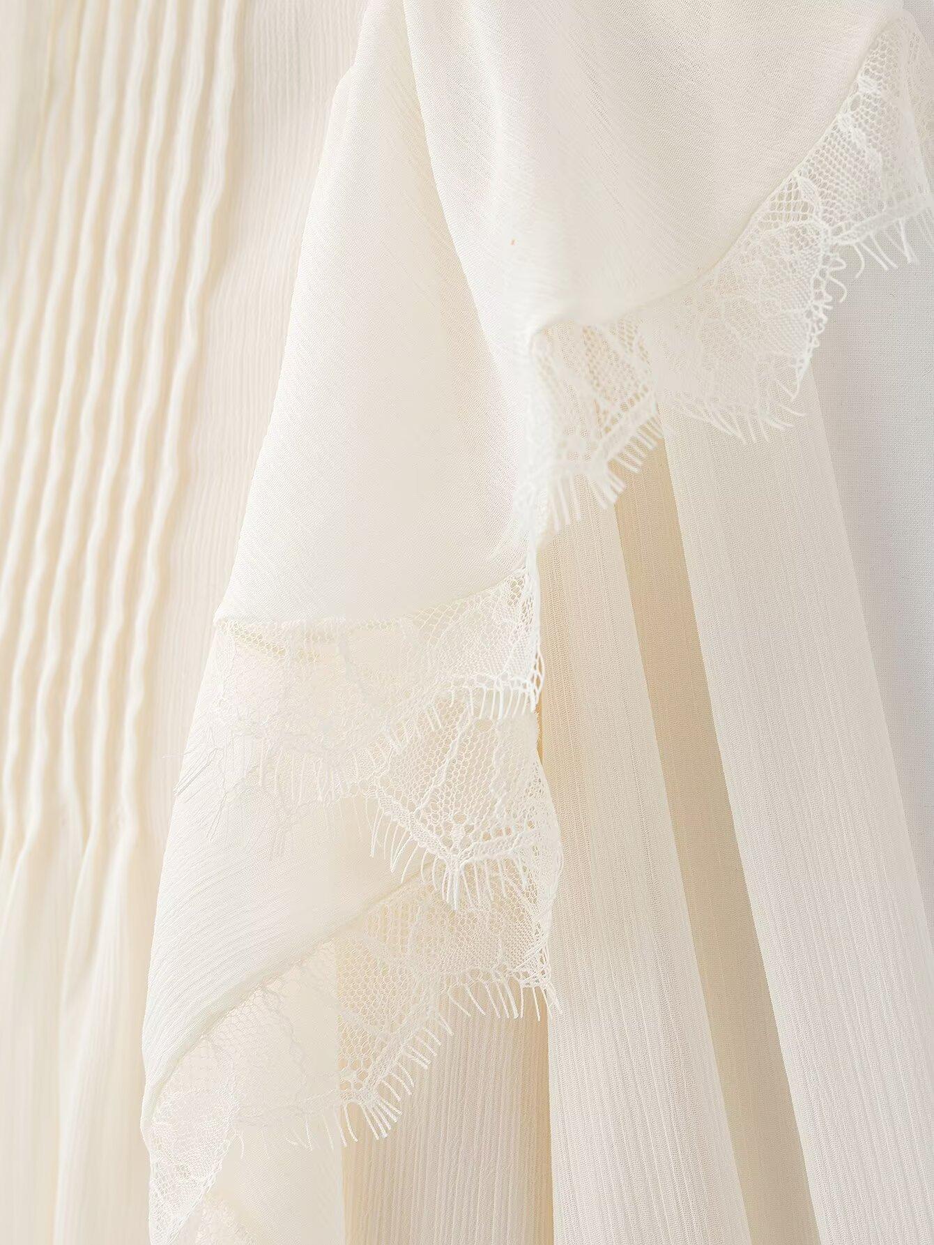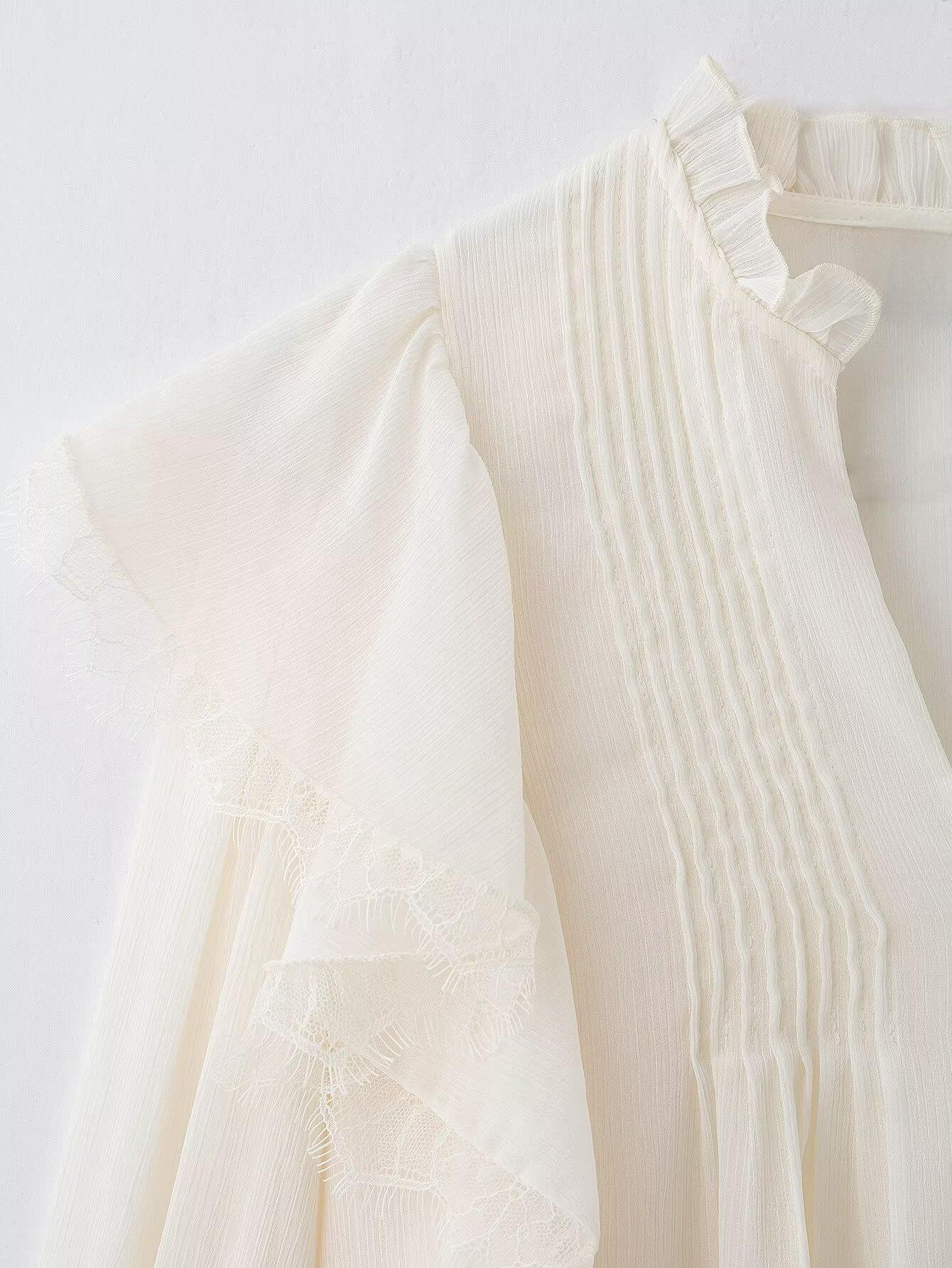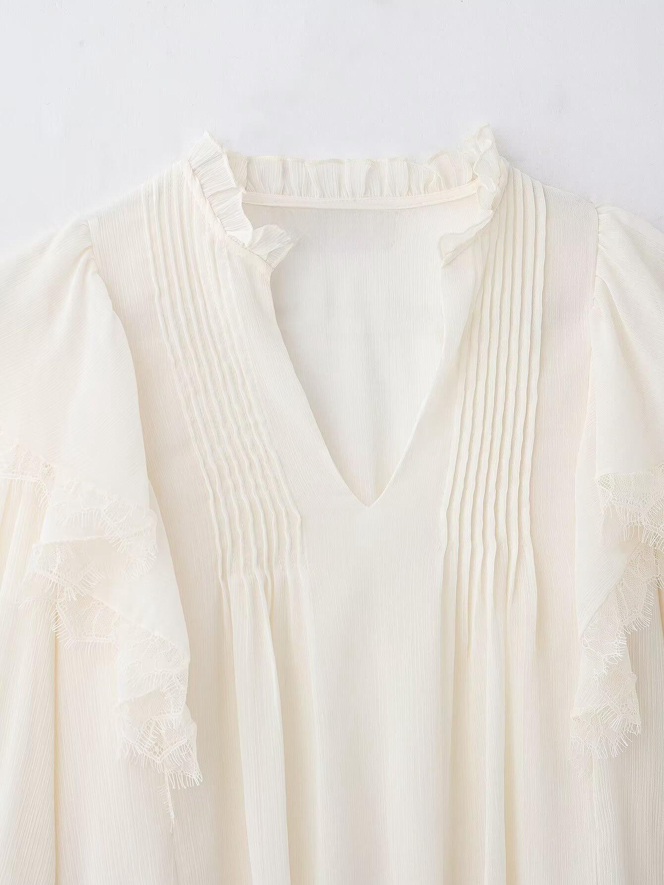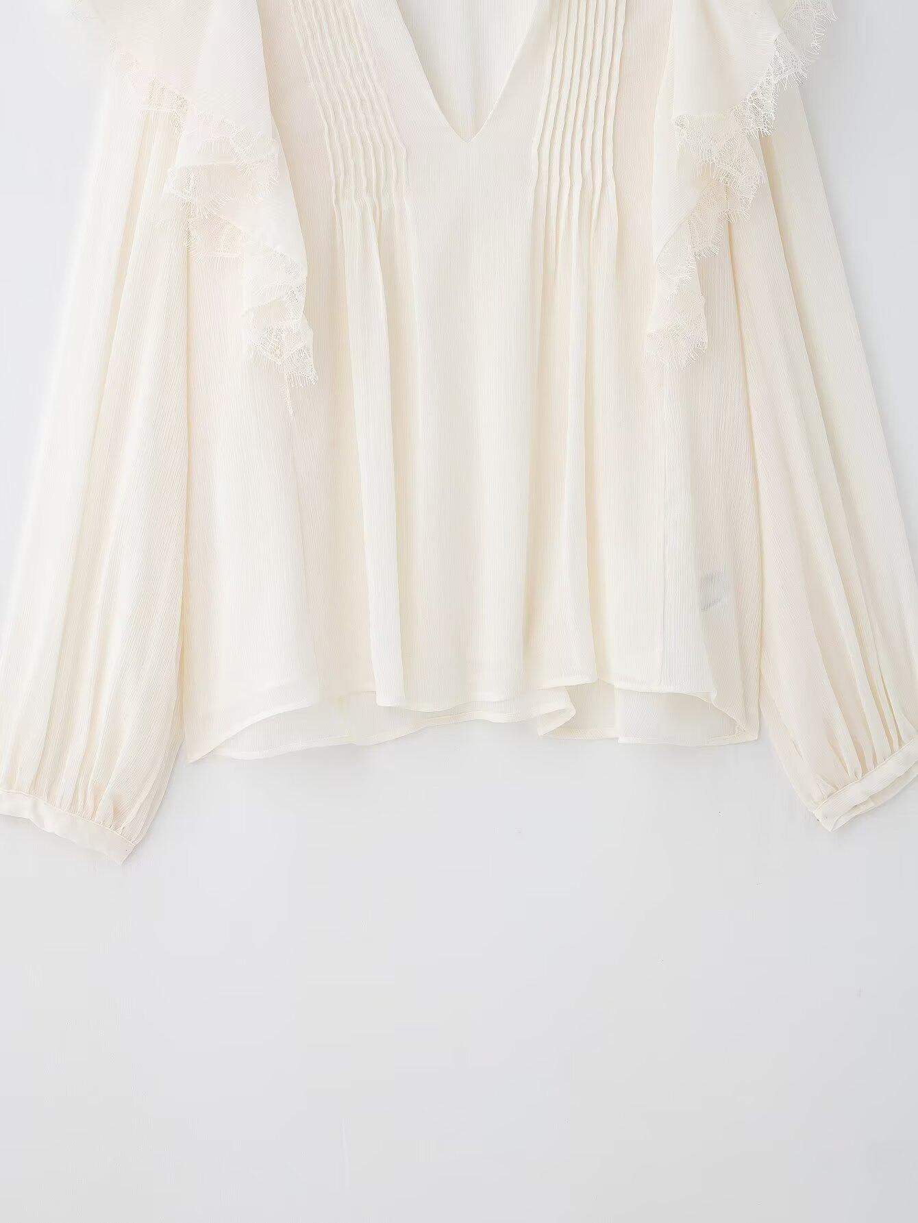 Ropa de mujer europea y americana transfronteriza, primavera y verano 2025, nueva moda, camisa decorativa laminada con encaje de temperamento suelto 5029052