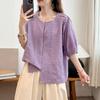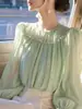 Camisa de Algodón con Encaje de Diseño Francés y Cuello Mao para Mujer Primavera y Otoño Nueva Moda Reductora de Edad Versátil Camisas Tops Venta al por Mayor