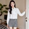 Camisa francesa retro elegante y suave de manga larga con cuello redondo, plisada, transparente y botonadura sencilla (2025)
