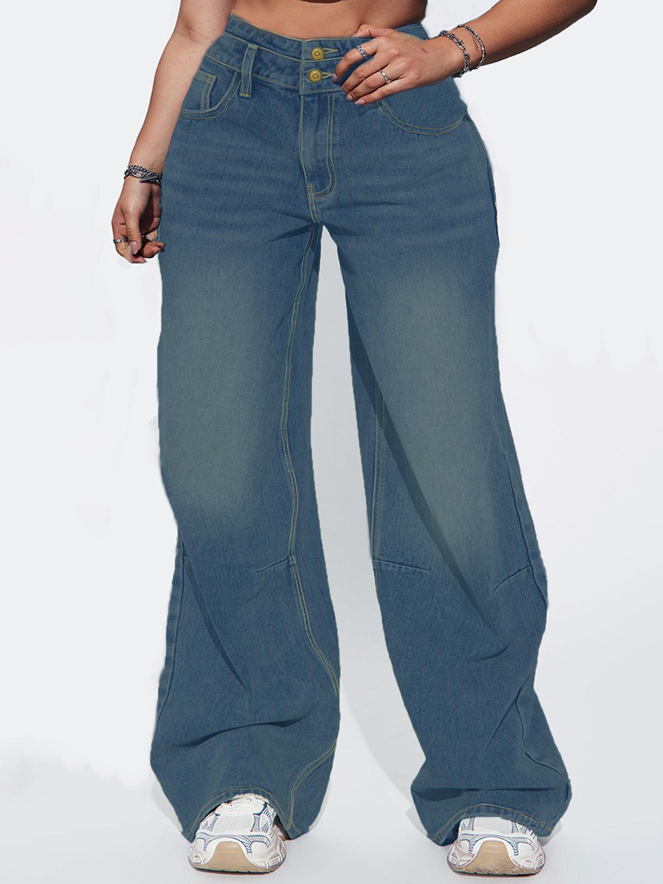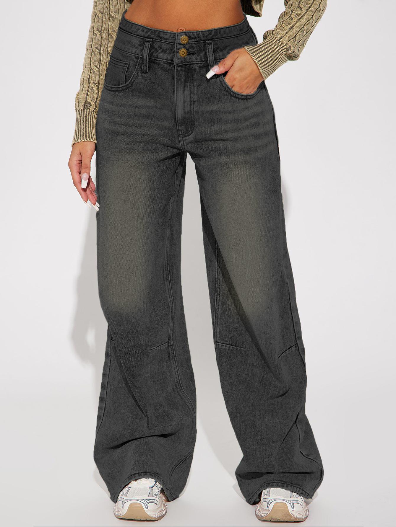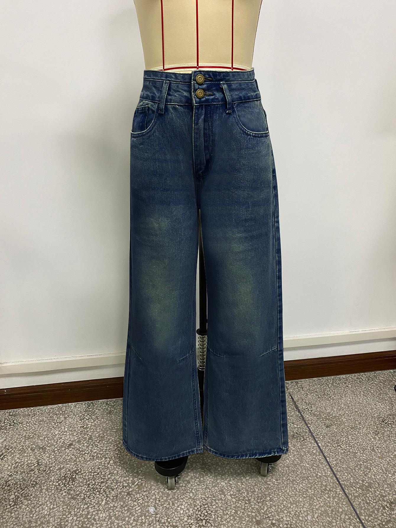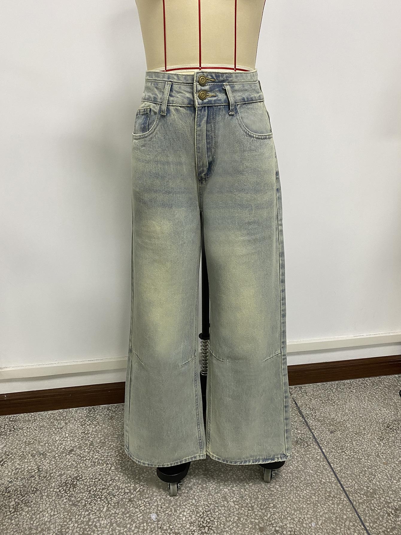 Comercio Exterior Transfronterizo Amazon Diseño Abotonado Europeo y Americano Jeans Retro Pantalones Holgados Casuales Rectos de Pierna Ancha