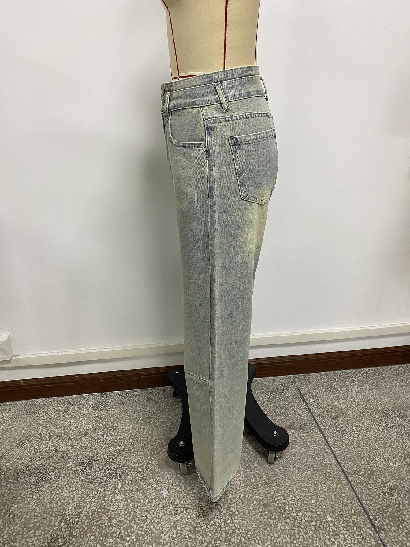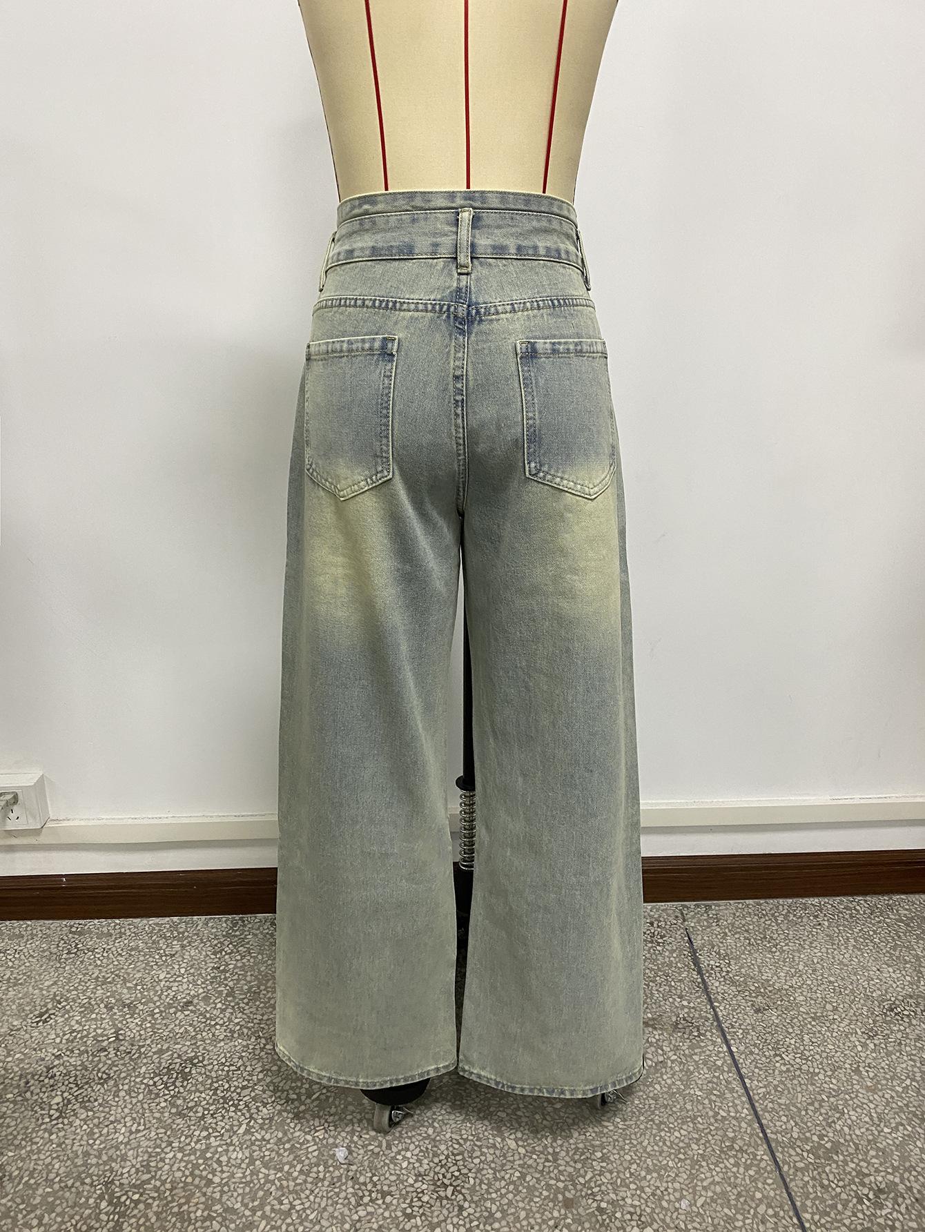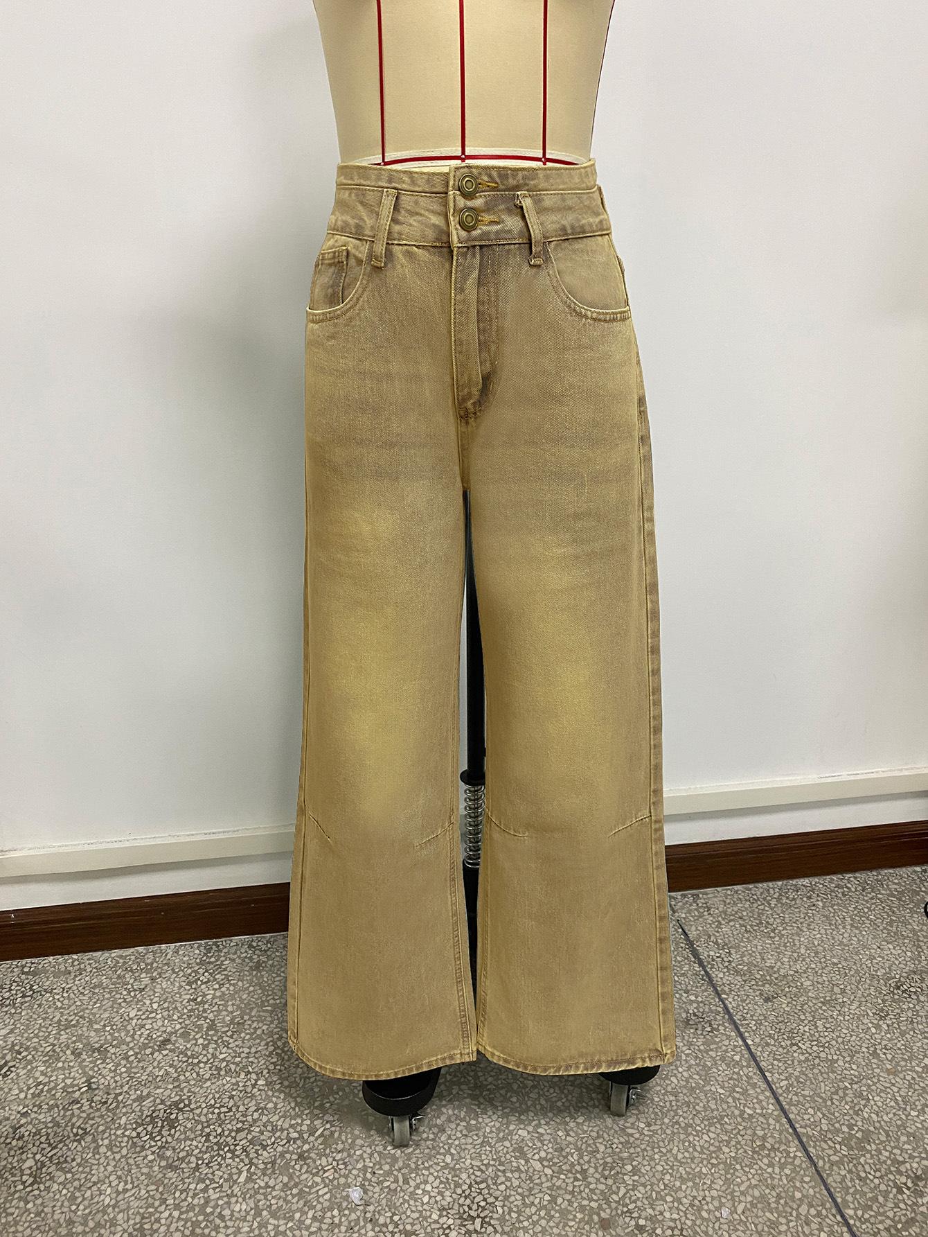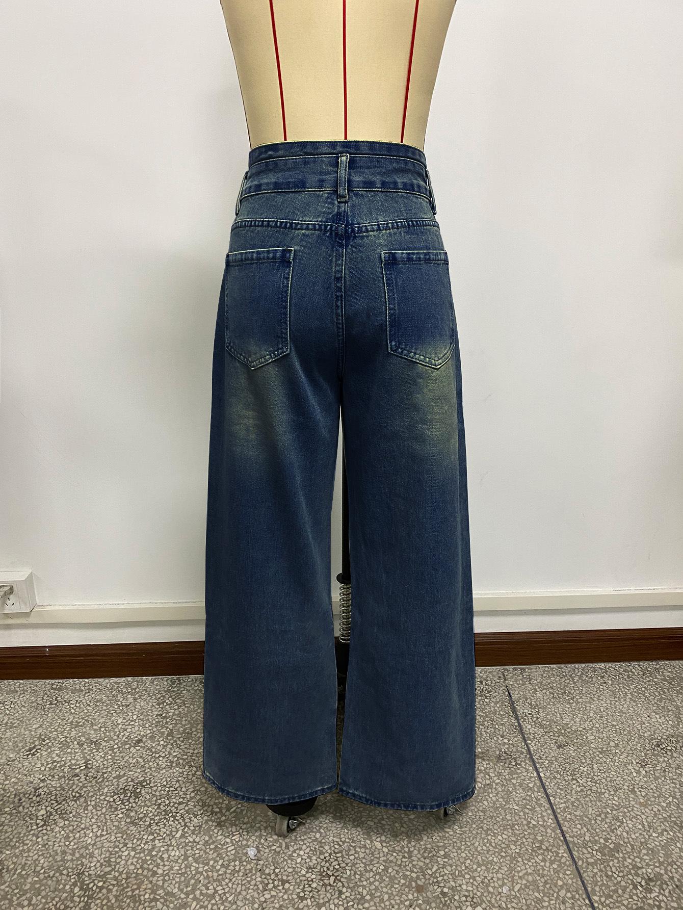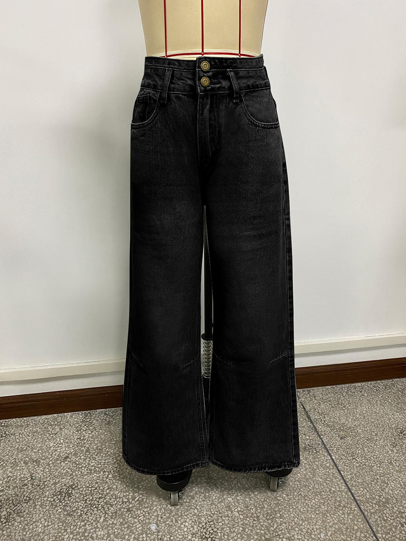 Comercio Exterior Transfronterizo Amazon Diseño Abotonado Europeo y Americano Jeans Retro Pantalones Holgados Casuales Rectos de Pierna Ancha