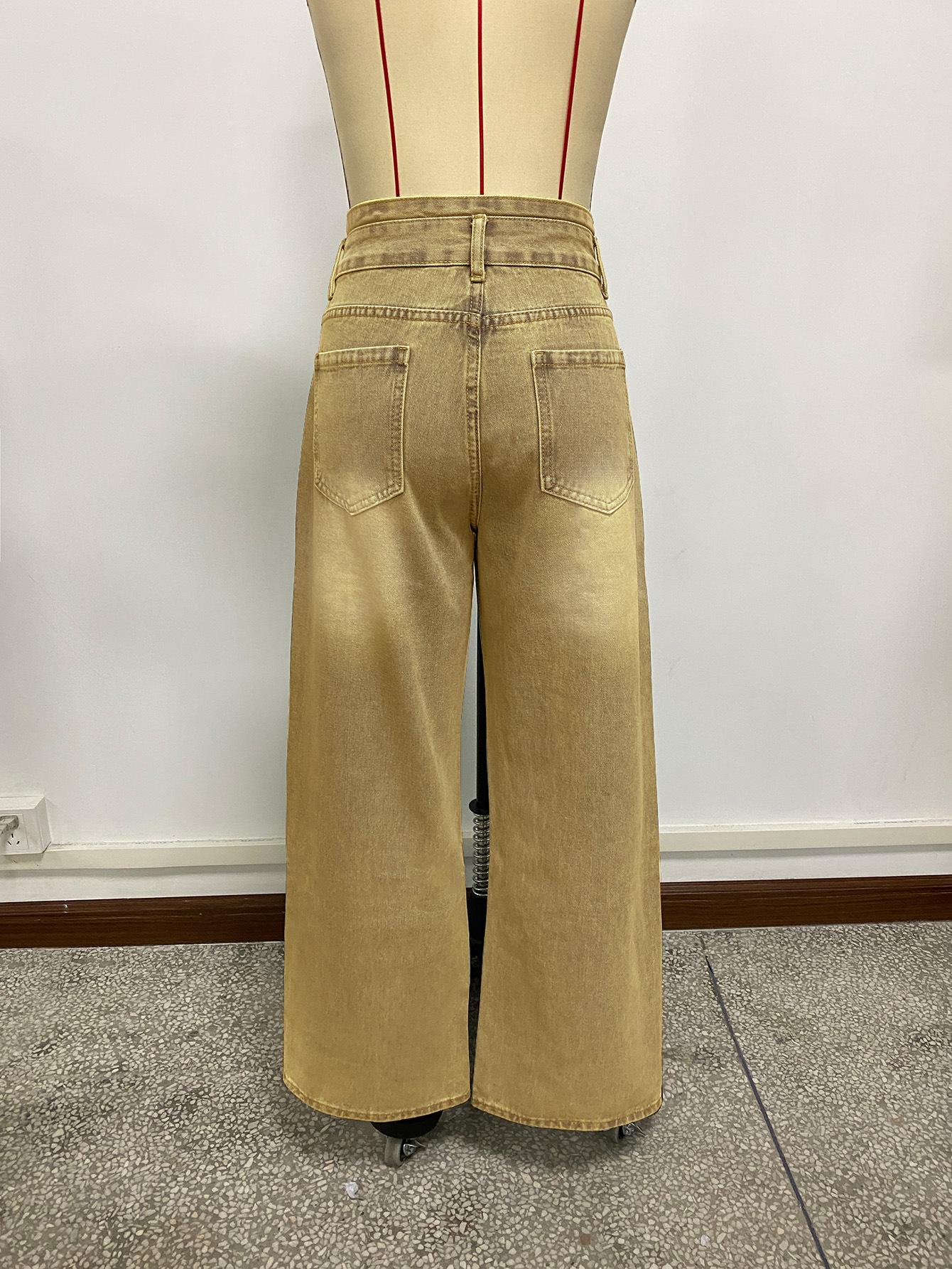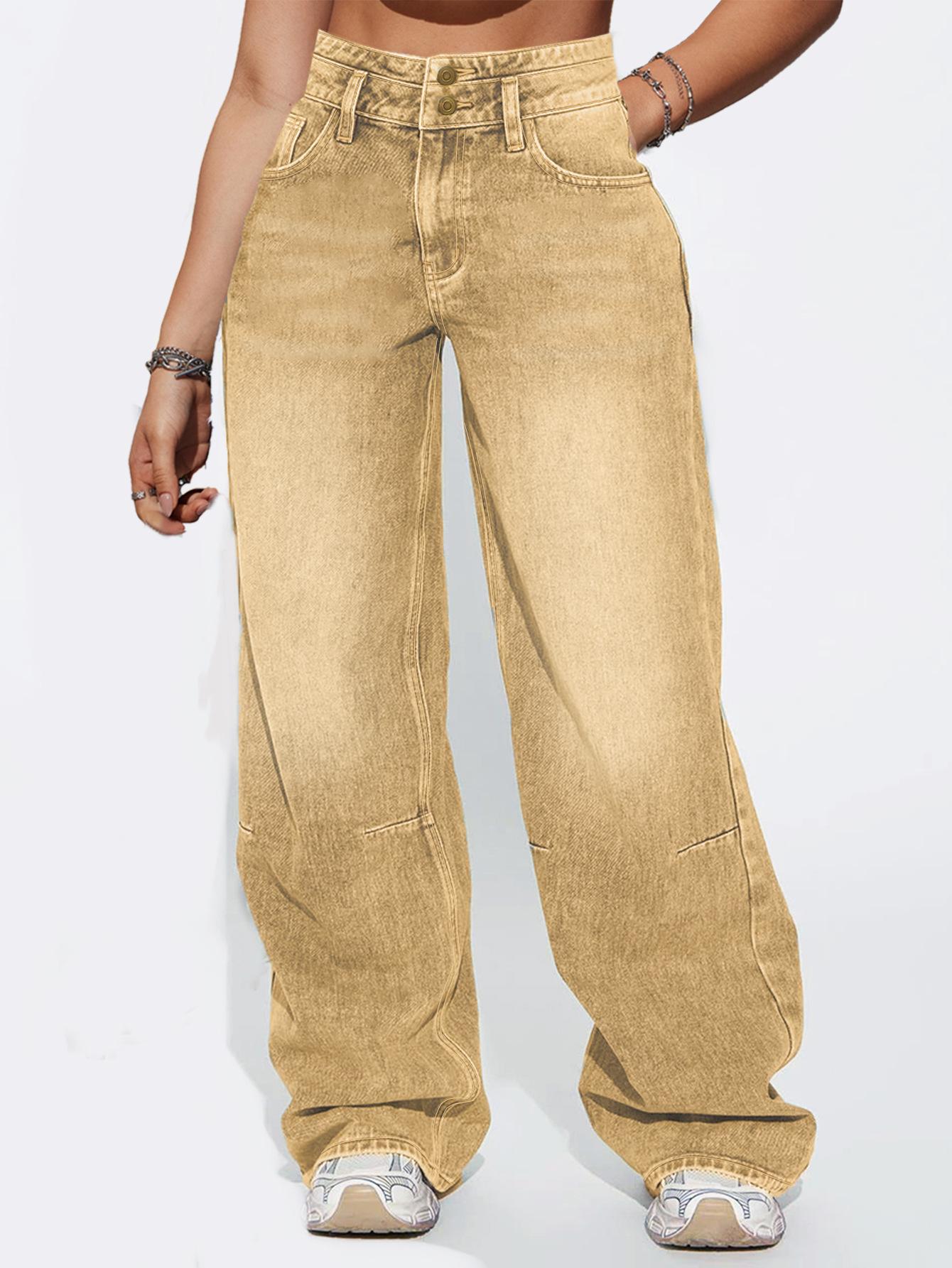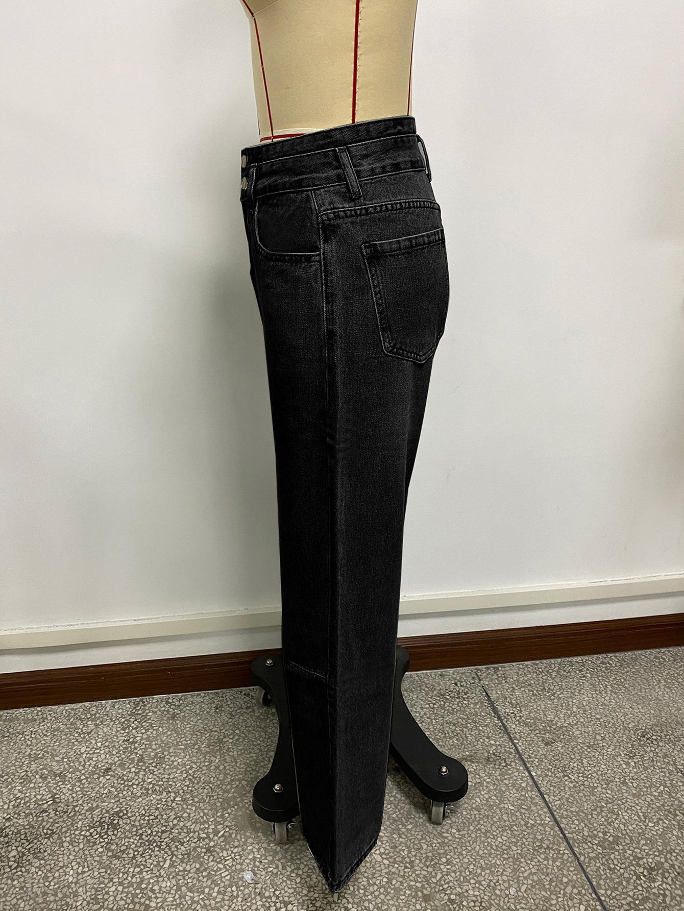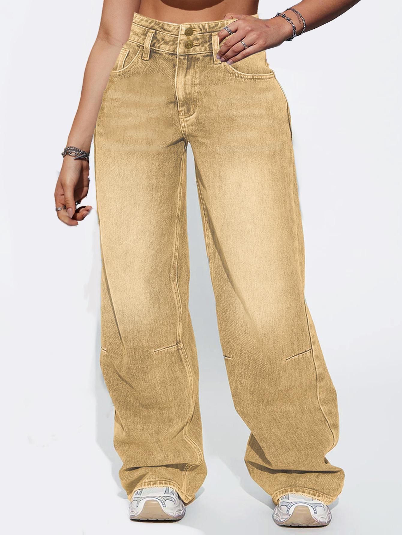 Comercio Exterior Transfronterizo Amazon Diseño Abotonado Europeo y Americano Jeans Retro Pantalones Holgados Casuales Rectos de Pierna Ancha