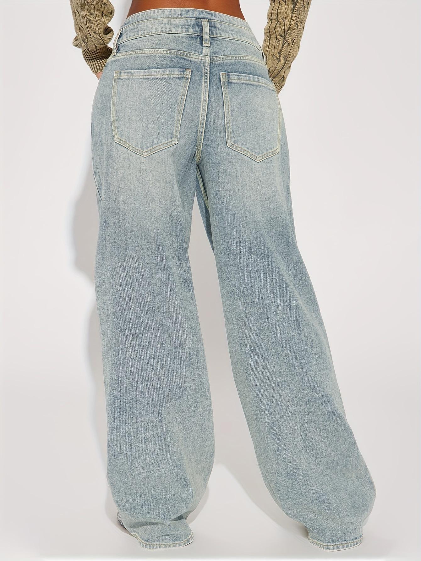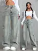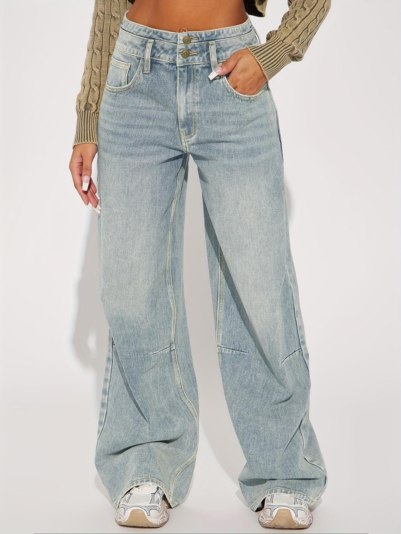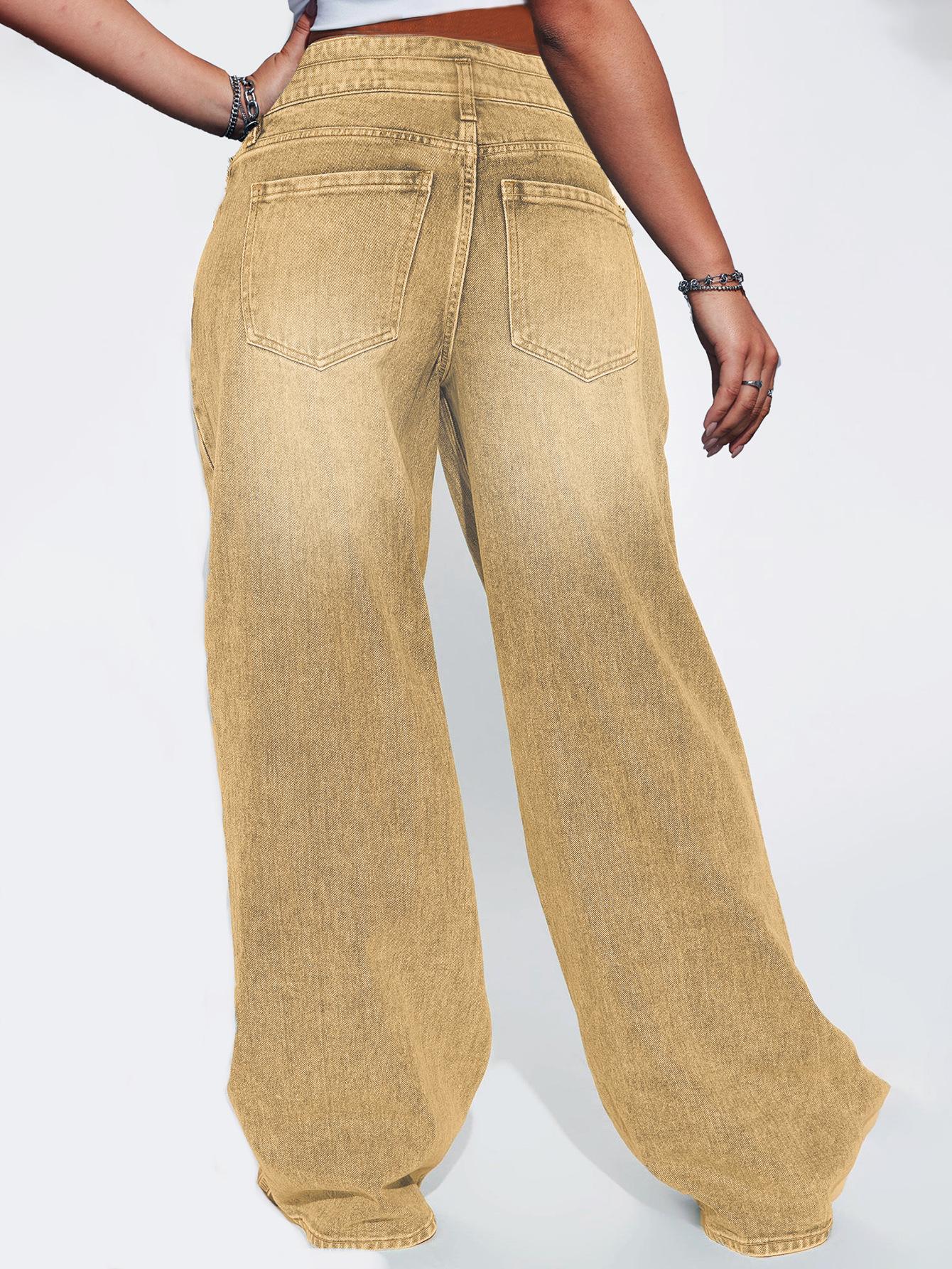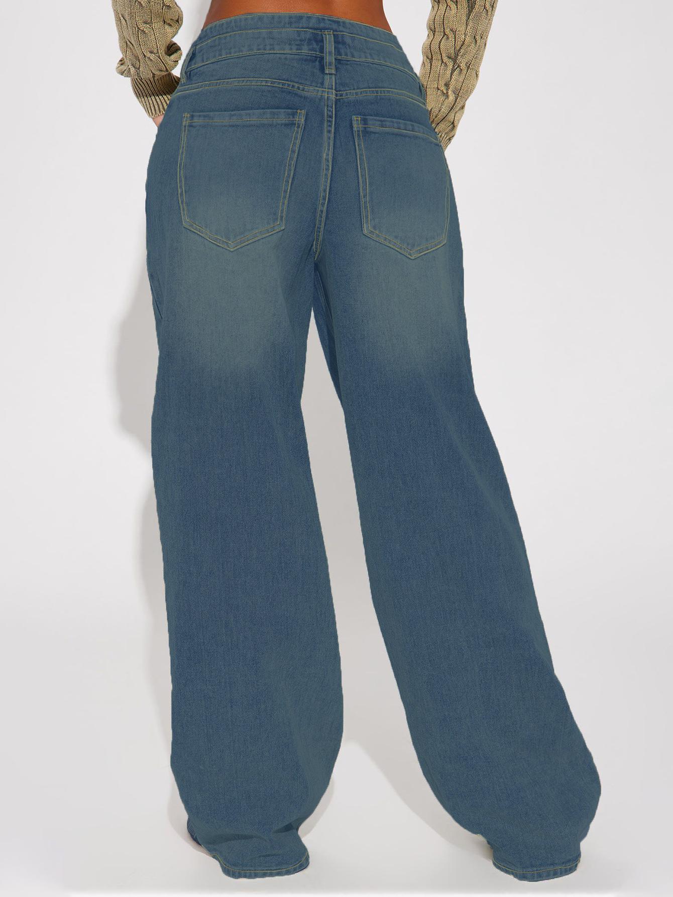 Comercio Exterior Transfronterizo Amazon Diseño Abotonado Europeo y Americano Jeans Retro Pantalones Holgados Casuales Rectos de Pierna Ancha