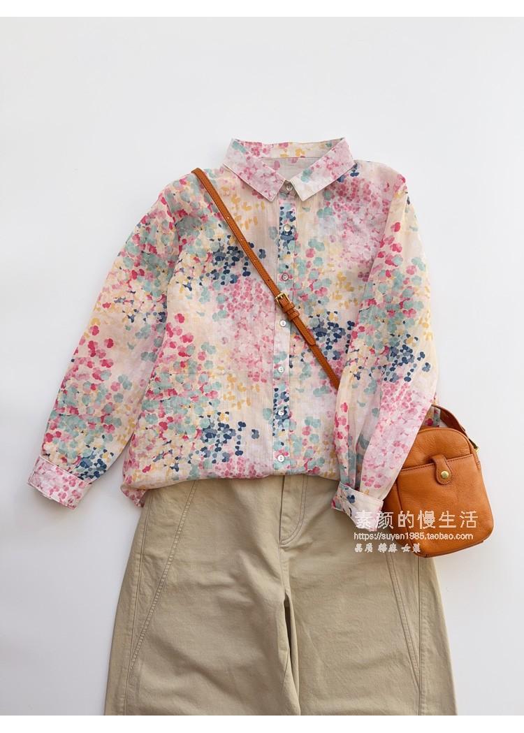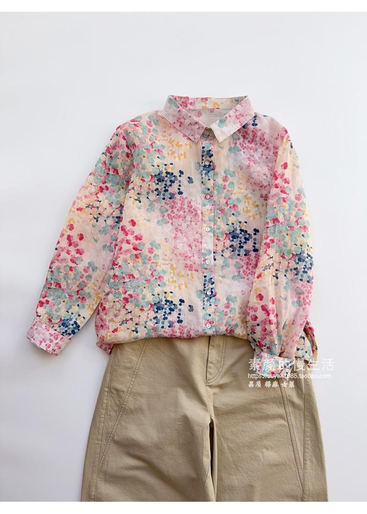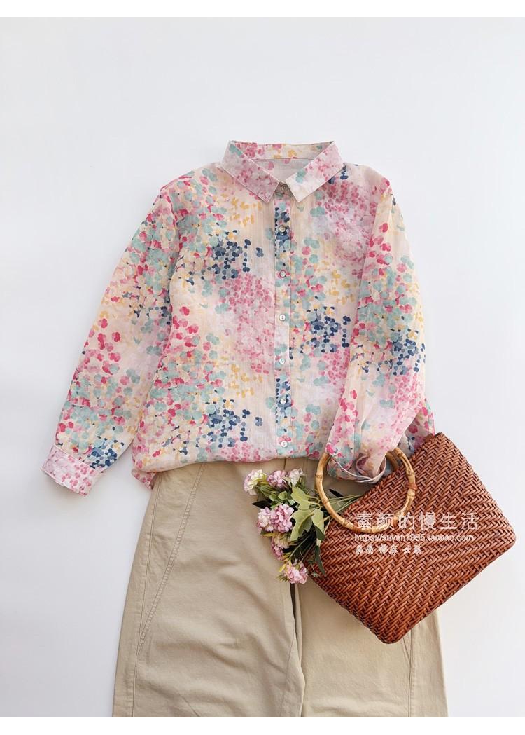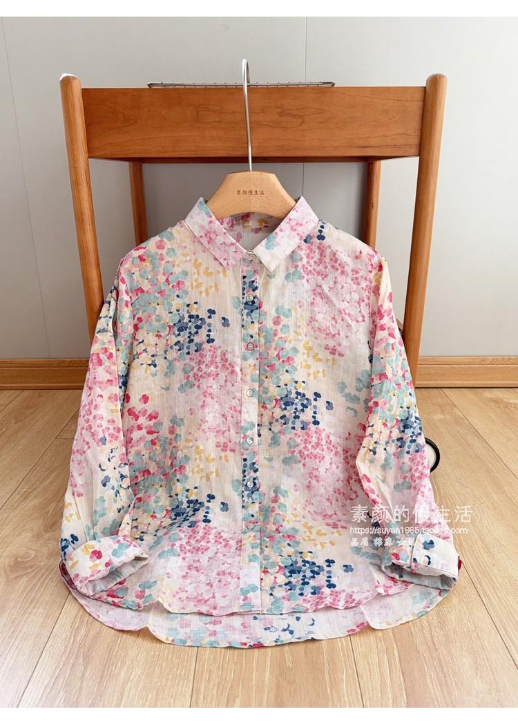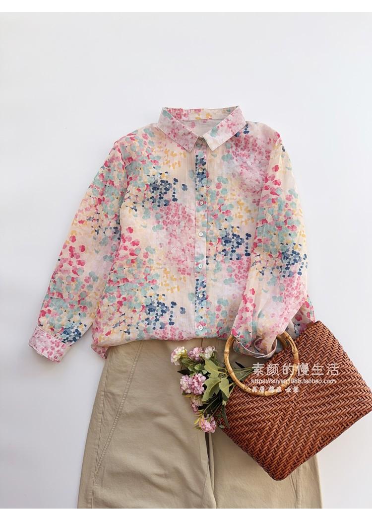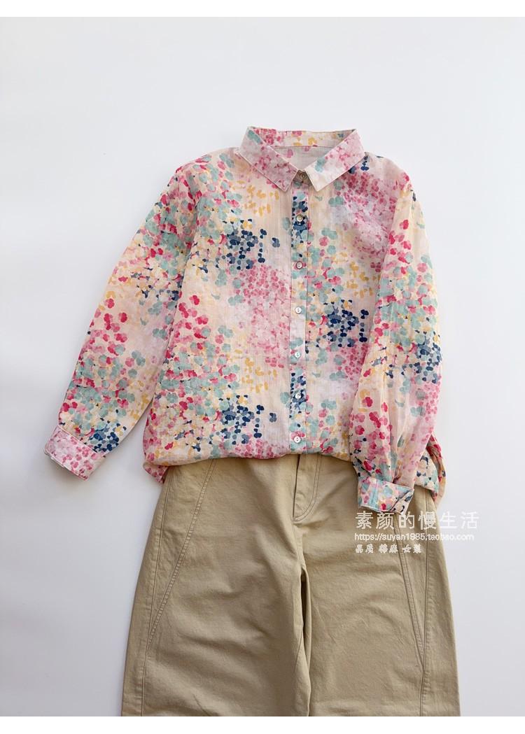 Camisa floral Macaron 2025 en stock, camisa fina y holgada con estampado de Niche para mujer.