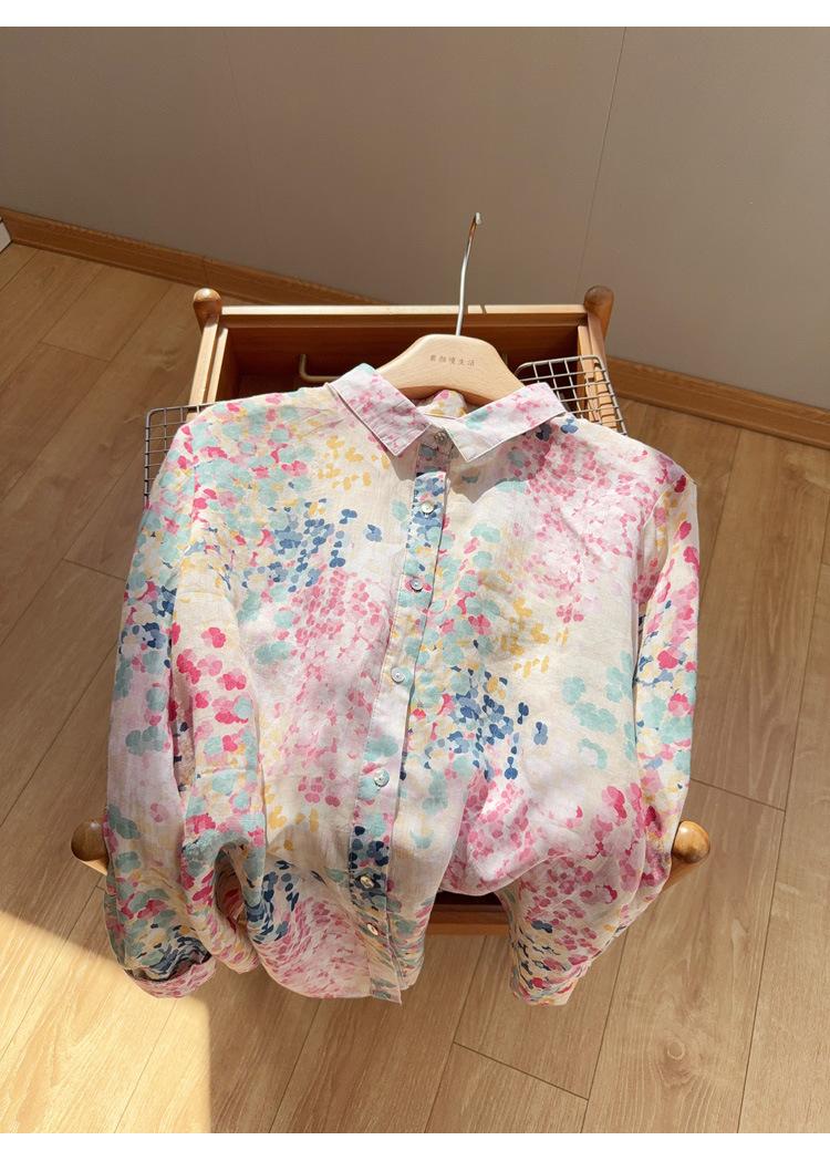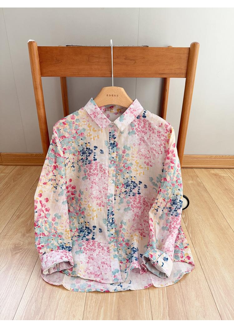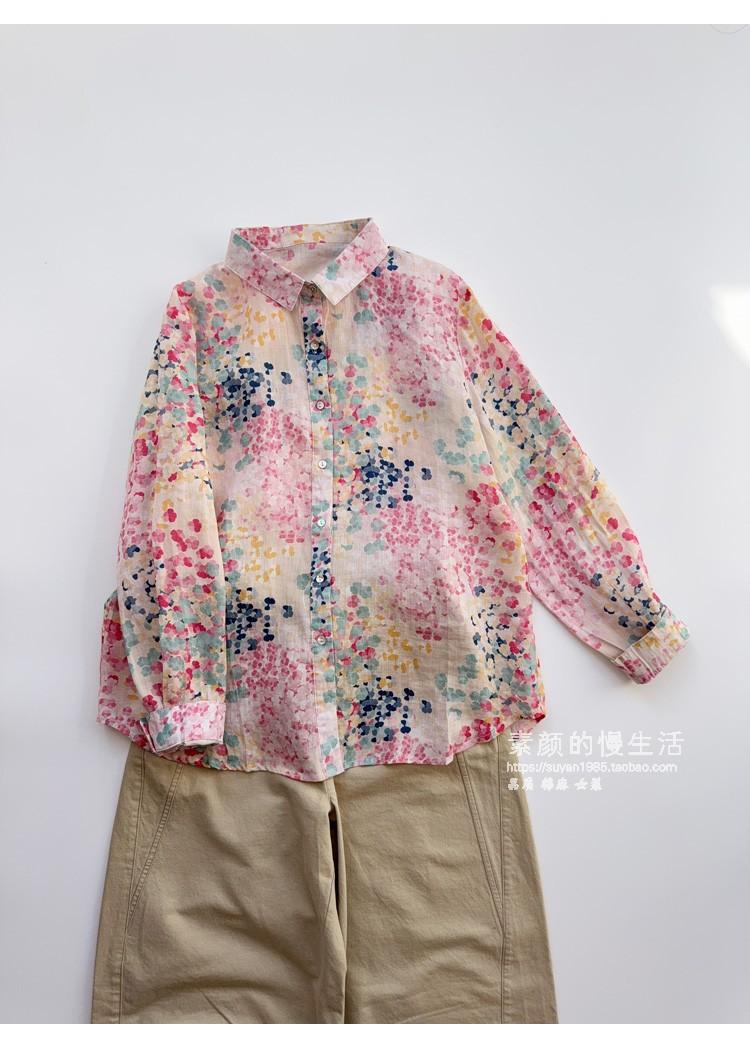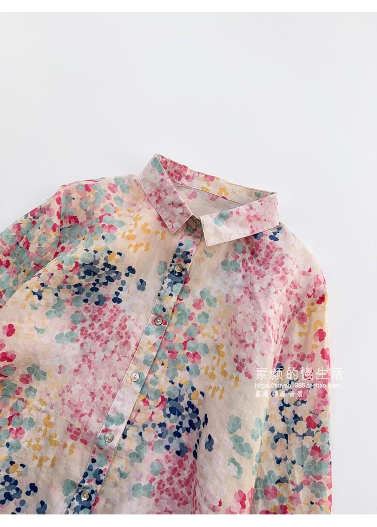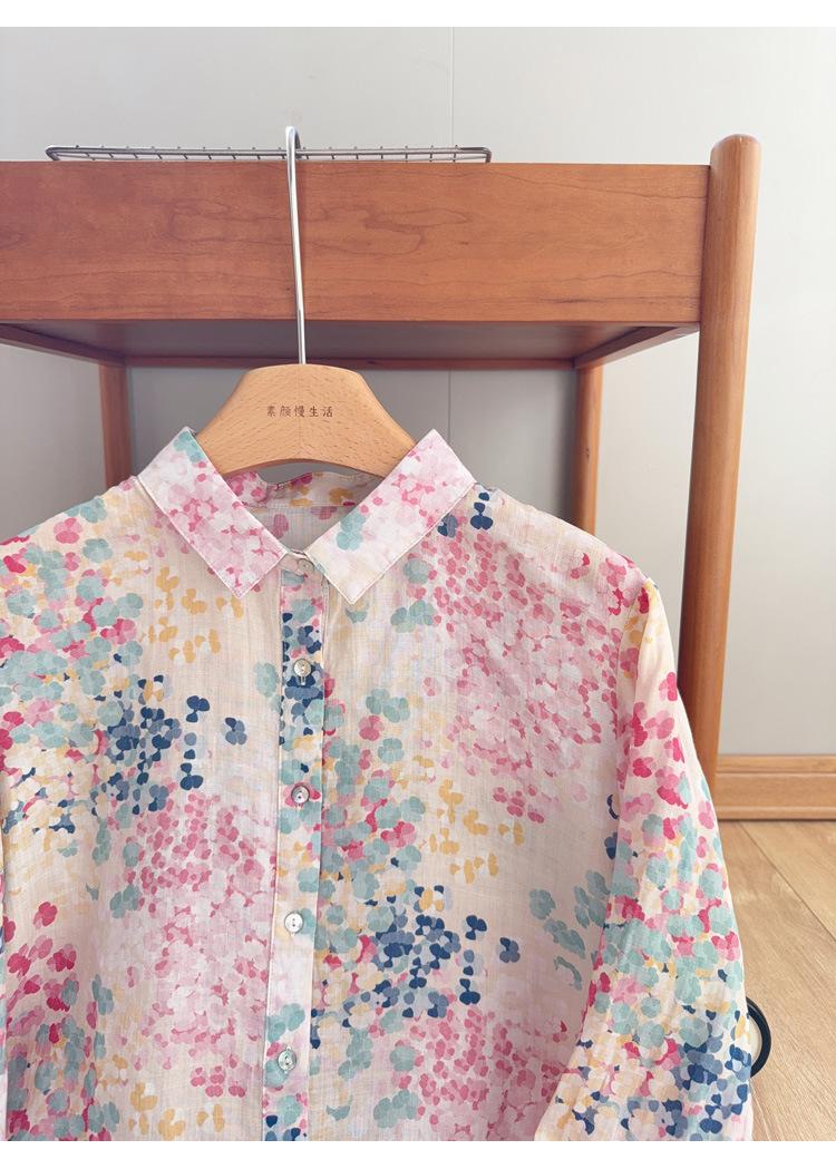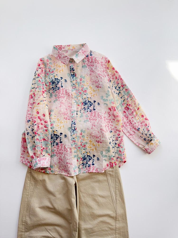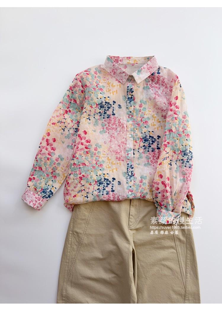Camisa floral Macaron 2025 en stock, camisa fina y holgada con estampado de Niche para mujer.