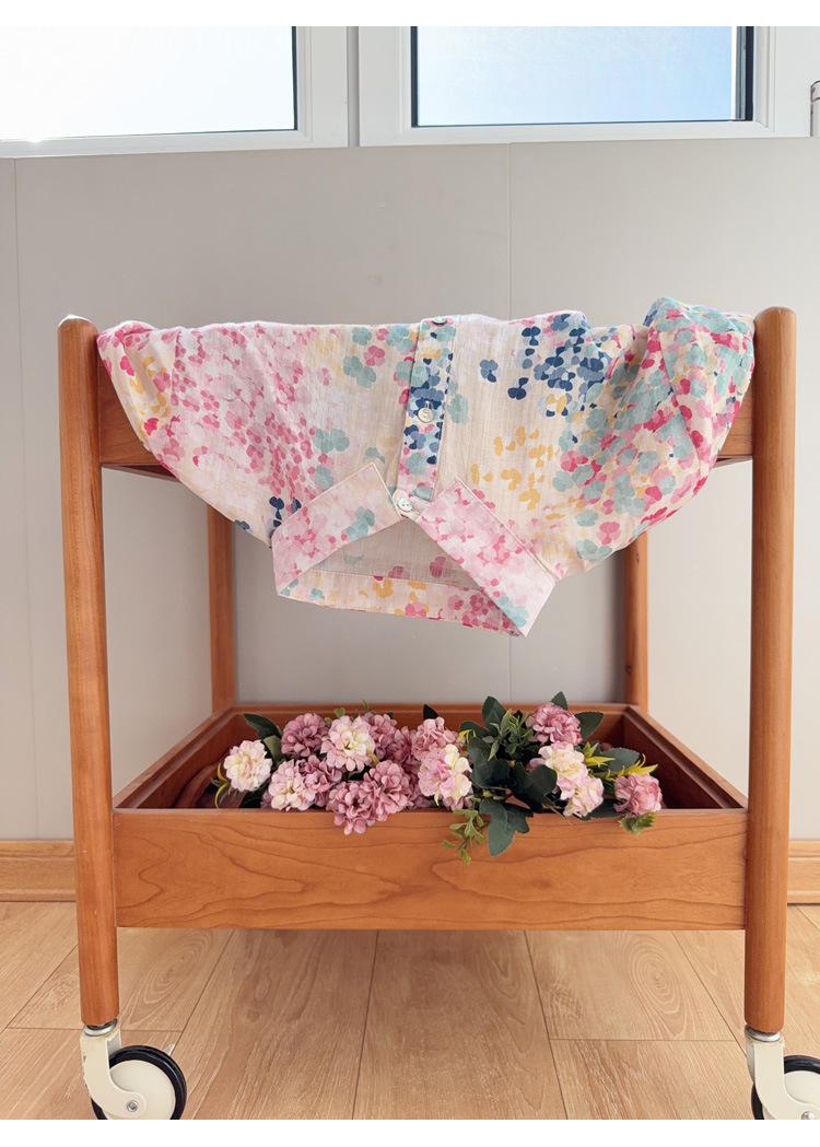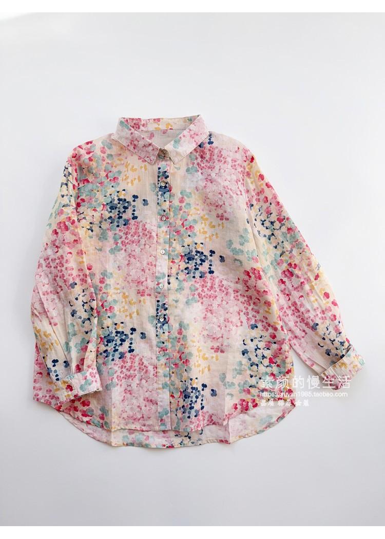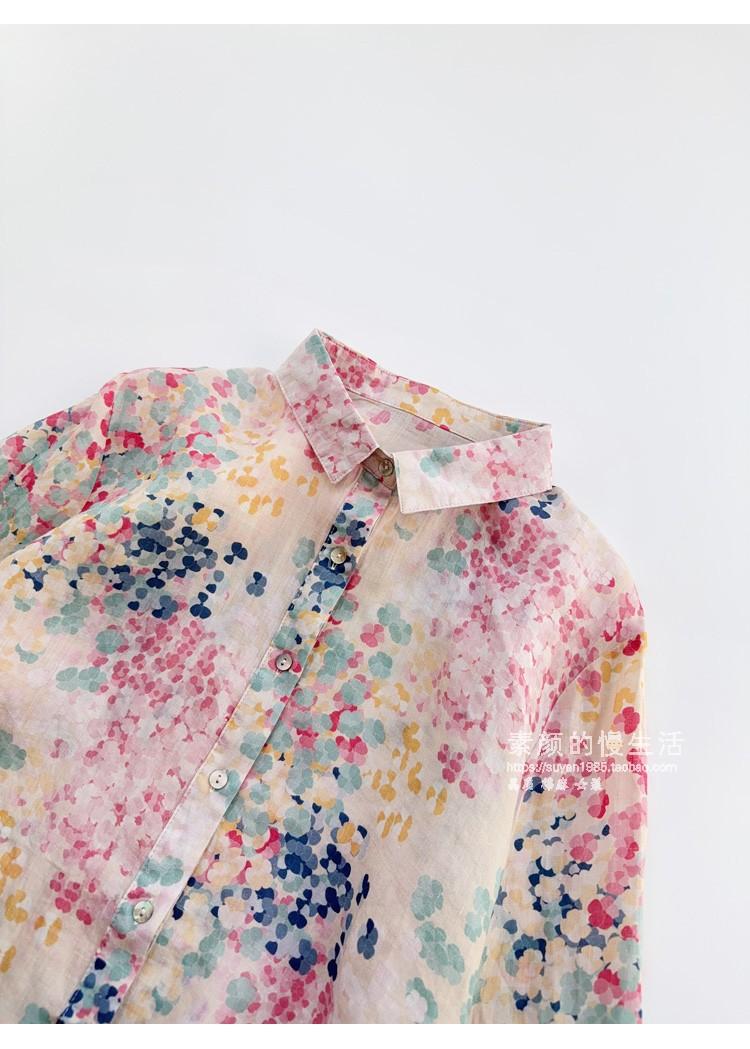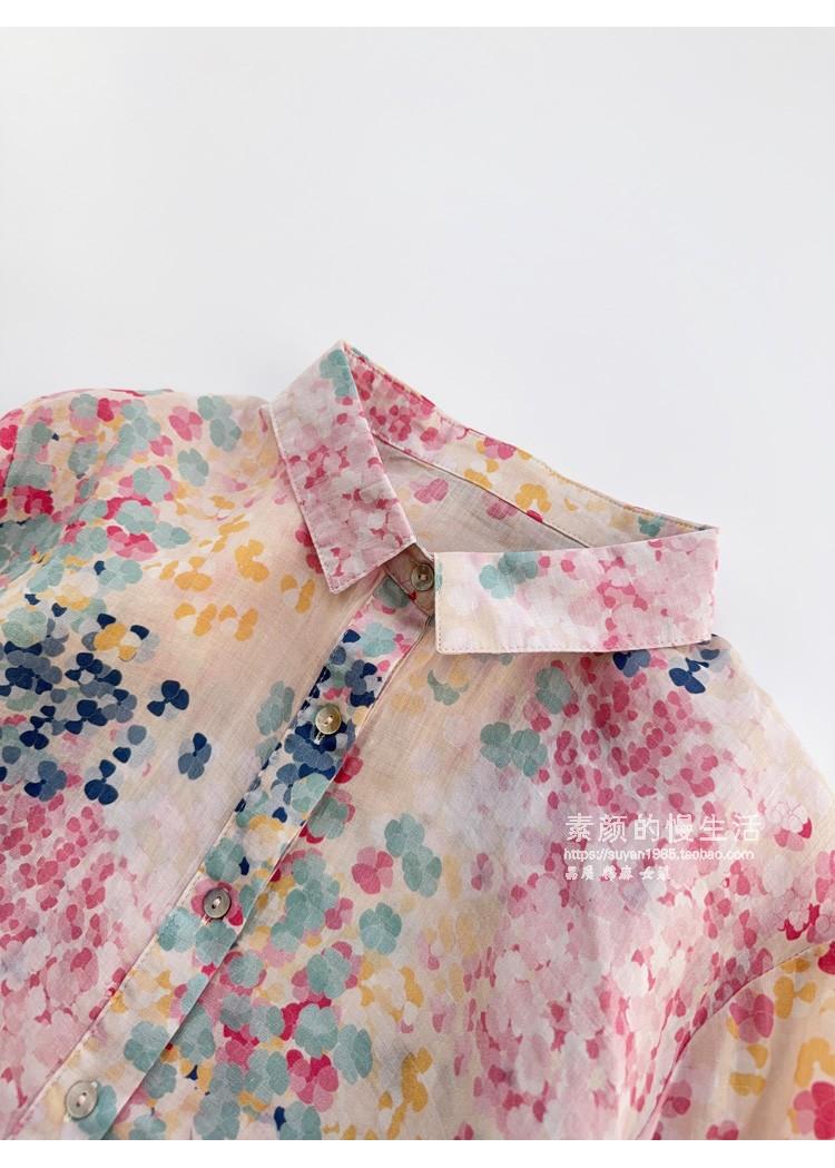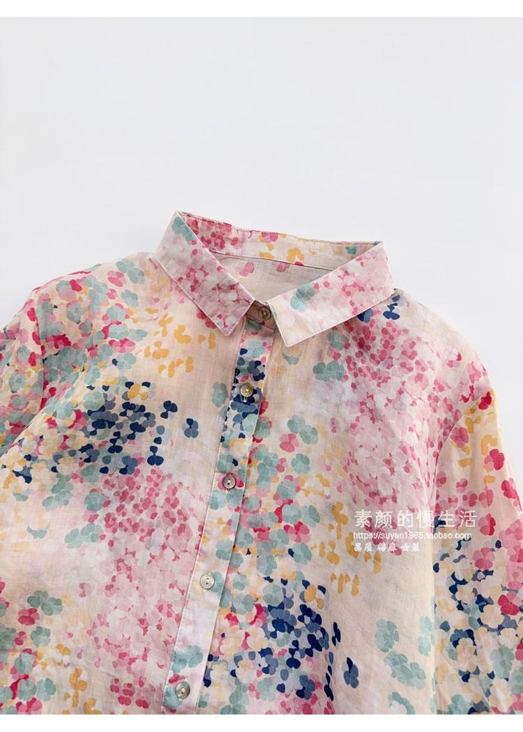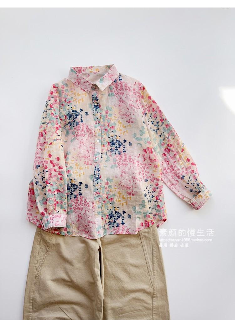 Camisa floral Macaron 2025 en stock, camisa fina y holgada con estampado de Niche para mujer.