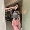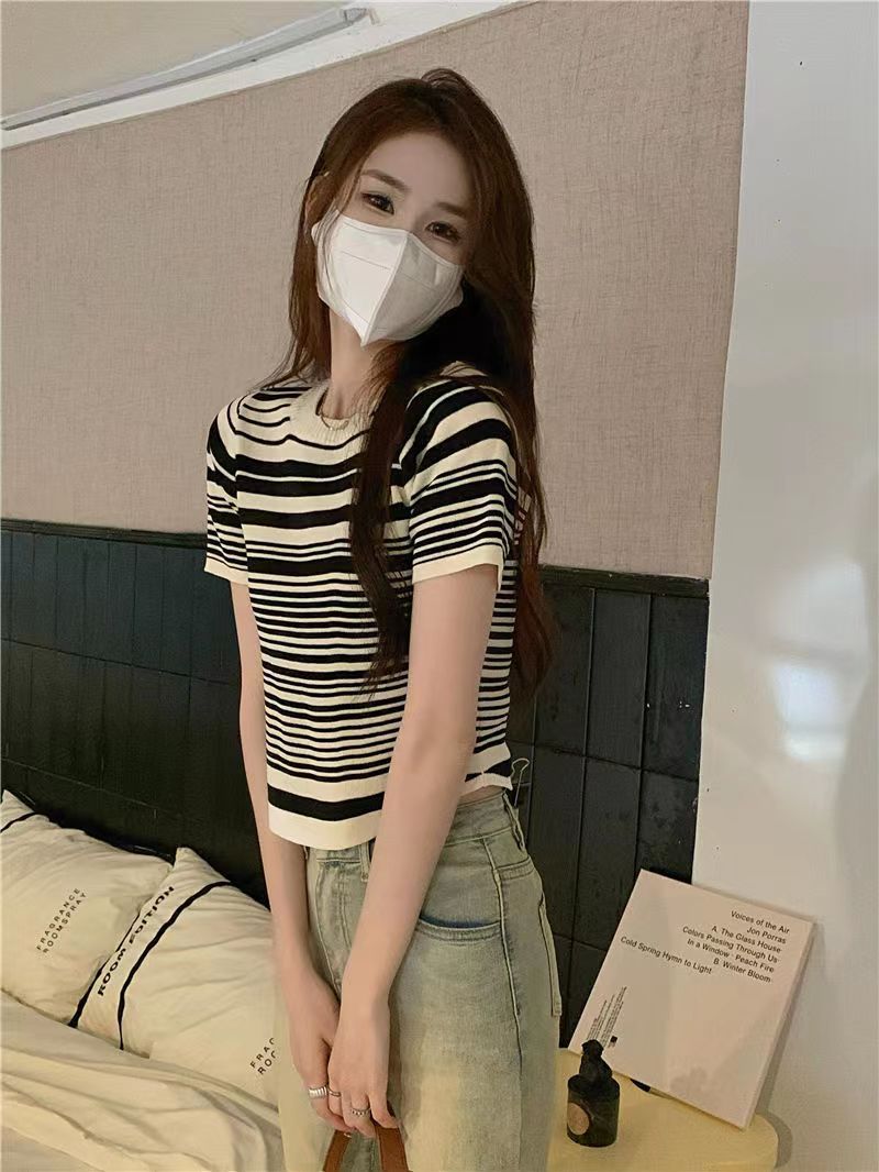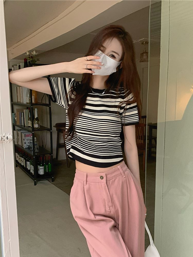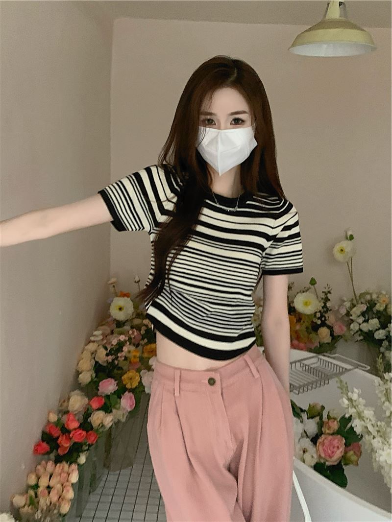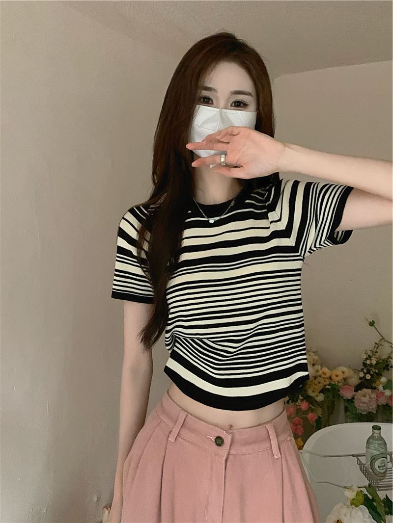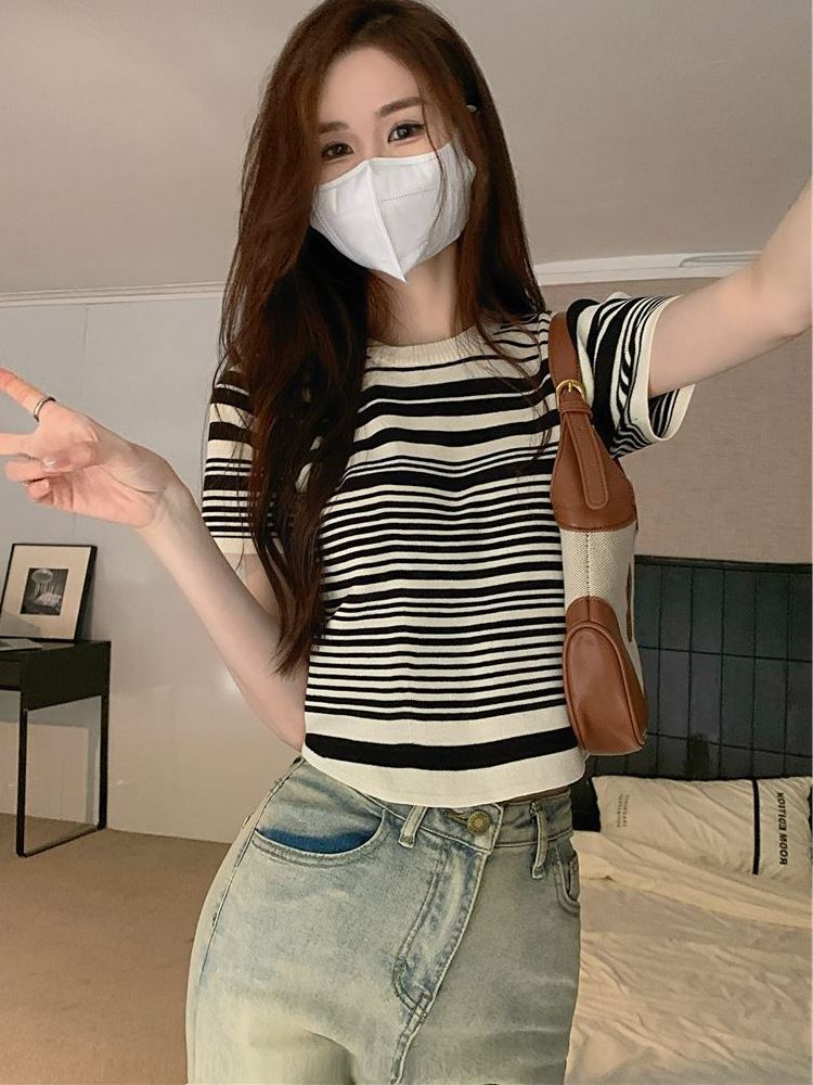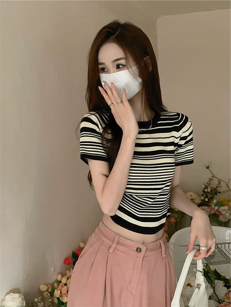 Camiseta de manga corta con cuello redondo y rayas únicas de Niche 2025, nuevo estilo, top sexy de moda de las Spice Girls.