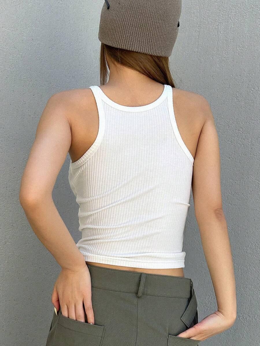 Camisola sexy ajustada de estilo europeo y americano, chaleco pequeño con cuello en U, color liso, primavera y verano de 2025