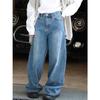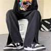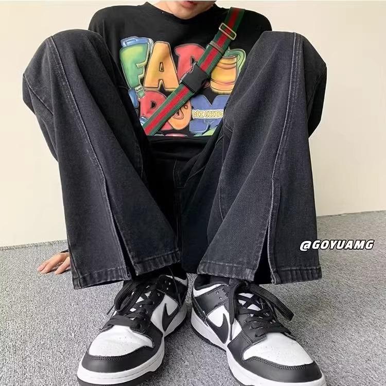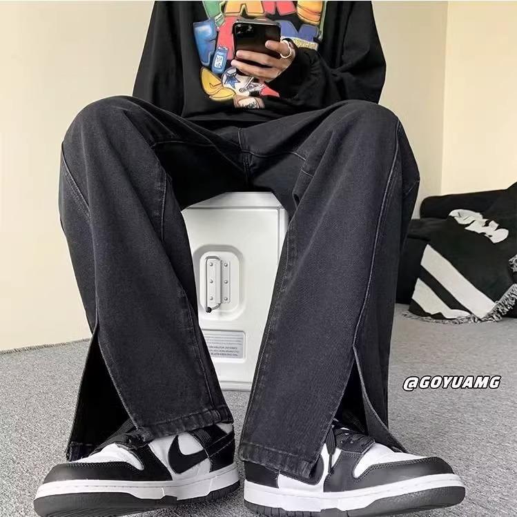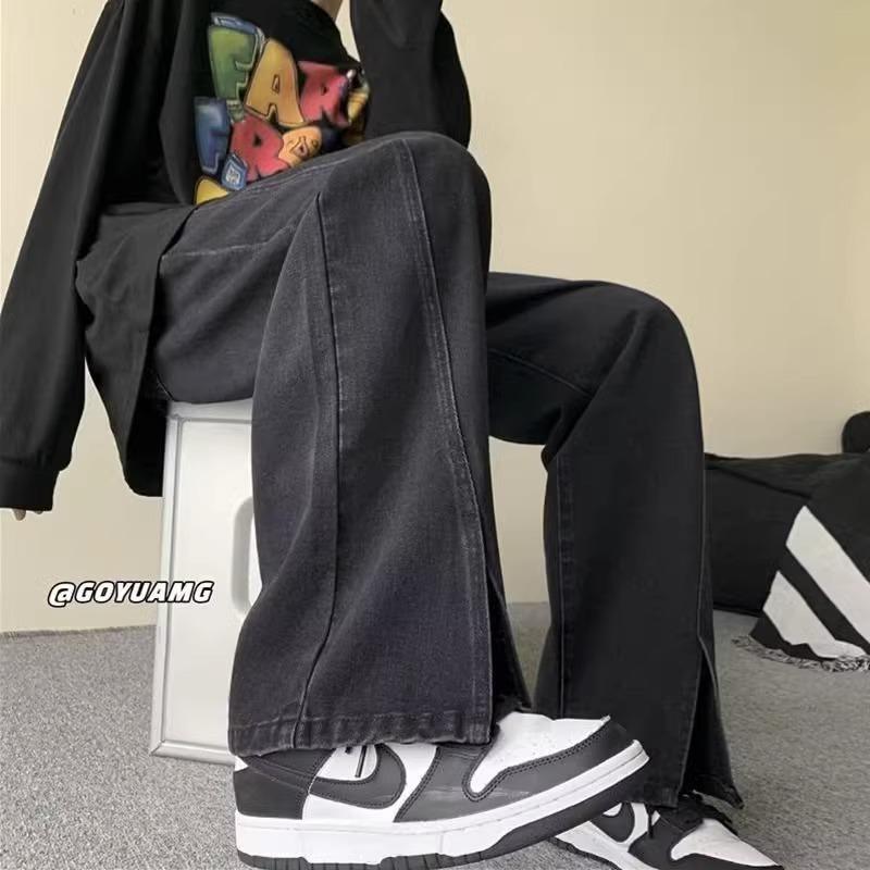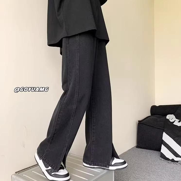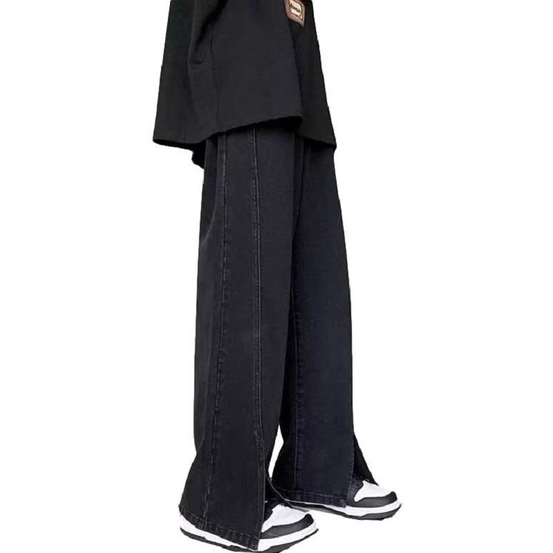 Pantalones vaqueros negros con abertura y diseño de temperamento de calle alta de productos europeos para mujer, pantalones holgados de pierna recta y ajustados de nicho de verano