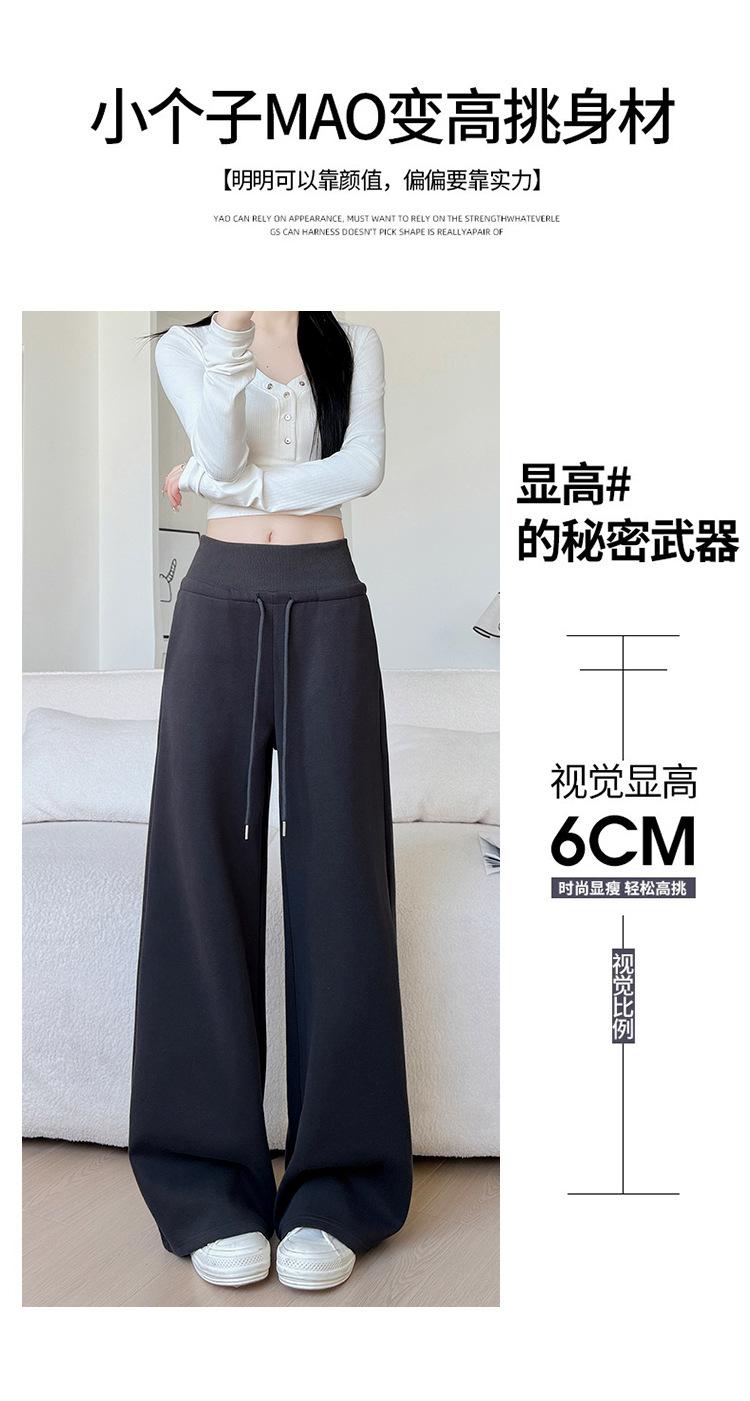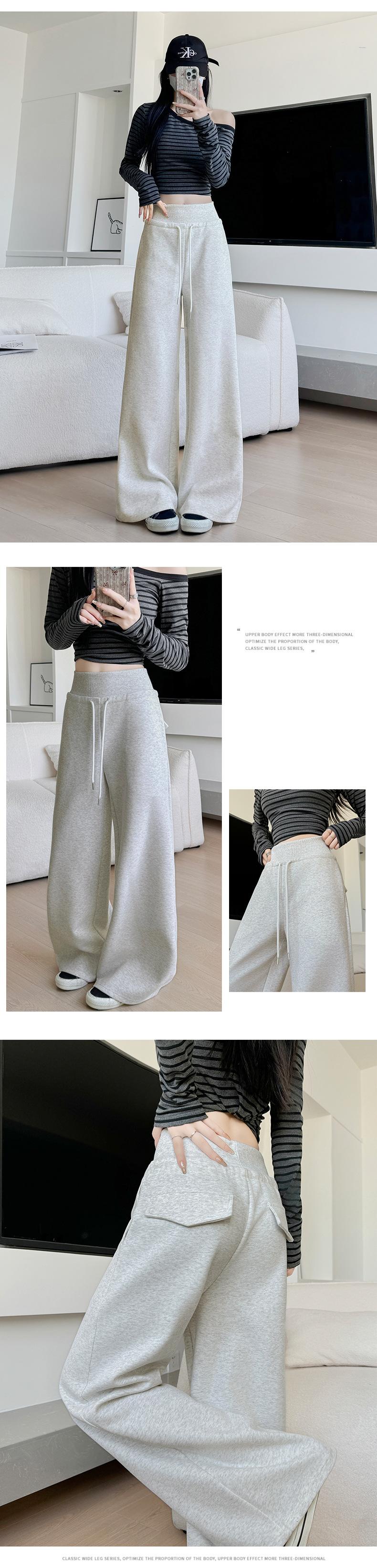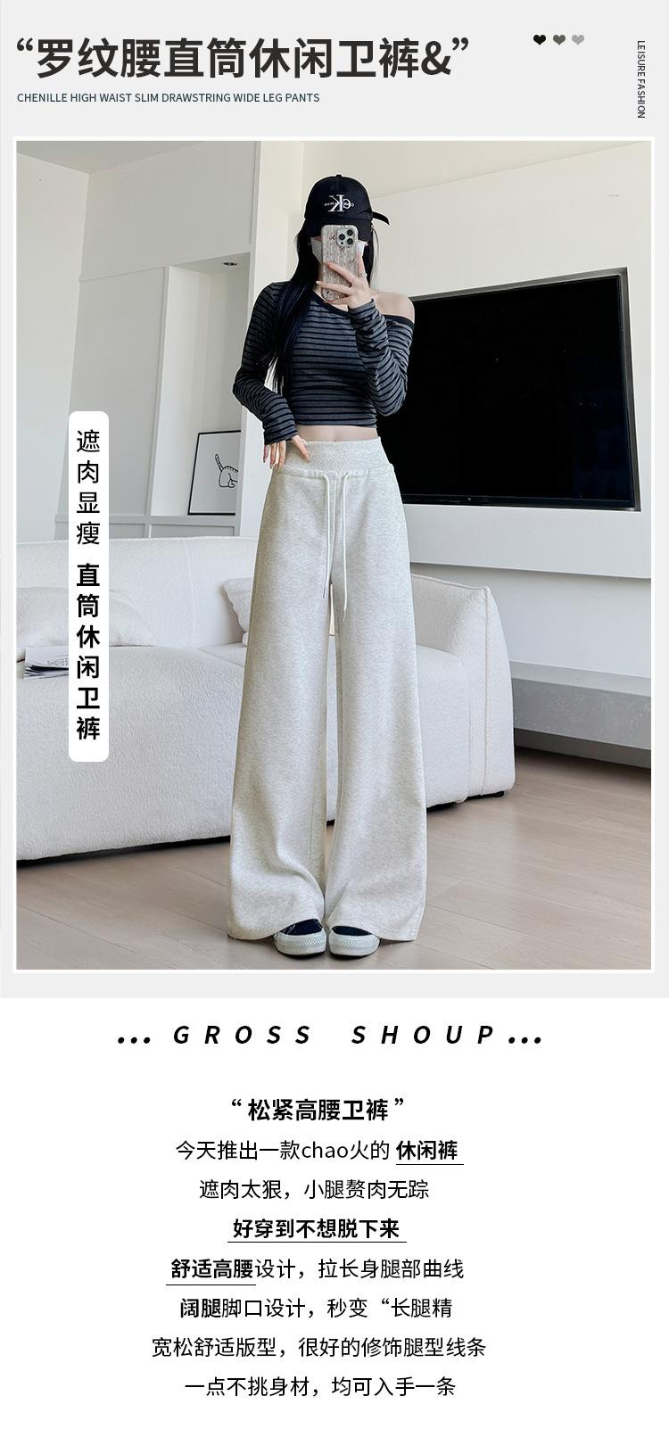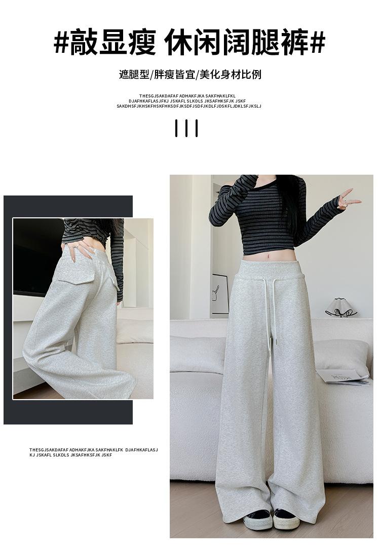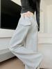 Pantalones grises de pierna ancha para mujer Primavera y Otoño 2025 Nuevos Pantalones rectos holgados con dobladillo Estilo perezoso Casual con cordón Pantalones deportivos