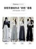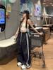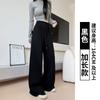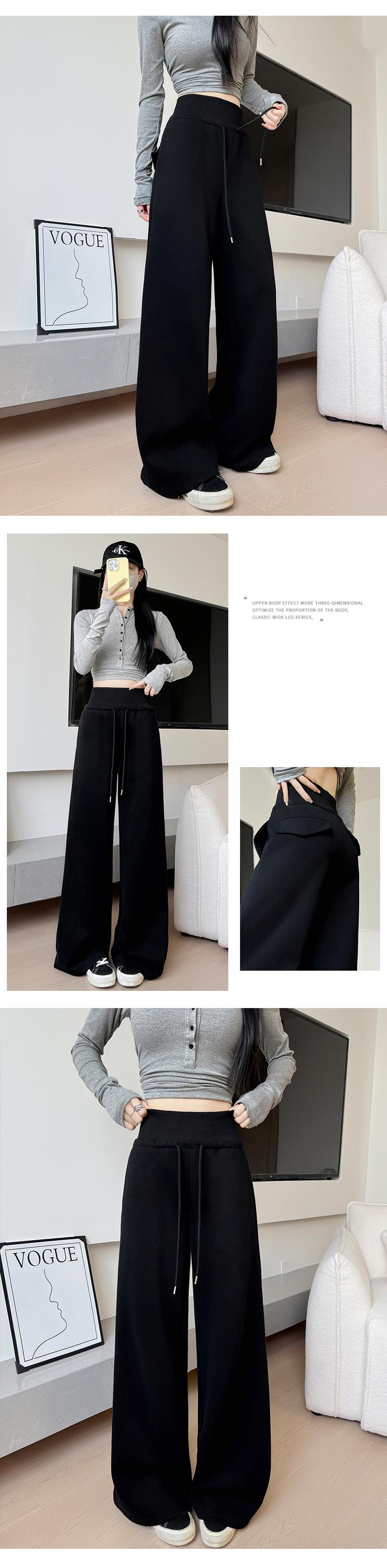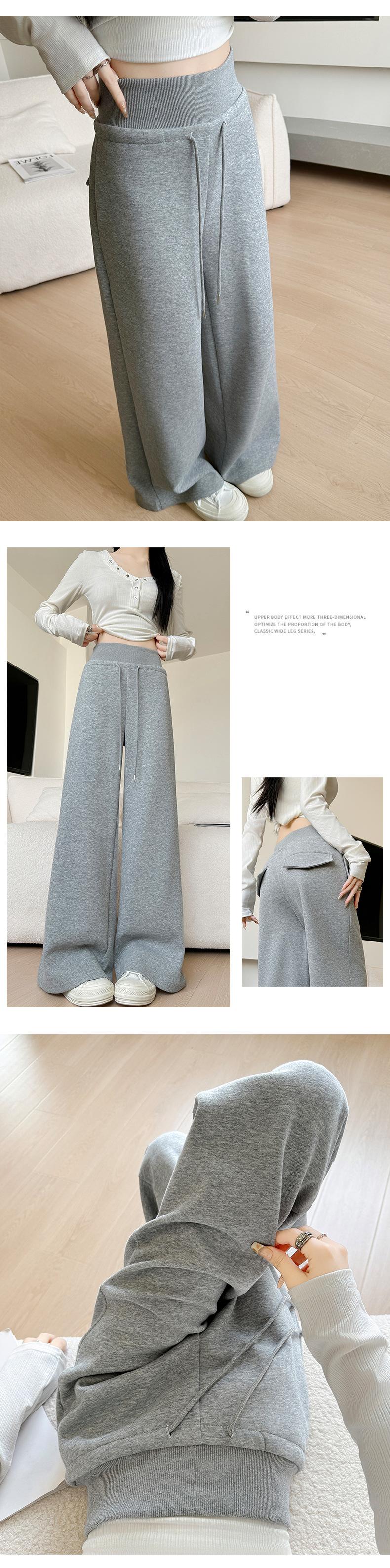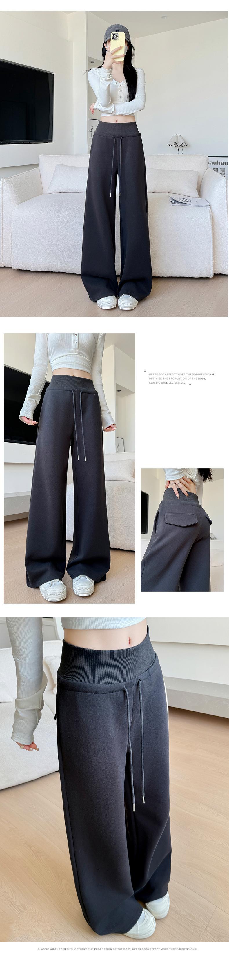 Pantalones grises de pierna ancha para mujer Primavera y Otoño 2025 Nuevos Pantalones rectos holgados con dobladillo Estilo perezoso Casual con cordón Pantalones deportivos