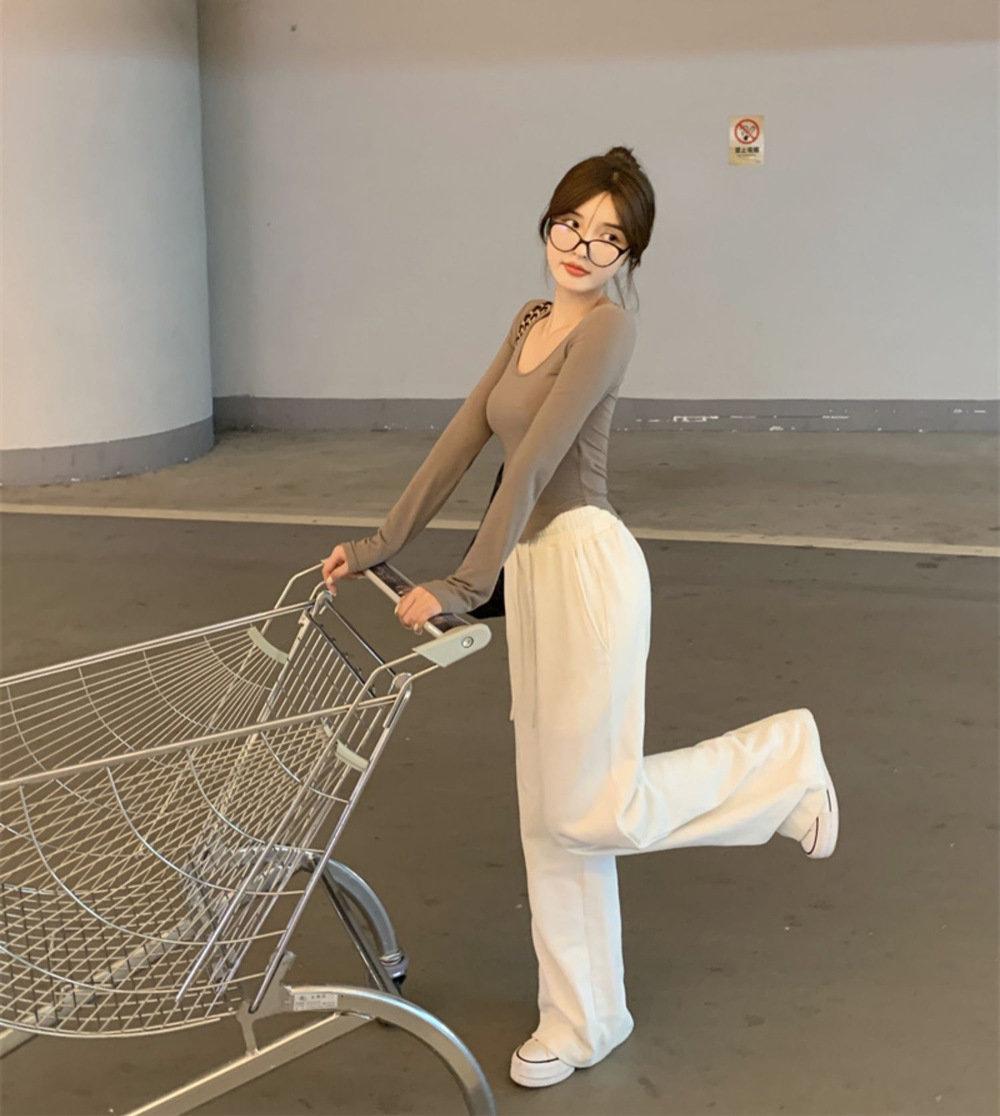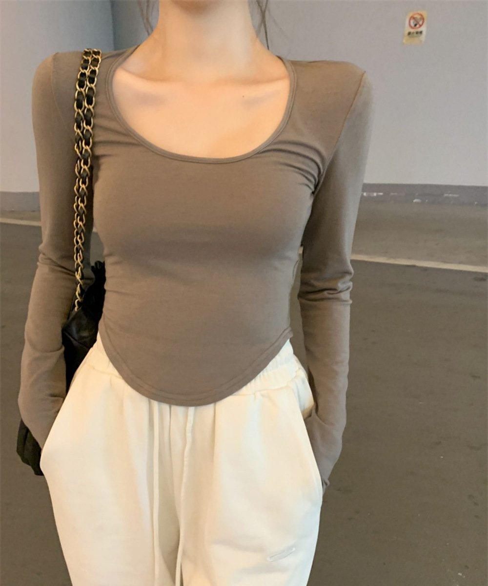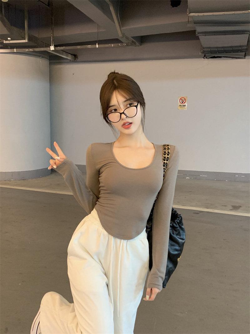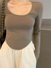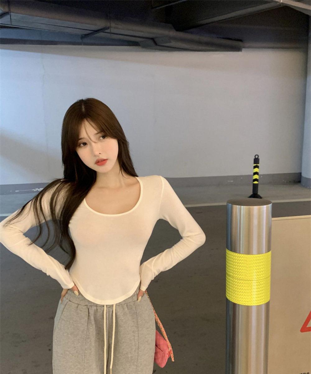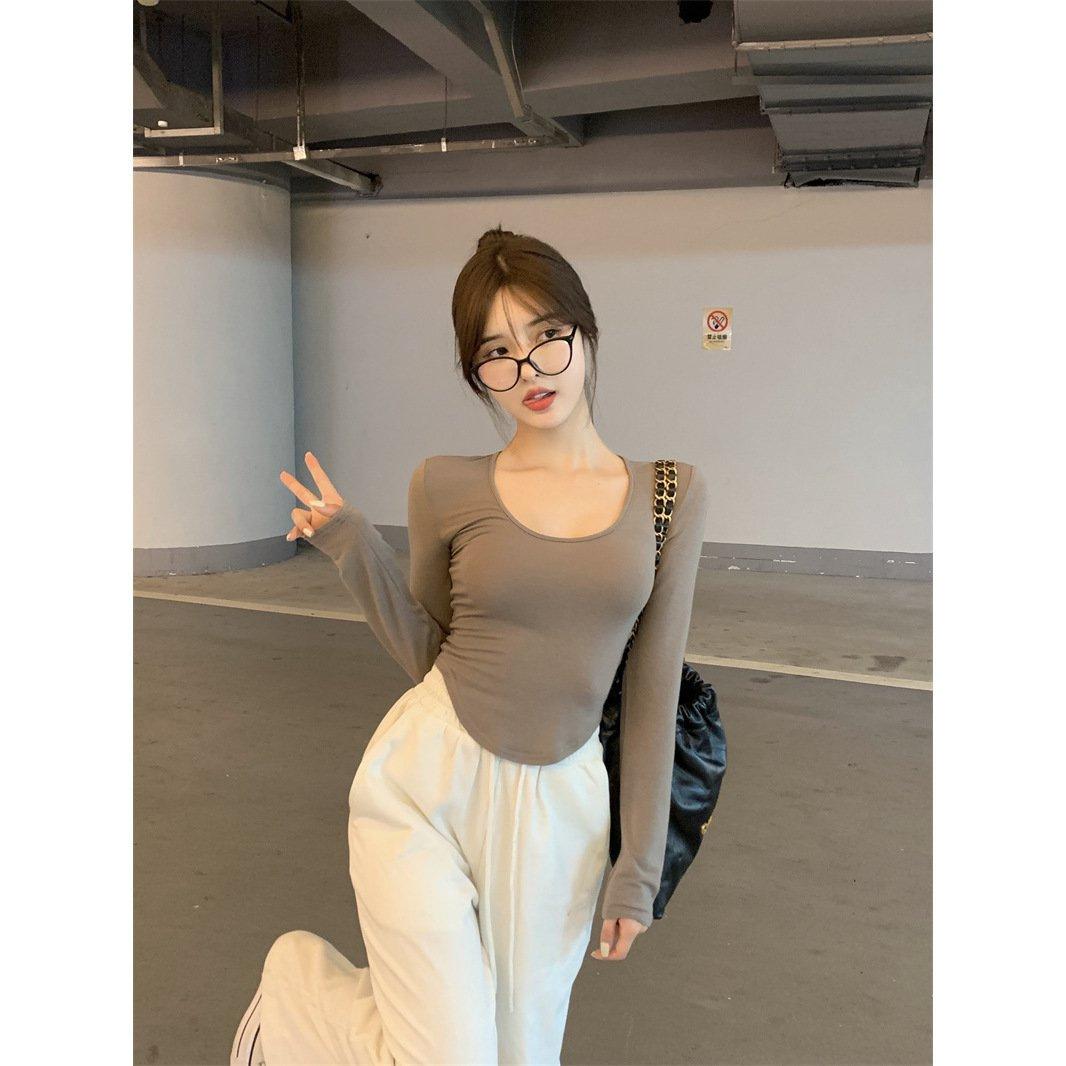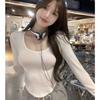 Otoño 2024 Deseo Puro Chicas Calientes Sexy Ajustado Adelgazante Camiseta de Manga Larga Versátil Nicho Ins Top Chic Único