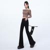 Vaqueros negros micro acampanados estilo americano para mujer, primavera 2025, nuevos, cintura alta, corte entallado, diseño de herradura.