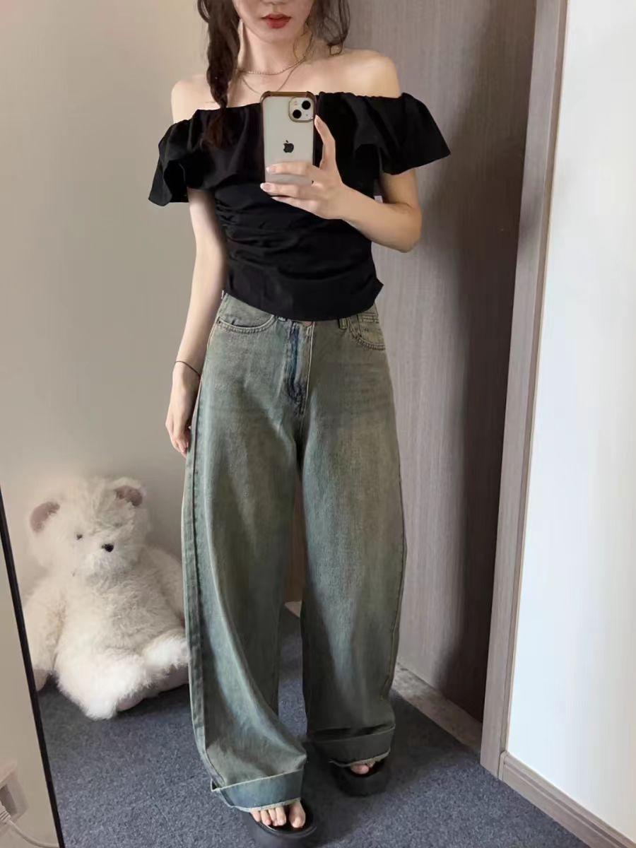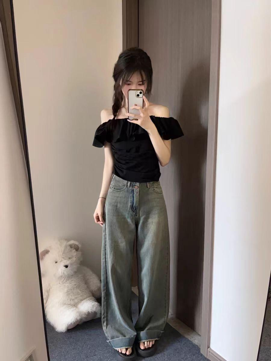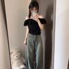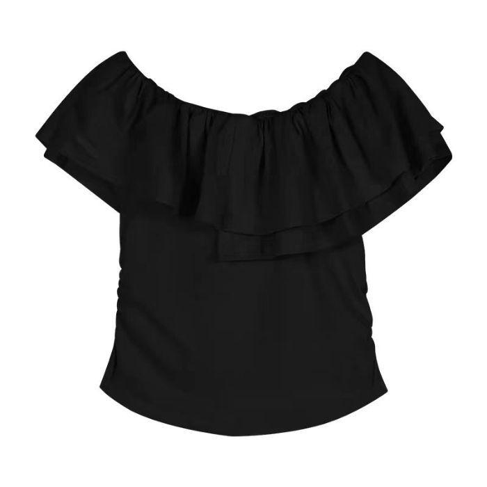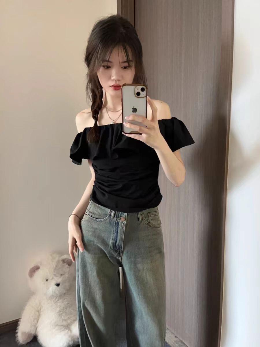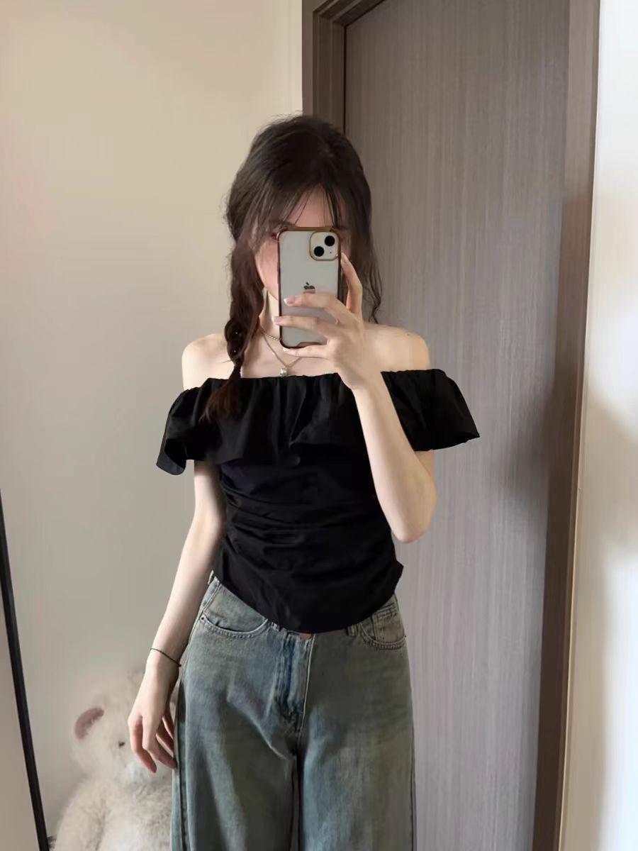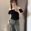 Moda Nicho Estilo Francés Elegante Camiseta de Manga Corta con Hombros Descubiertos Chicas Hot Sexy Ajustada Estilo Suave Top Adelgazante Mujeres Ins