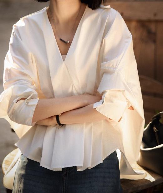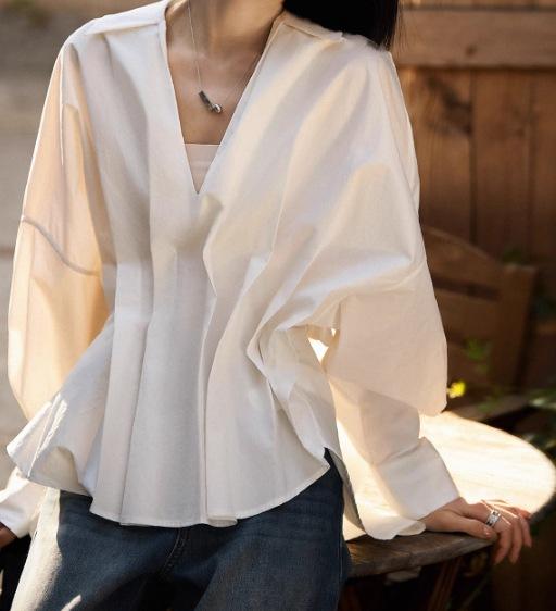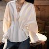 Camisa informal de mujer con cintura curva y dobladillo irregular, estilo nicho europeo, 2025