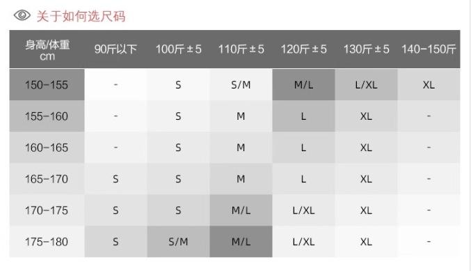 S, M, L, XL, XXL