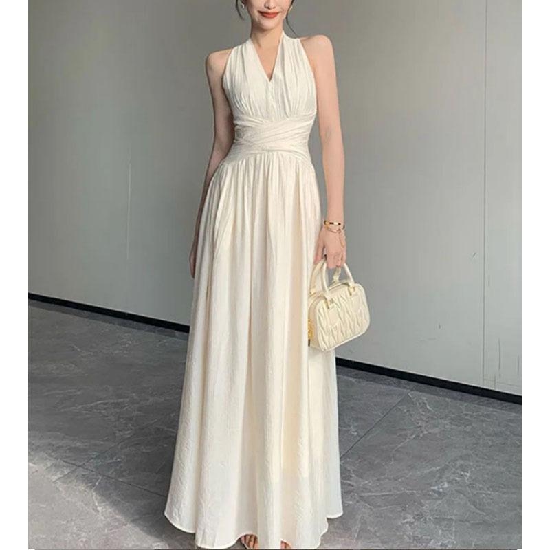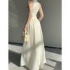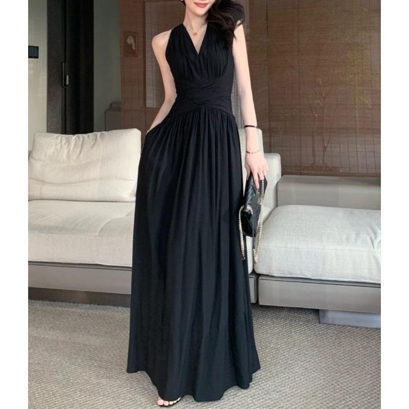 Vestido adelgazante Hepburn, pequeño vestido negro retro estilo Hong Kong, elegante, con hombros descubiertos, sexy, sin mangas, cuello, vestido de longitud media para verano.