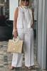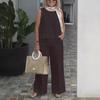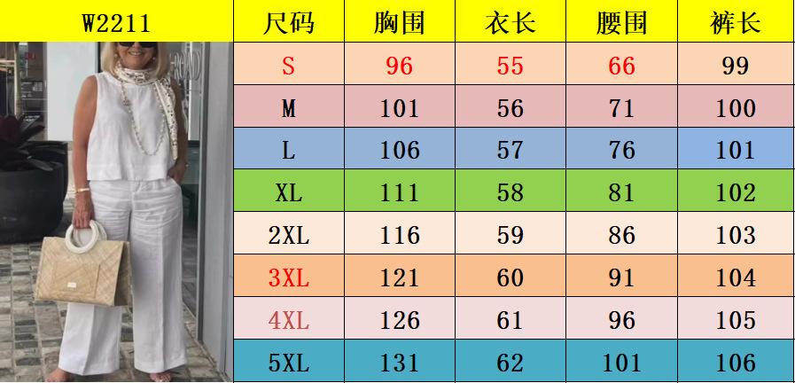 Ropa de mujer de comercio exterior transfronterizo de Europa y Estados Unidos primavera/verano 2024 nuevo traje de algodón y lino de color sólido sin mangas de Amazon