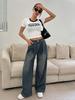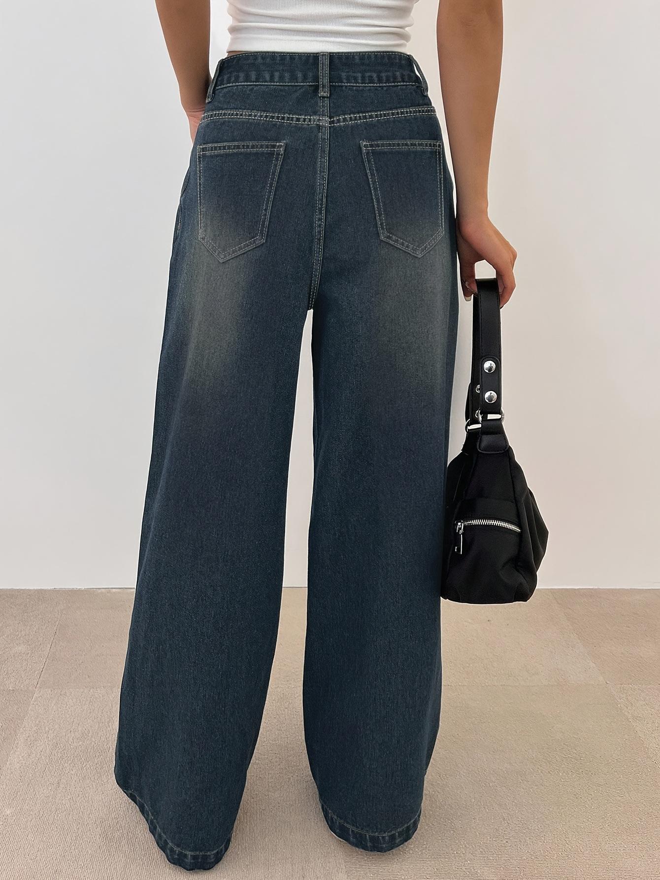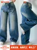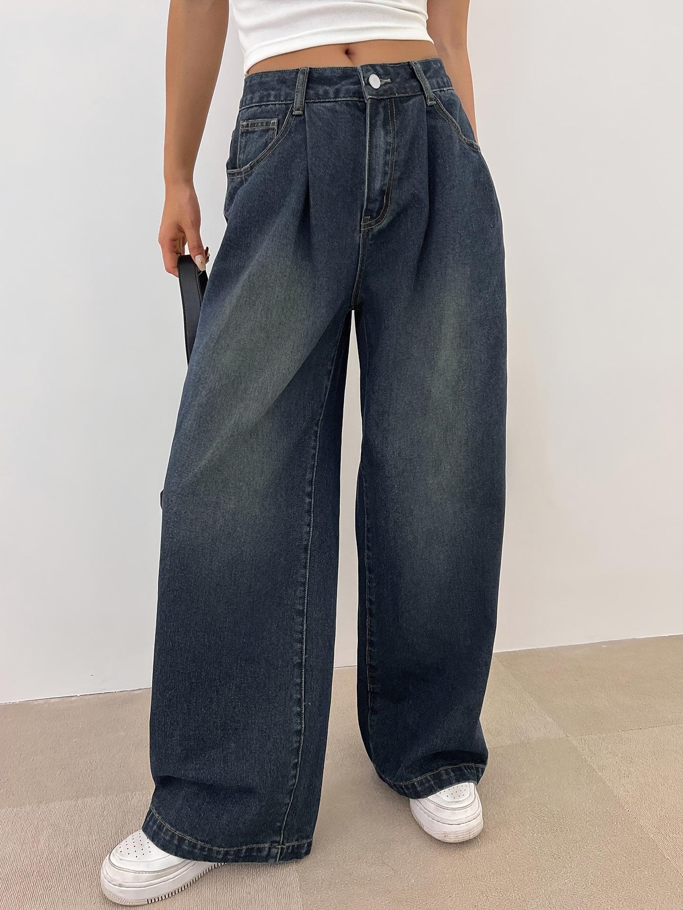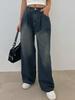 Comercio Exterior Transfronterizo Amazon Europeo y Americano Retro Americano Lavado Plisado Jeans Pantalones de Pierna Ancha Rectos Sueltos Casuales para Mujer