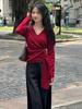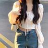 Camiseta de manga larga ajustada, estilo francés, estilo puro deseo, diseño versátil, para adelgazar, para chicas atractivas, sexy, de nicho, única, para mujer.