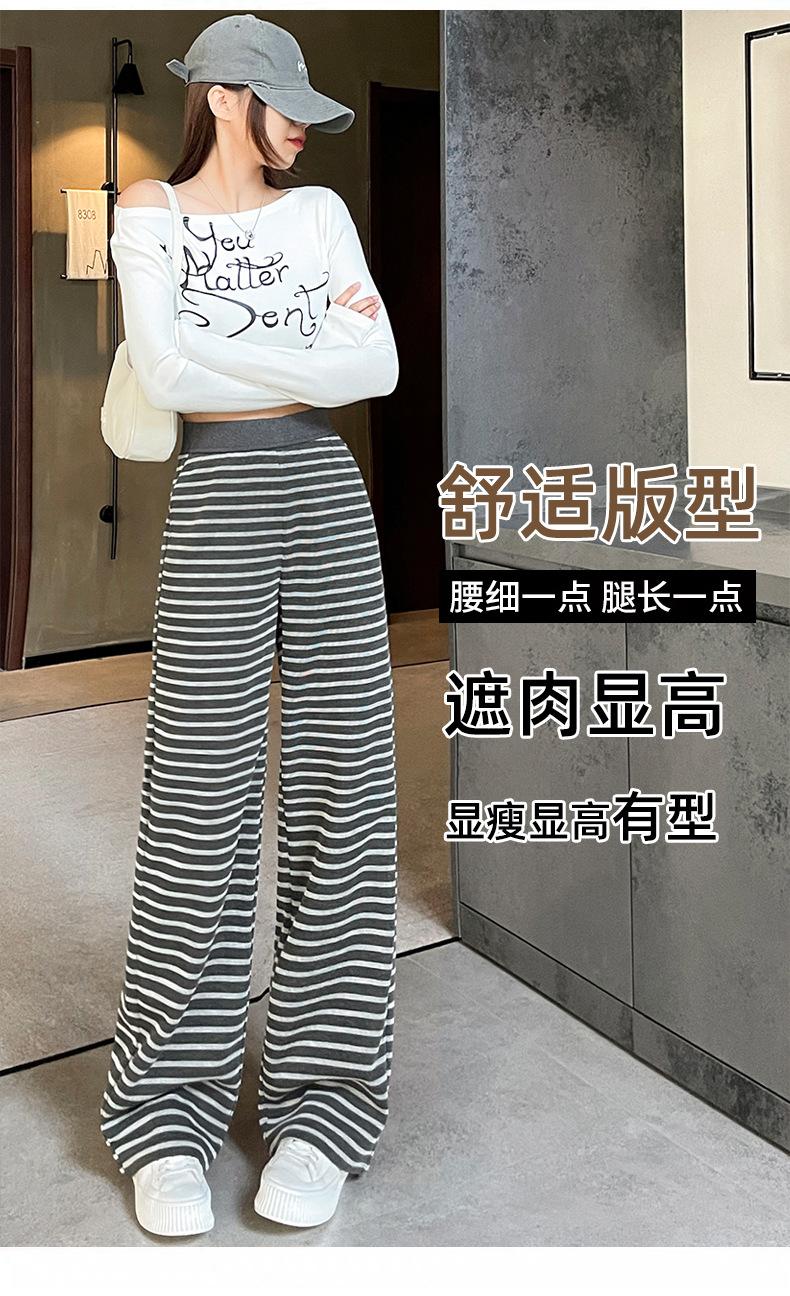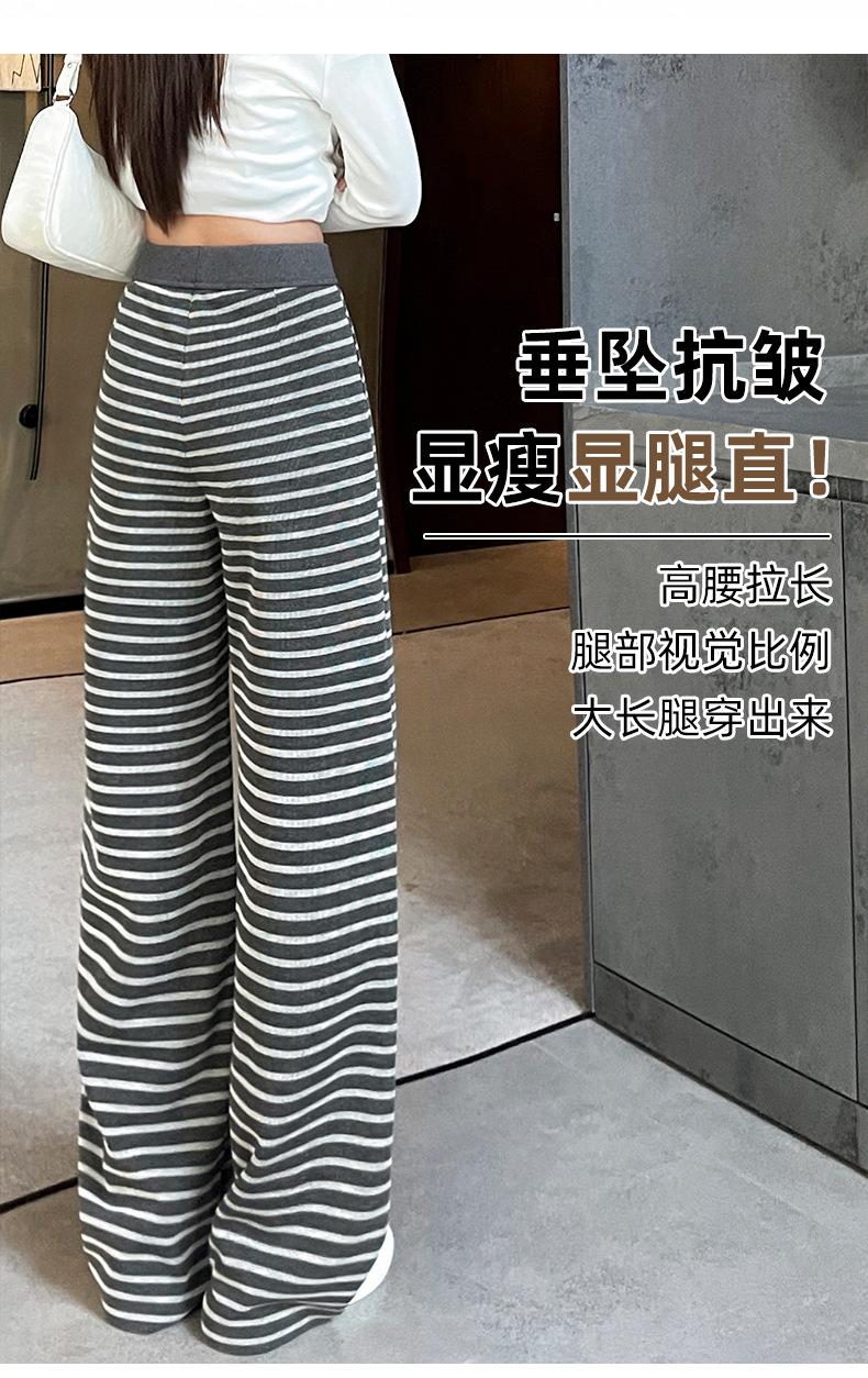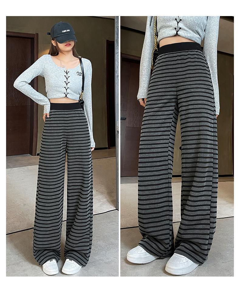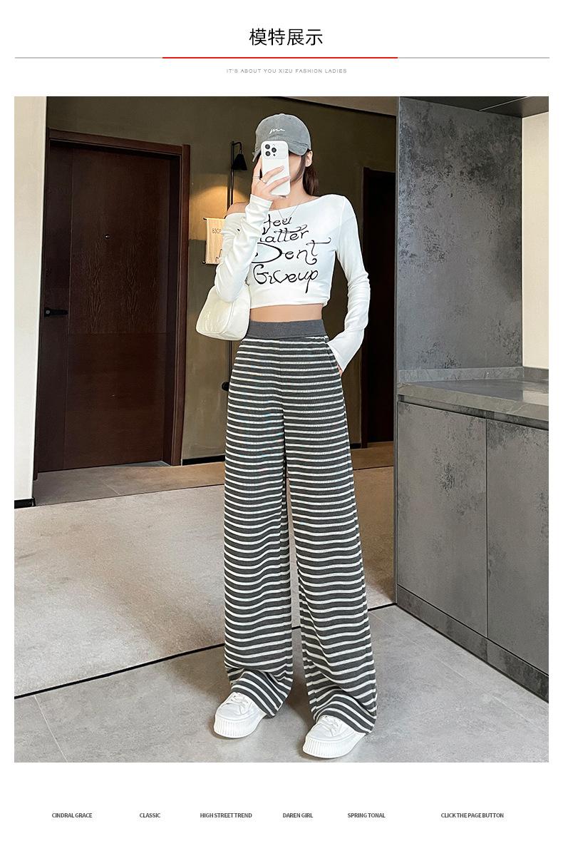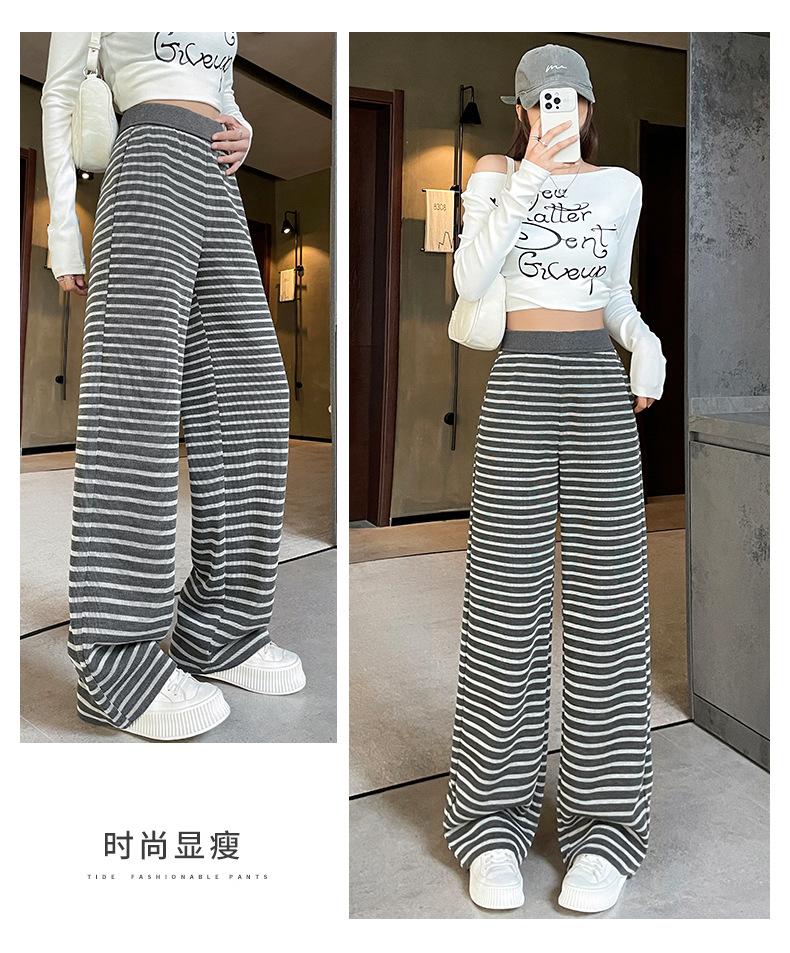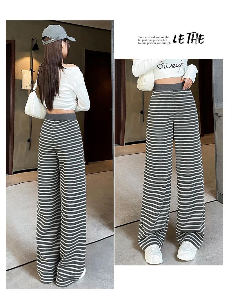 Pantalones deportivos para mujer, primavera y otoño 2025, nuevos, de cintura alta, ajustados, holgados, a rayas, de punto, informales, de pierna ancha, A3106