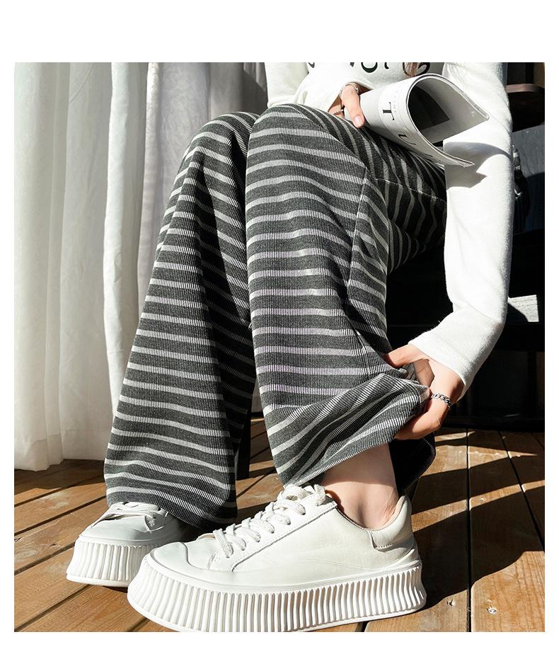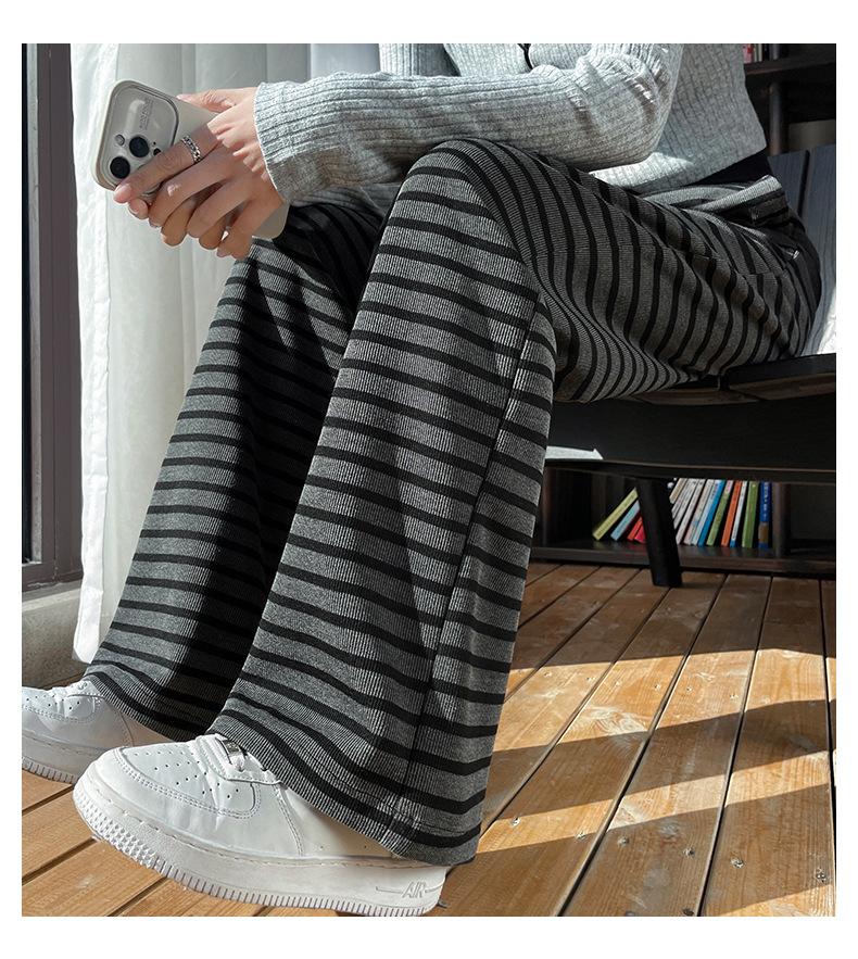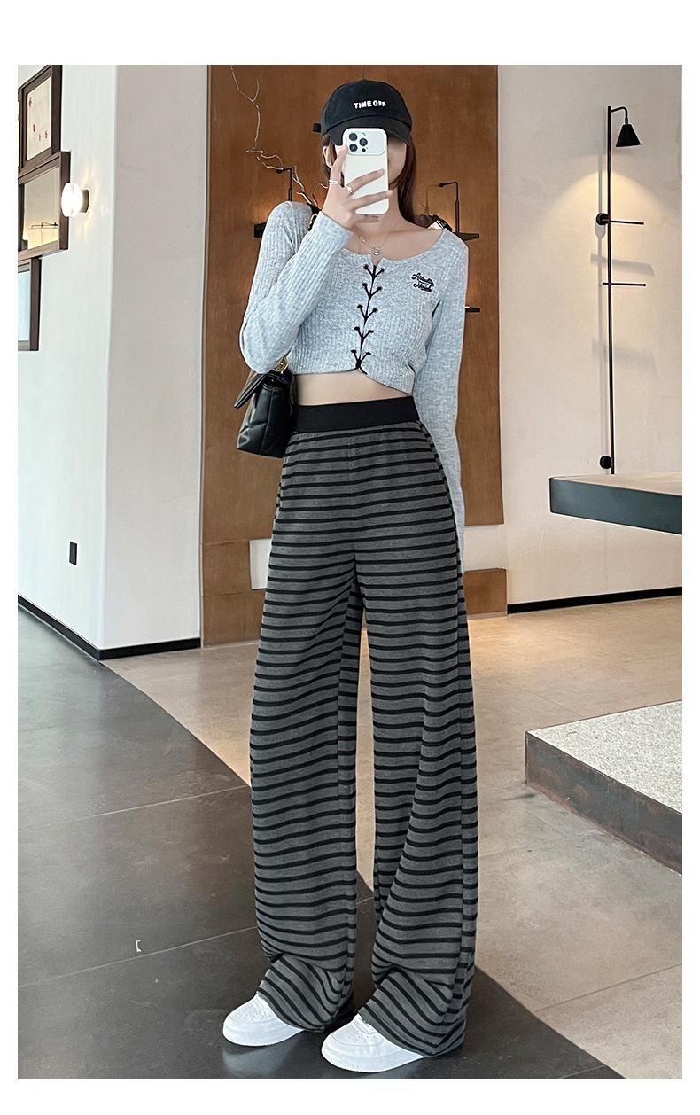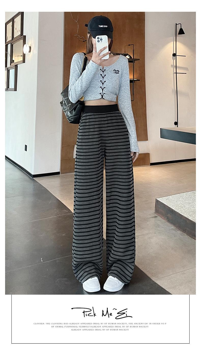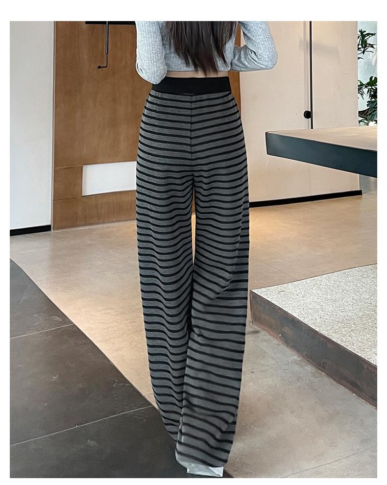 Pantalones deportivos para mujer, primavera y otoño 2025, nuevos, de cintura alta, ajustados, holgados, a rayas, de punto, informales, de pierna ancha, A3106
