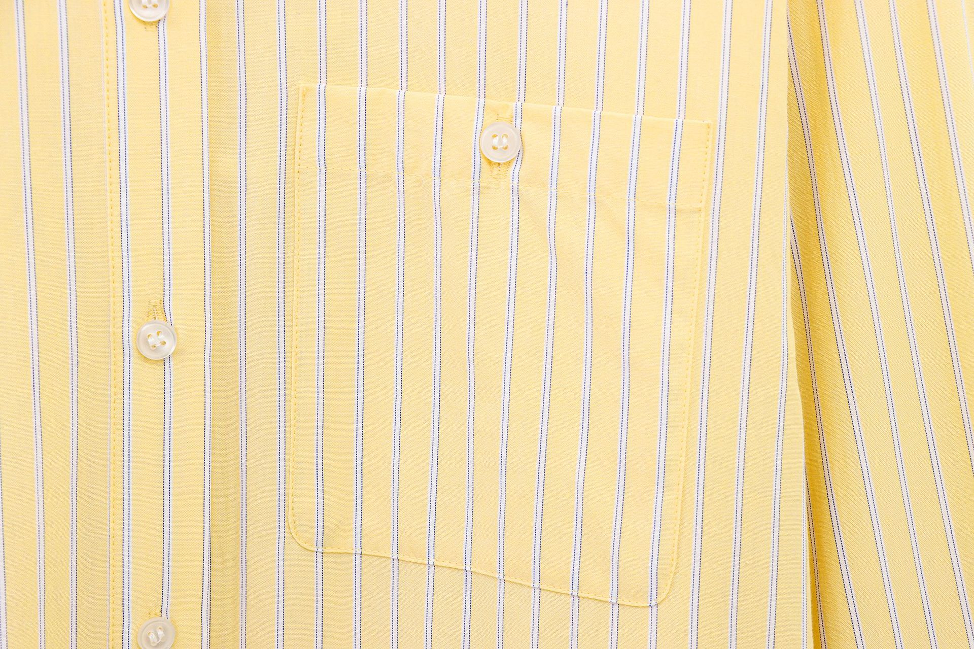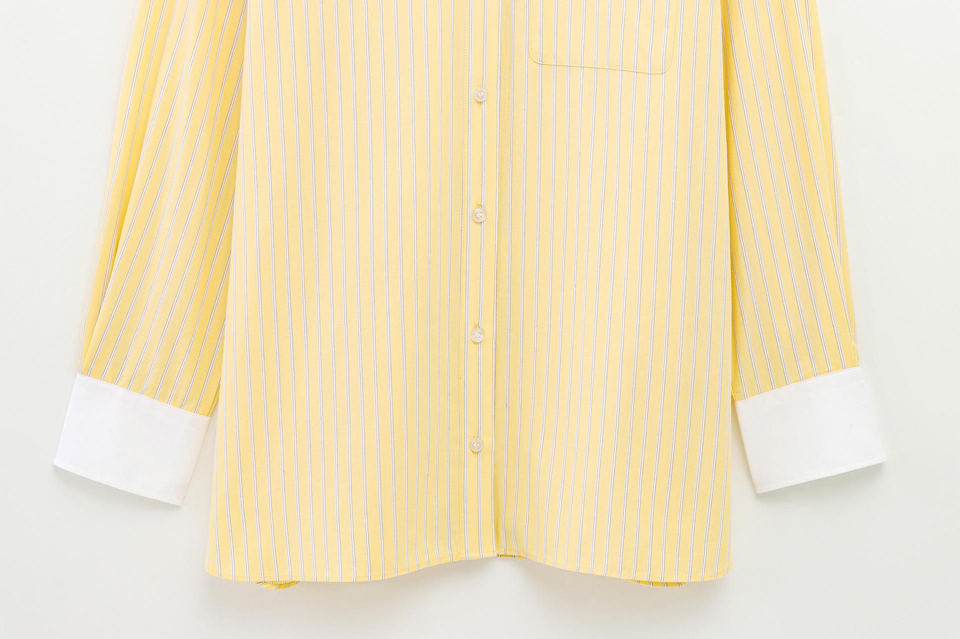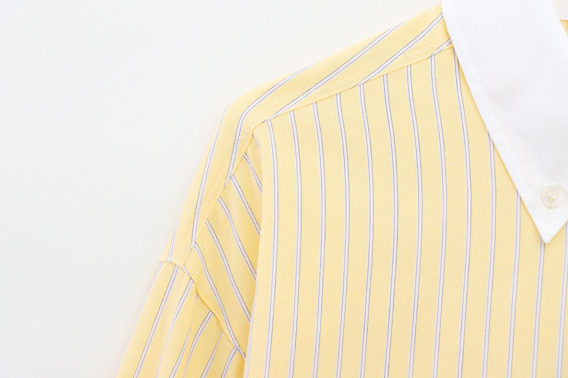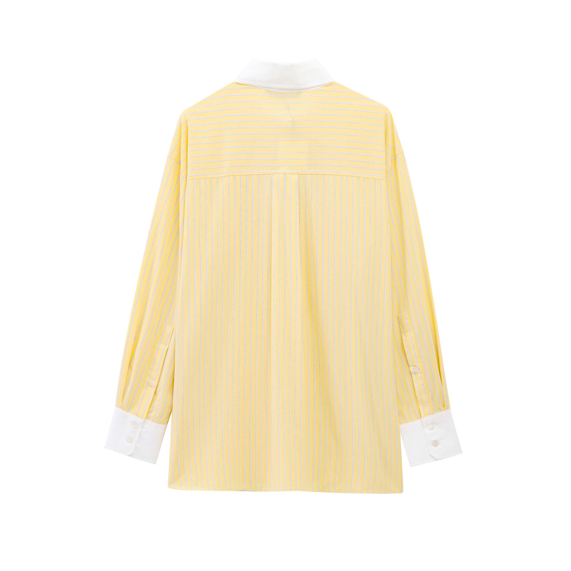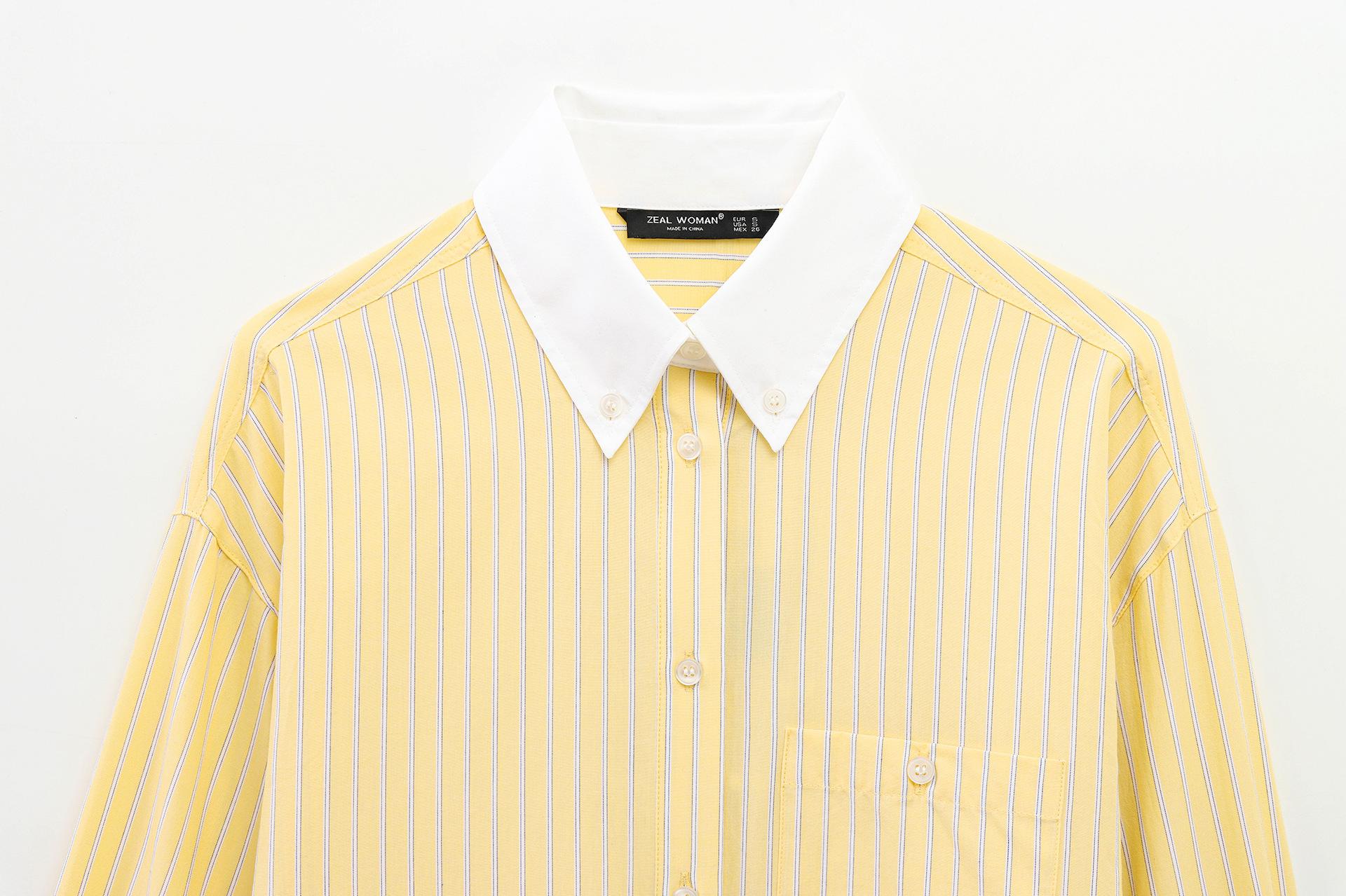 Venta al por mayor de comercio exterior estilo europeo y americano moda primavera 2025 popelina de algodón rayas en los hombros camisa holgada de manga larga para mujer K52570