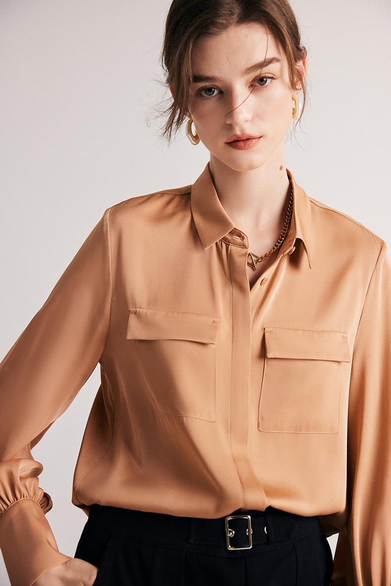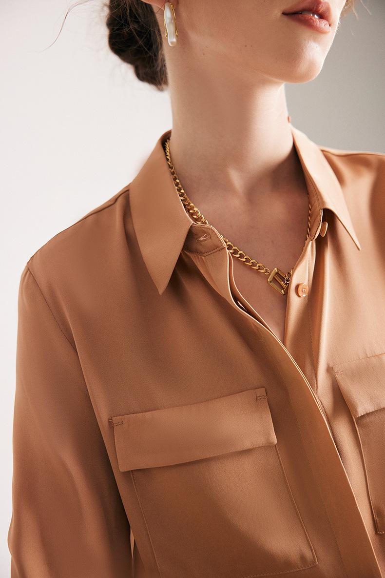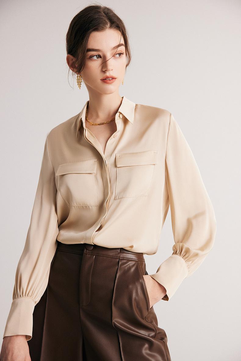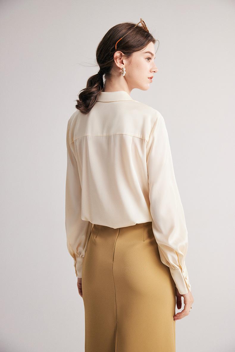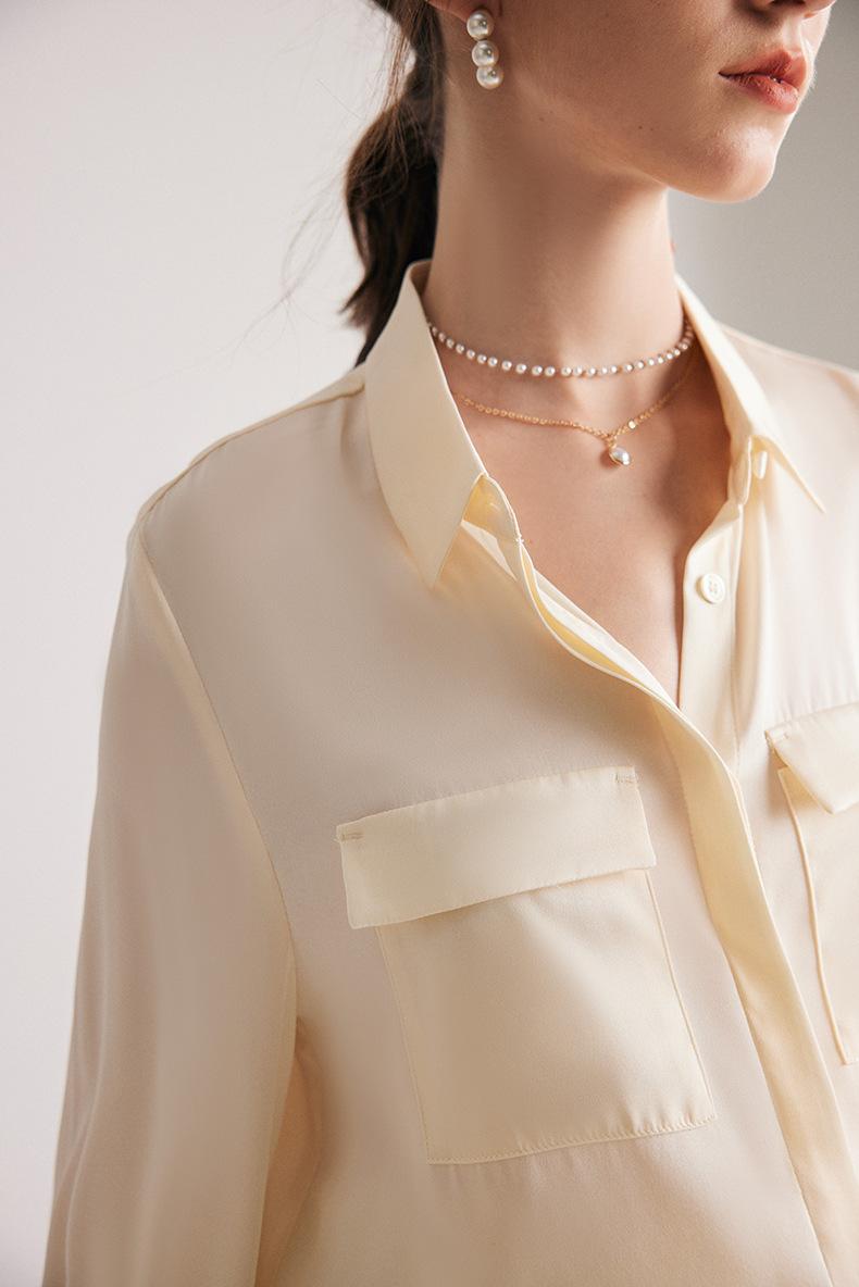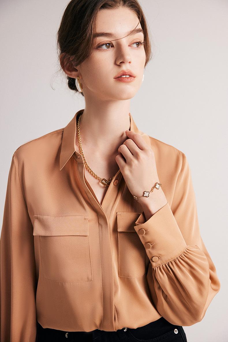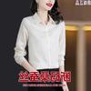 Camisa de seda para mujer, primavera y verano 2025, nueva, de manga larga, color liso, elegante, de seda morera de Hangzhou.