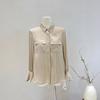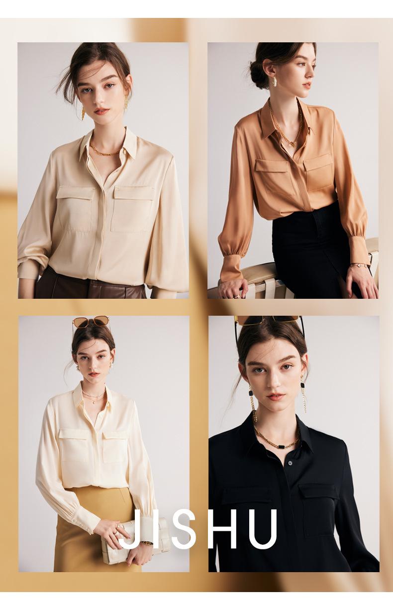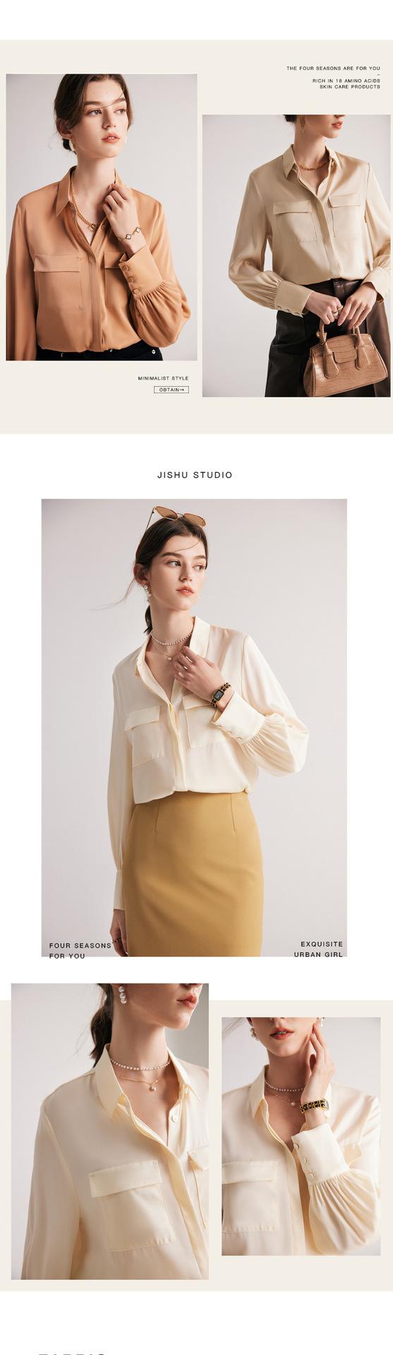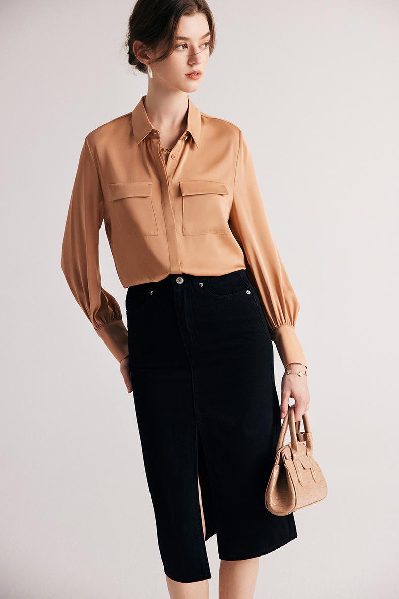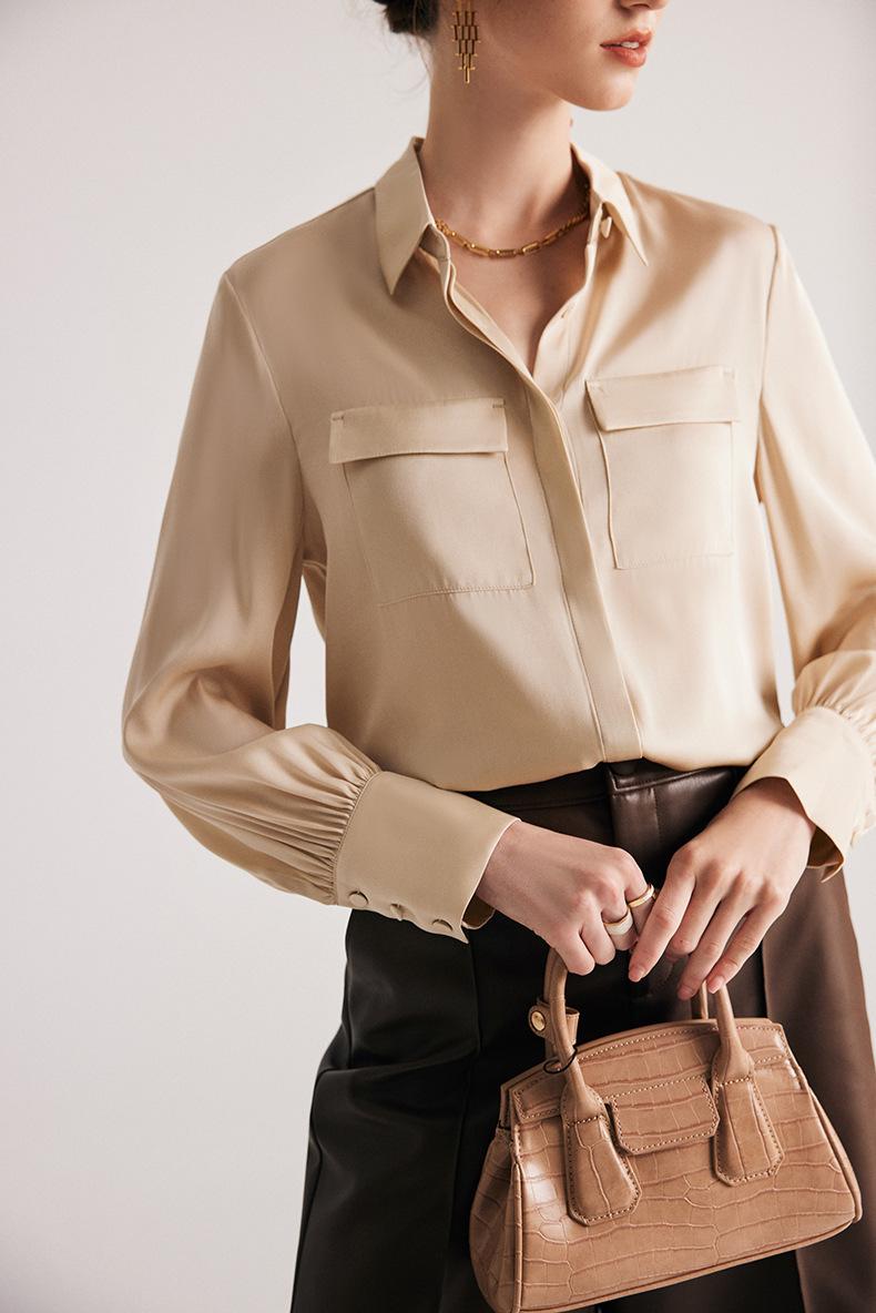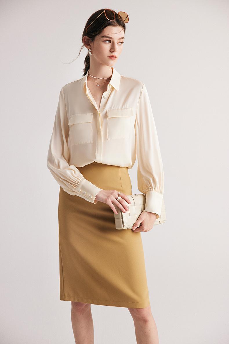 Camisa de seda para mujer, primavera y verano 2025, nueva, de manga larga, color liso, elegante, de seda morera de Hangzhou.