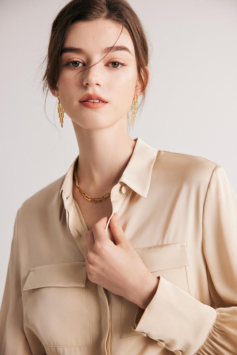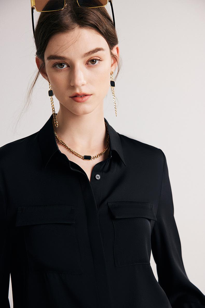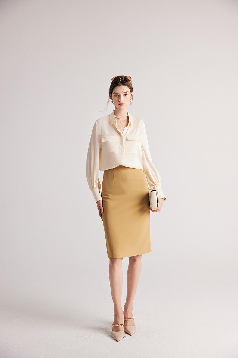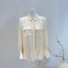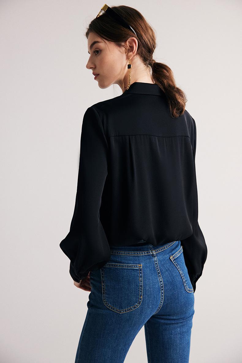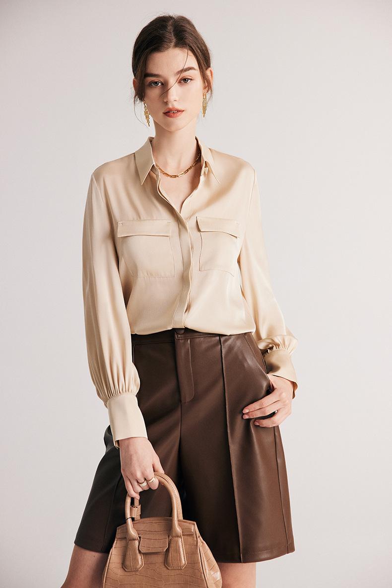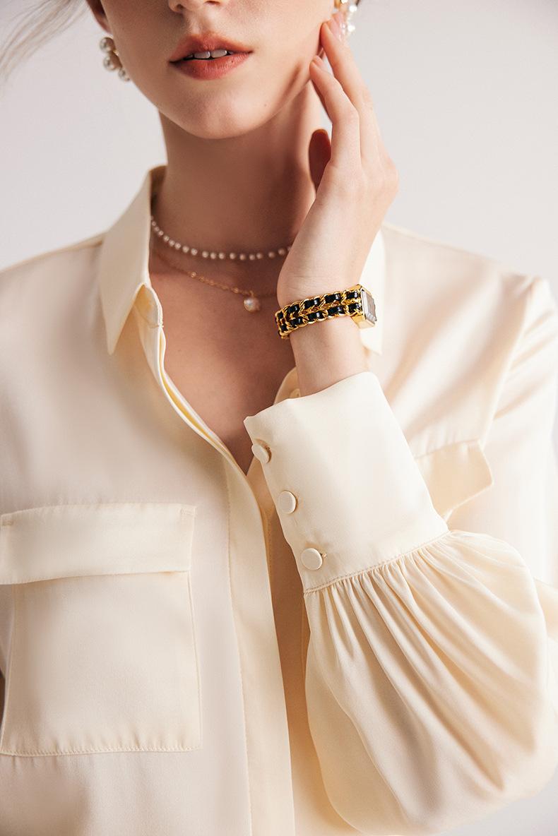 Camisa de seda para mujer, primavera y verano 2025, nueva, de manga larga, color liso, elegante, de seda morera de Hangzhou.