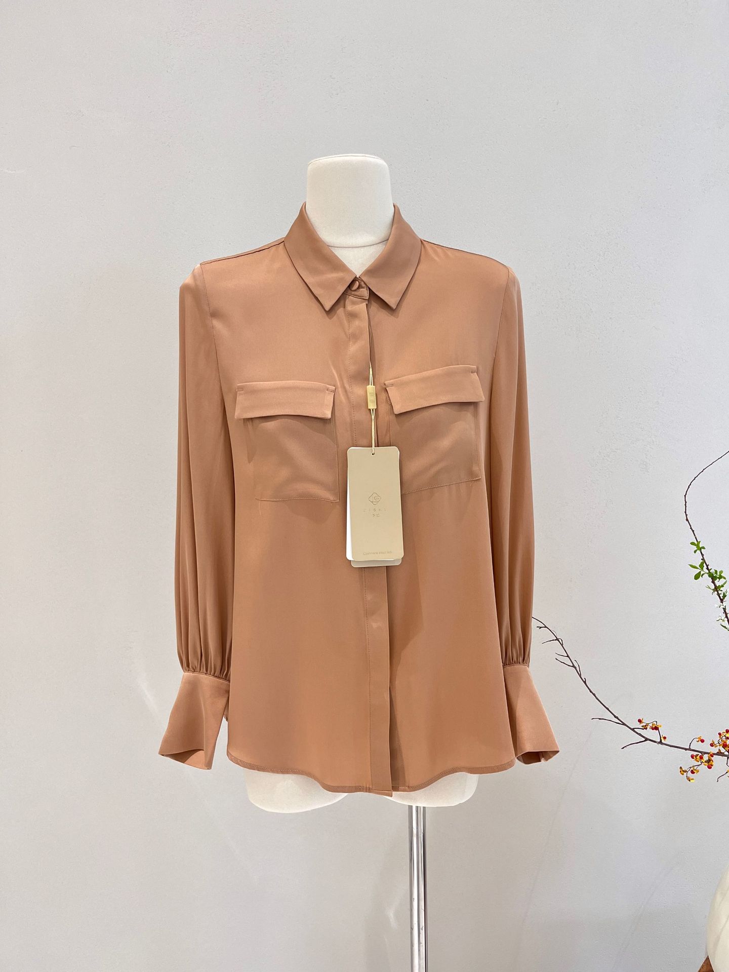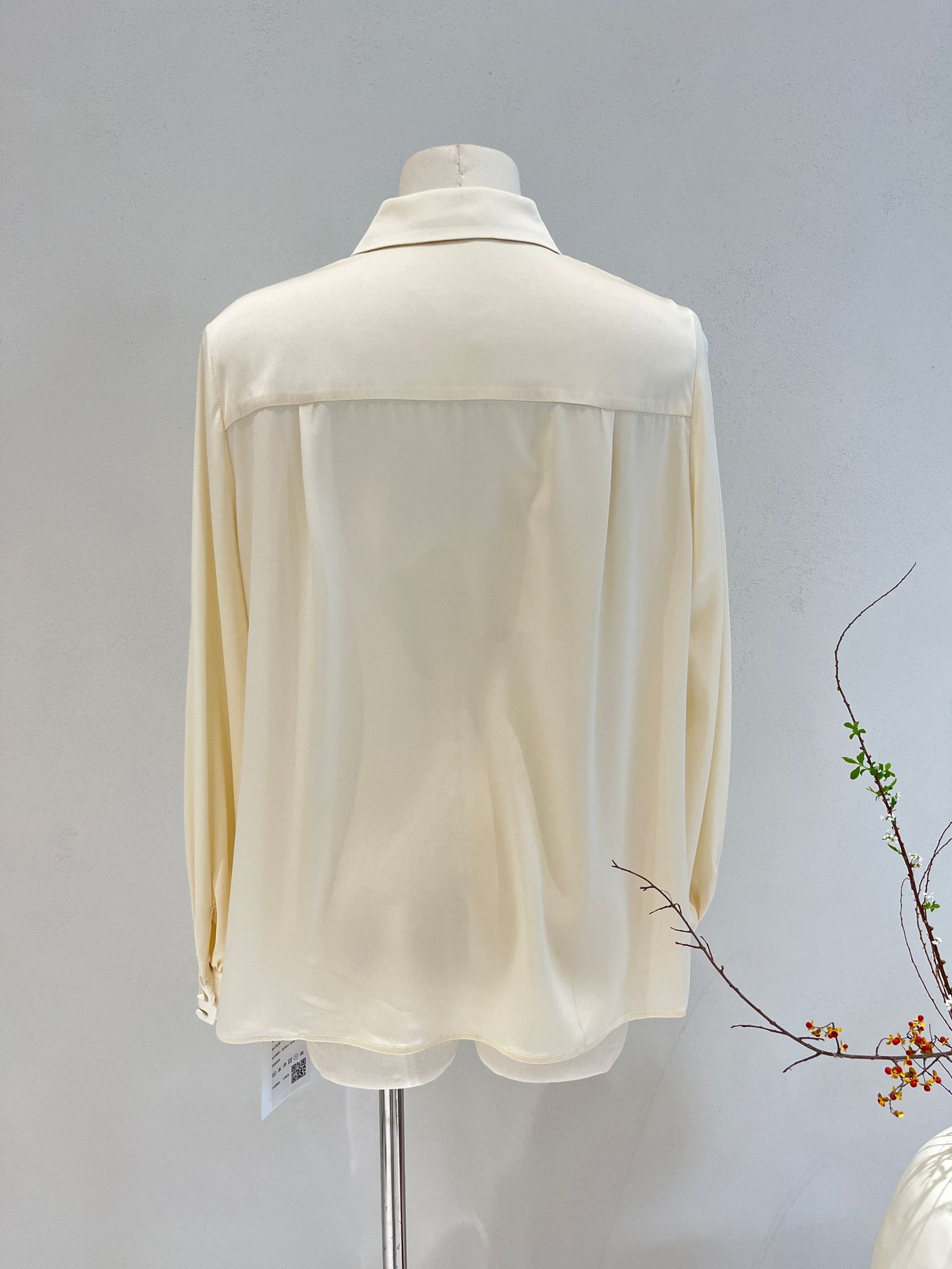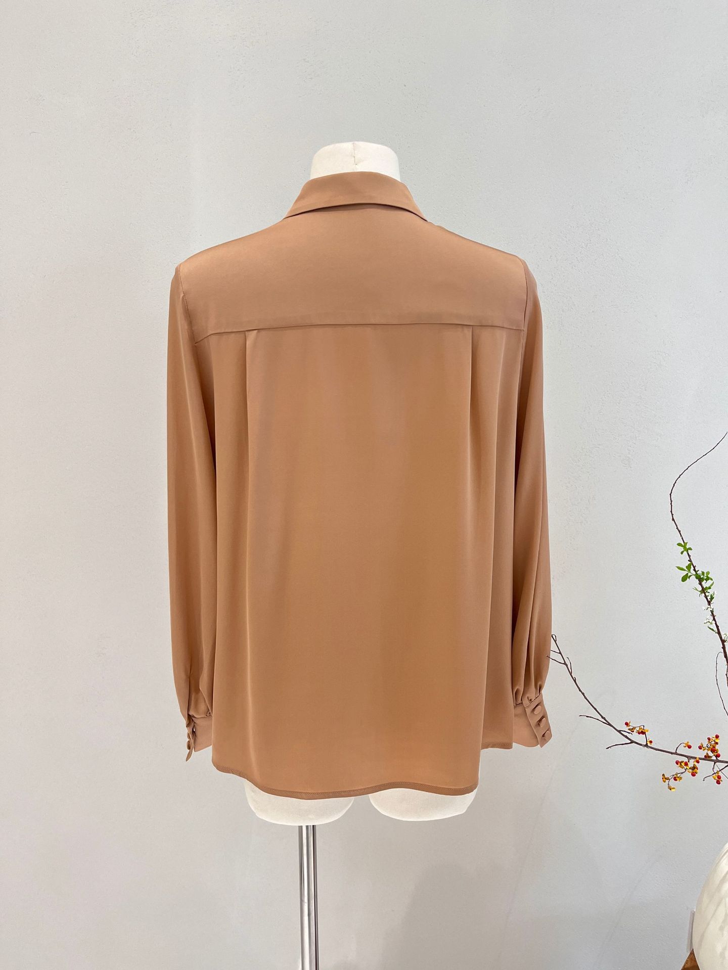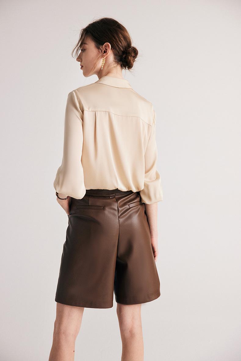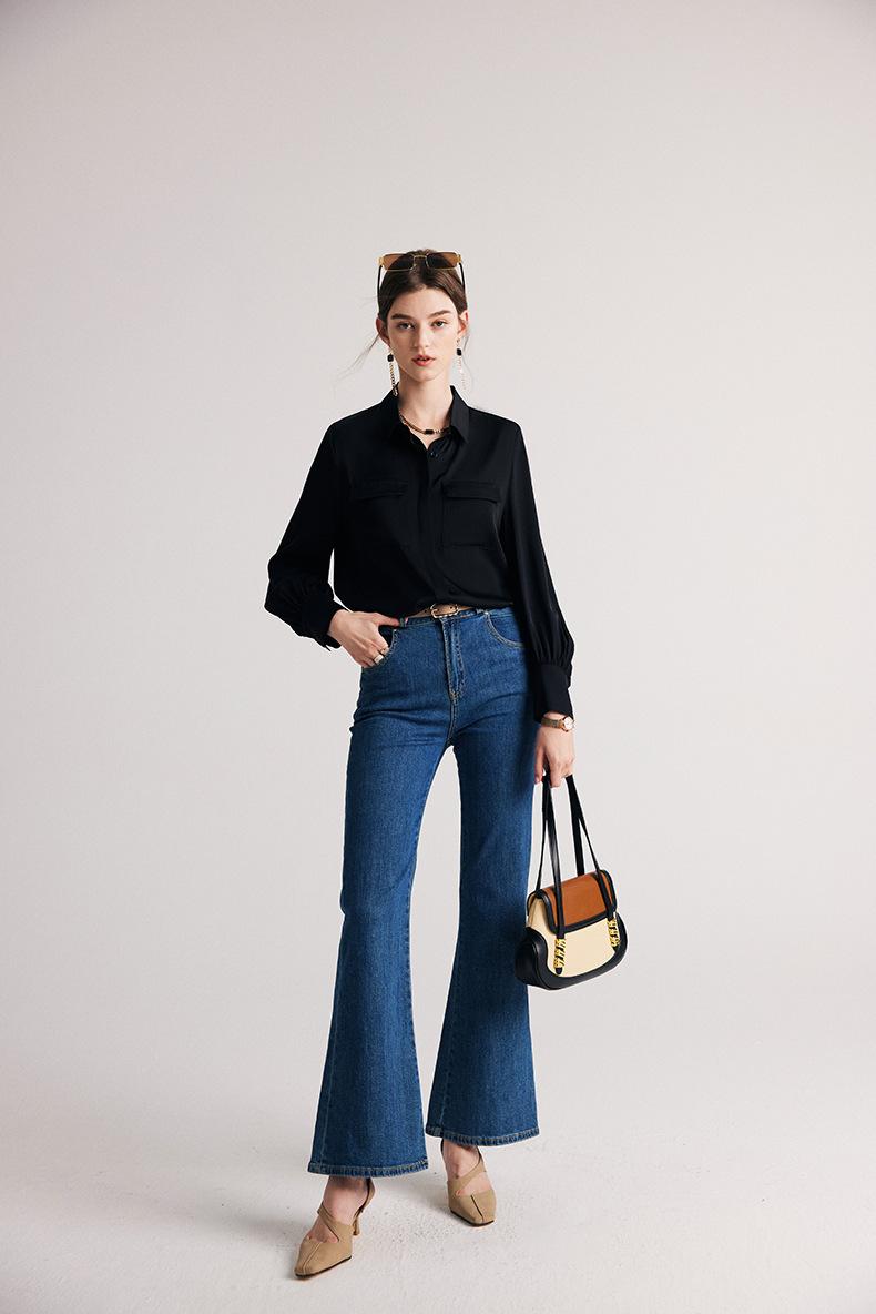 Camisa de seda para mujer, primavera y verano 2025, nueva, de manga larga, color liso, elegante, de seda morera de Hangzhou.