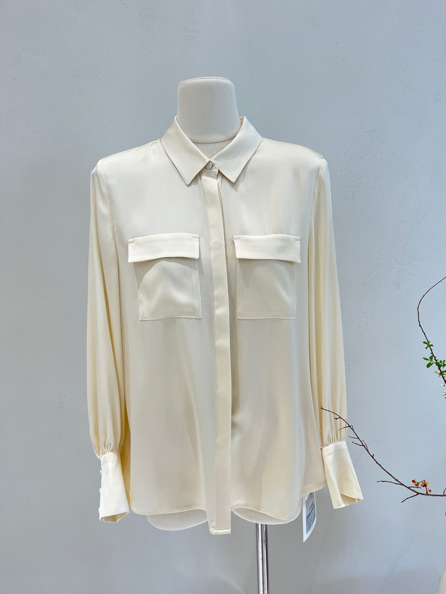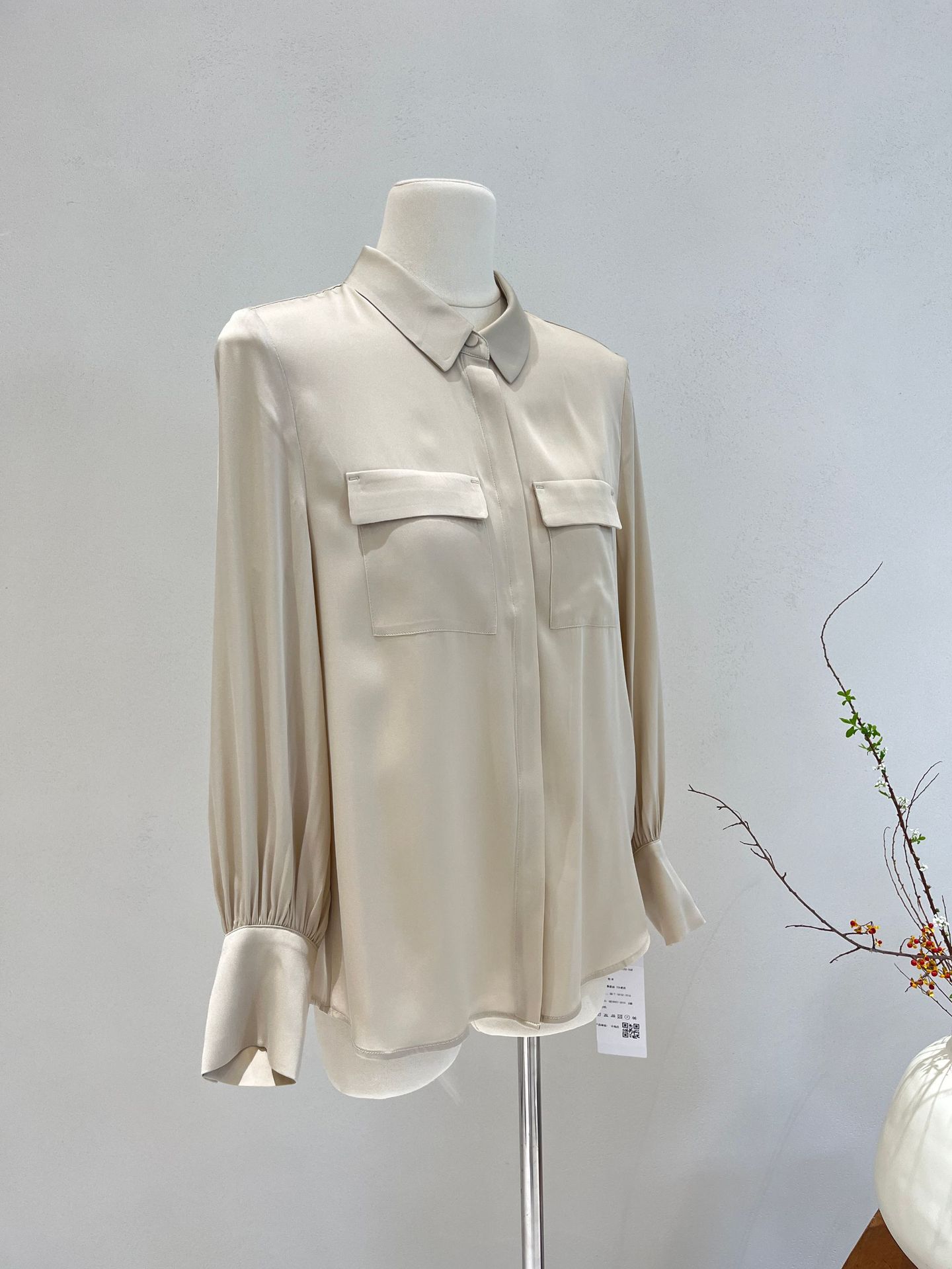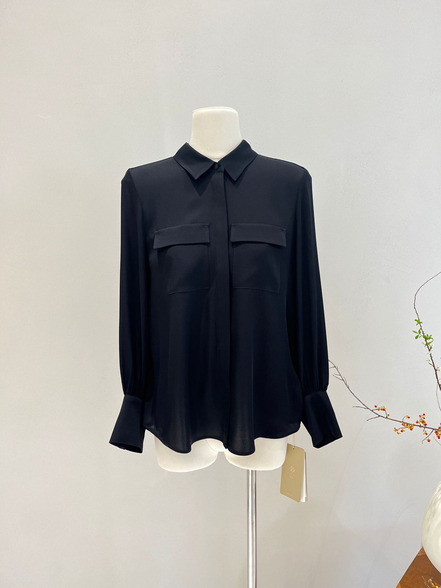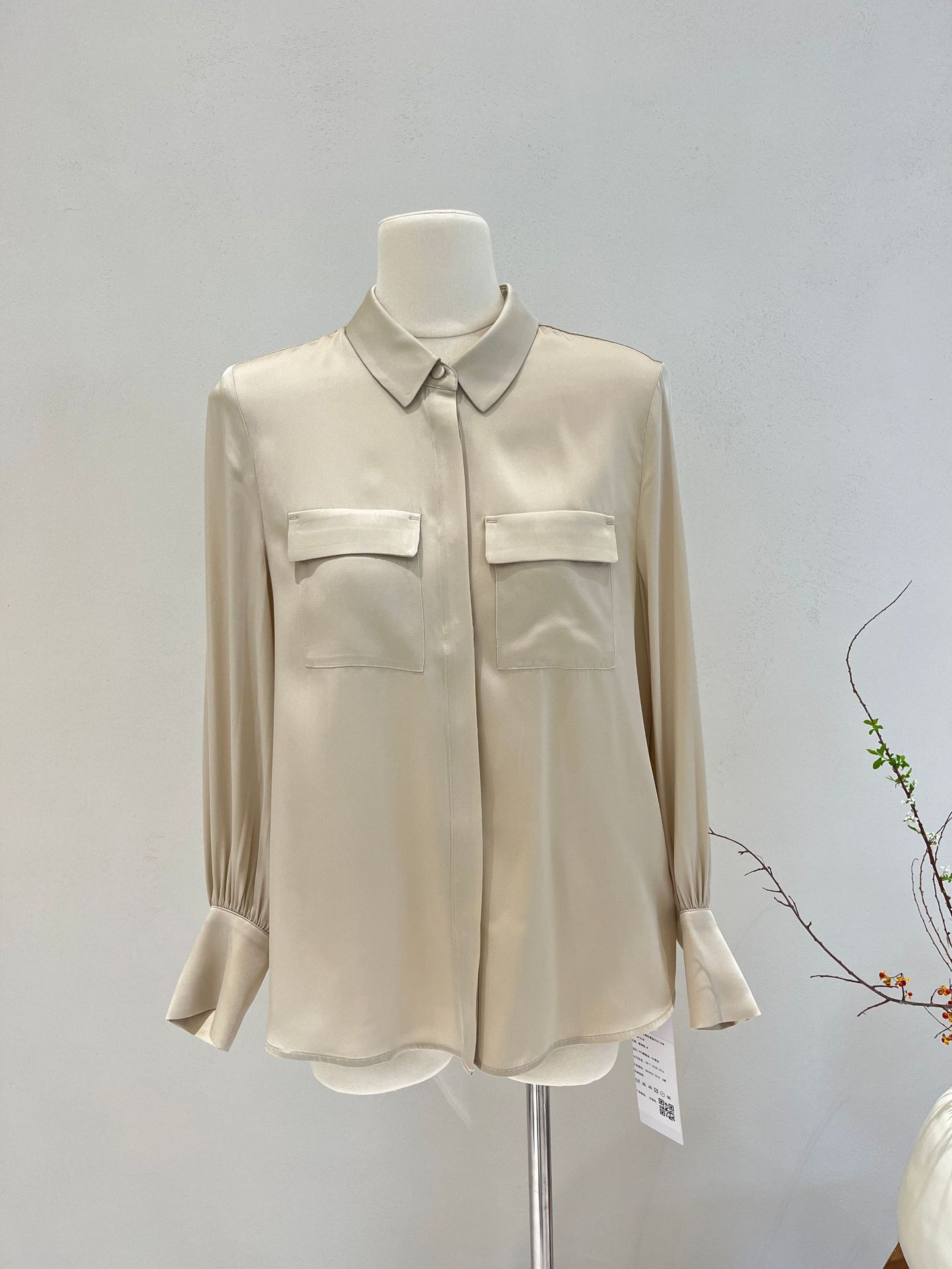 Camisa de seda para mujer, primavera y verano 2025, nueva, de manga larga, color liso, elegante, de seda morera de Hangzhou.