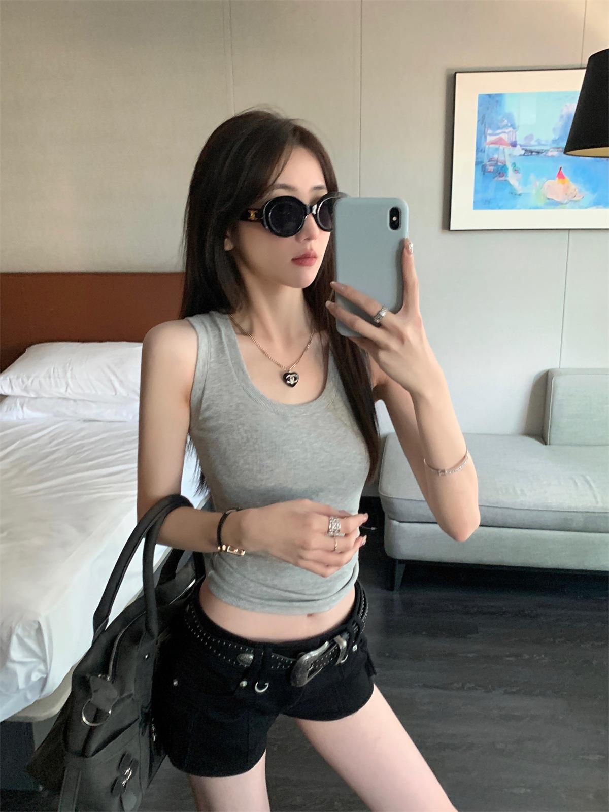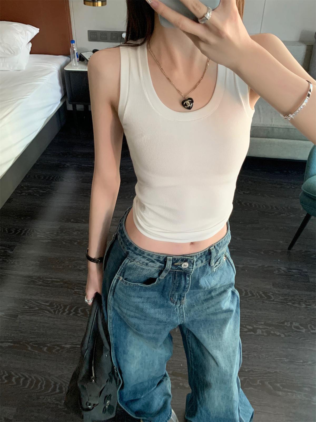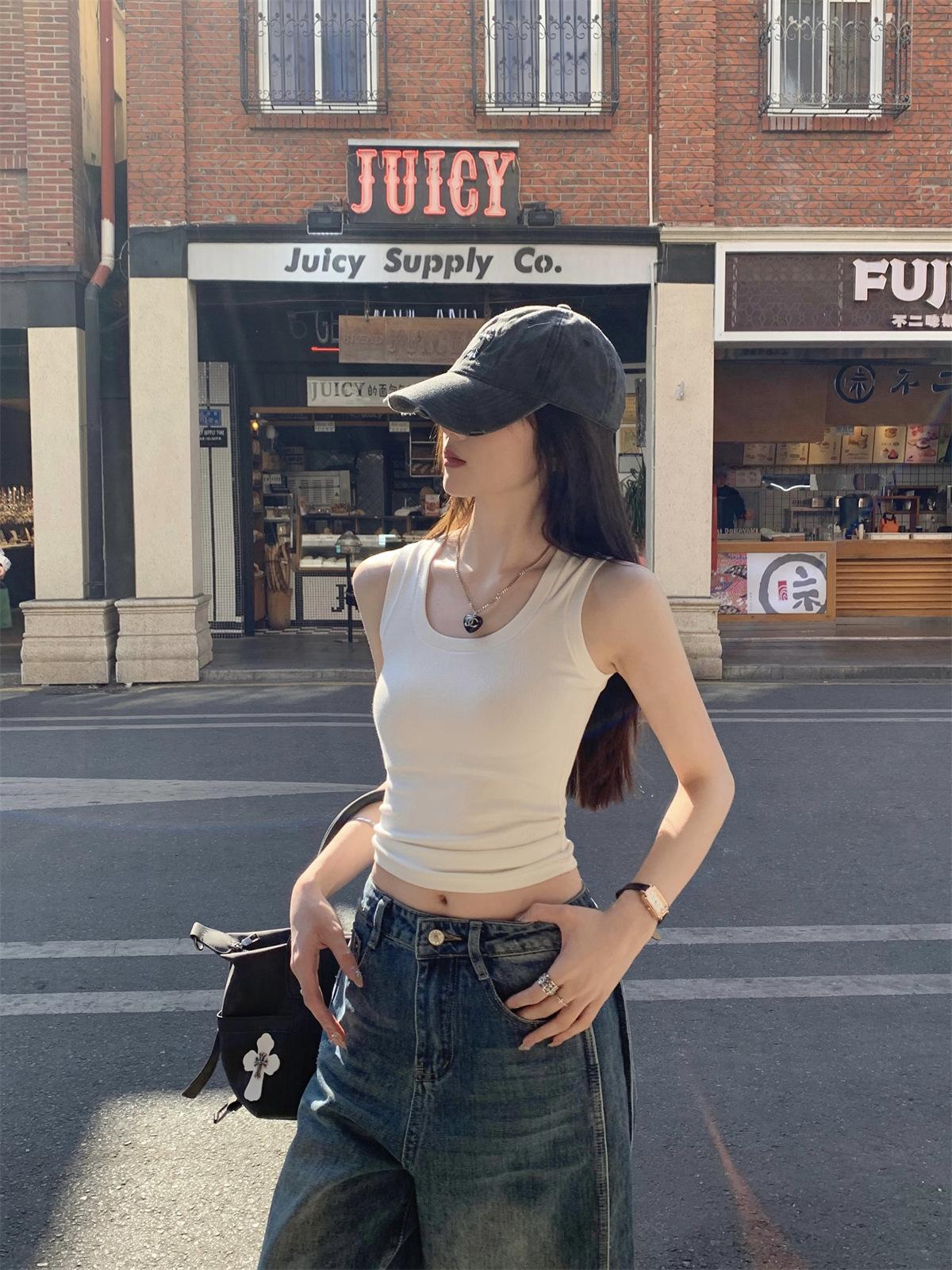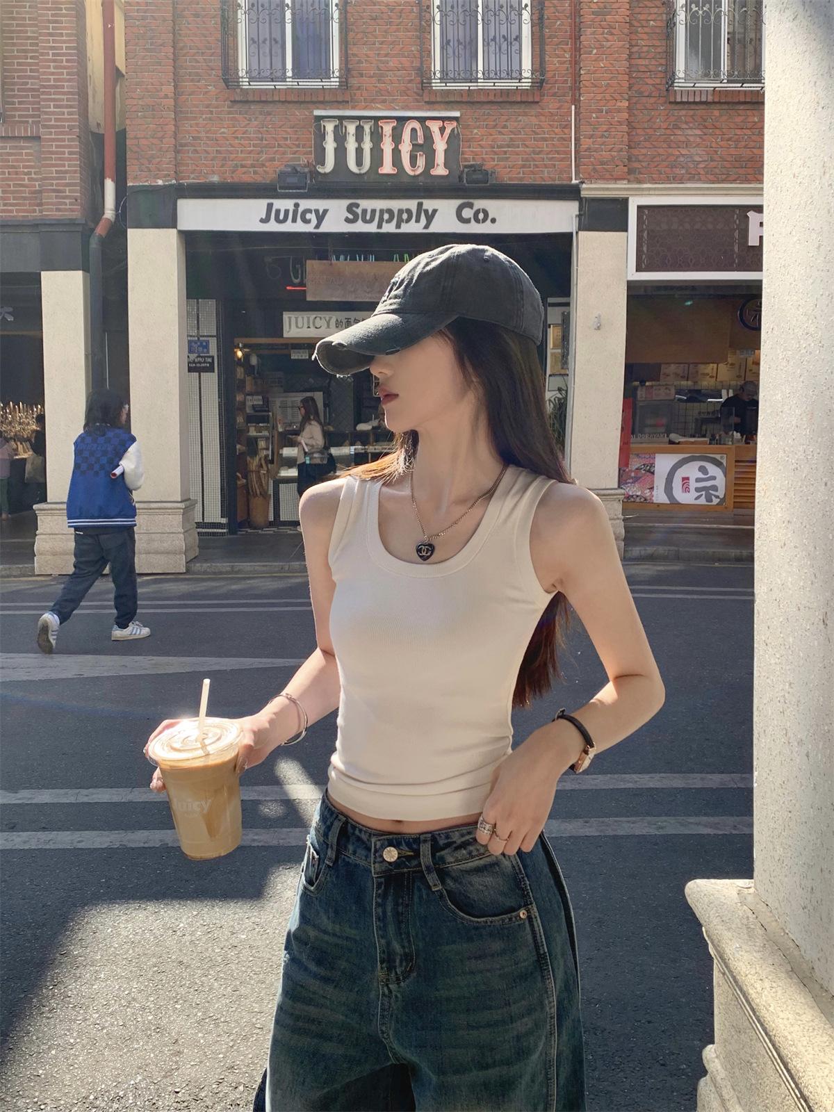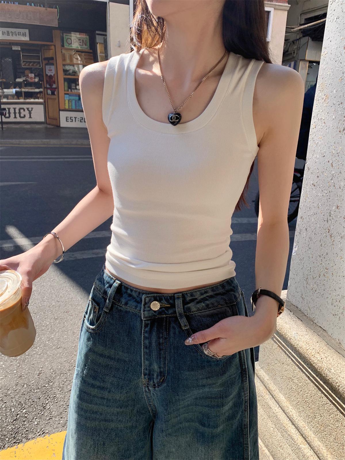 Haobo 2025 Verano Estilo Coreano Elegante Ajustado Cuello Cuadrado Forma I Adelgazante Versátil Interior Chaleco sin Mangas Top de Mujer