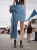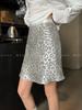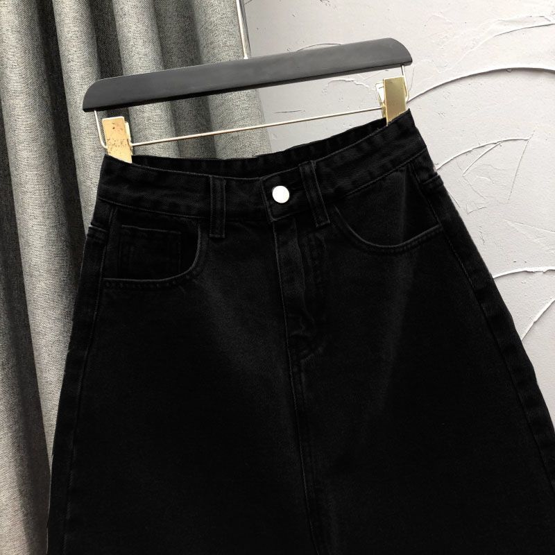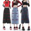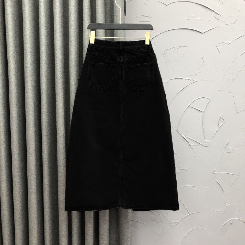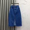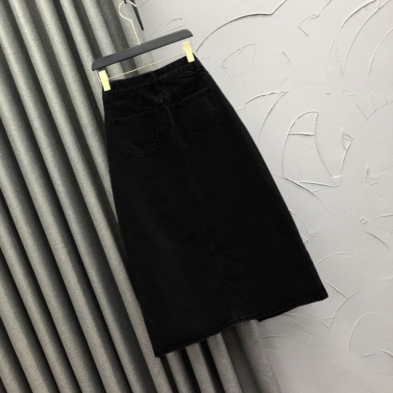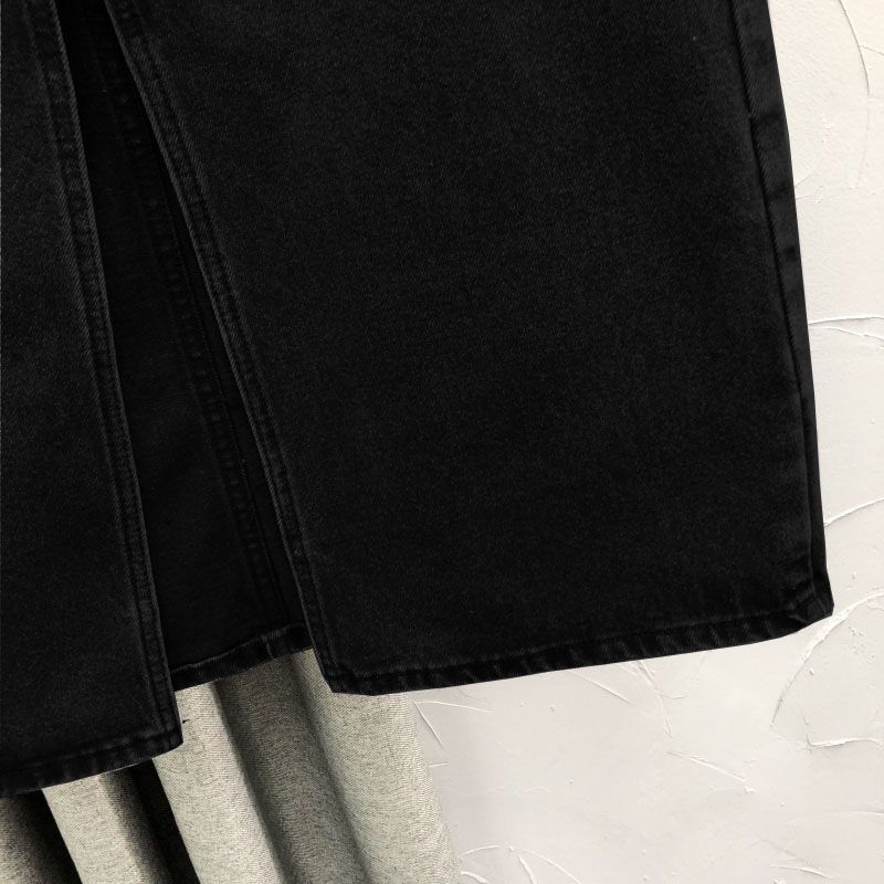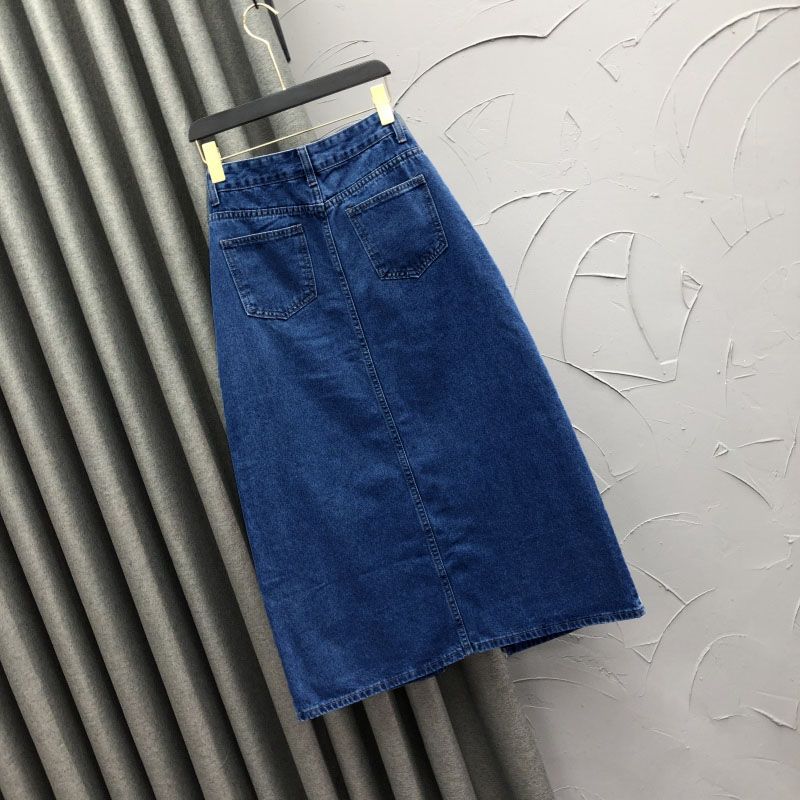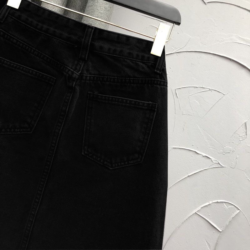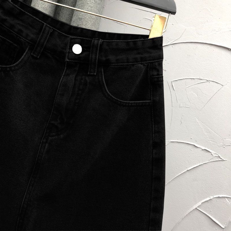 2025 Falda A-line elástica de cintura alta para cadera, adelgazante, para ir al trabajo, falda de mezclilla, belleza dulce, diseño de abertura delantera, ropa exterior