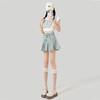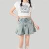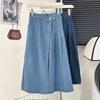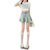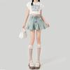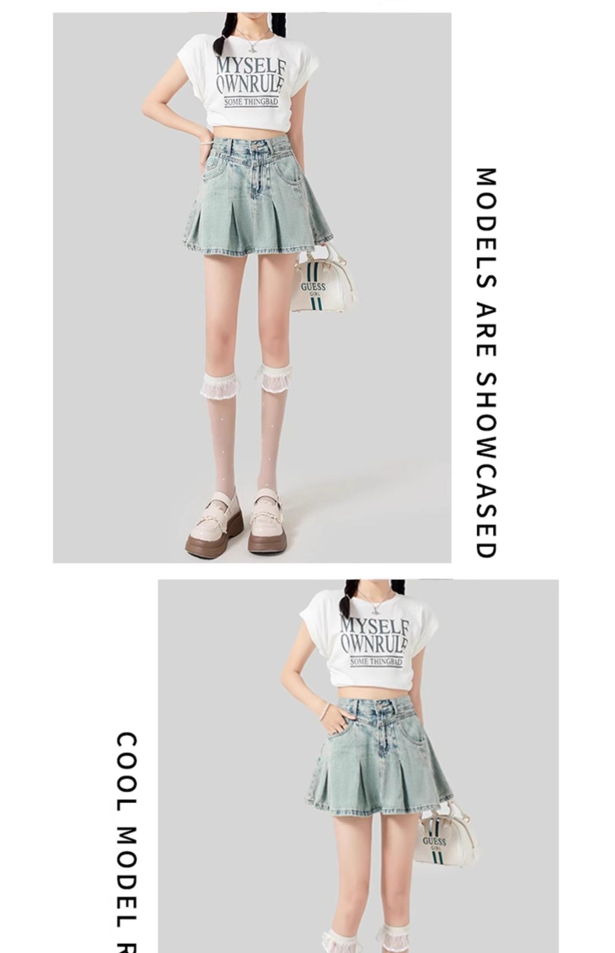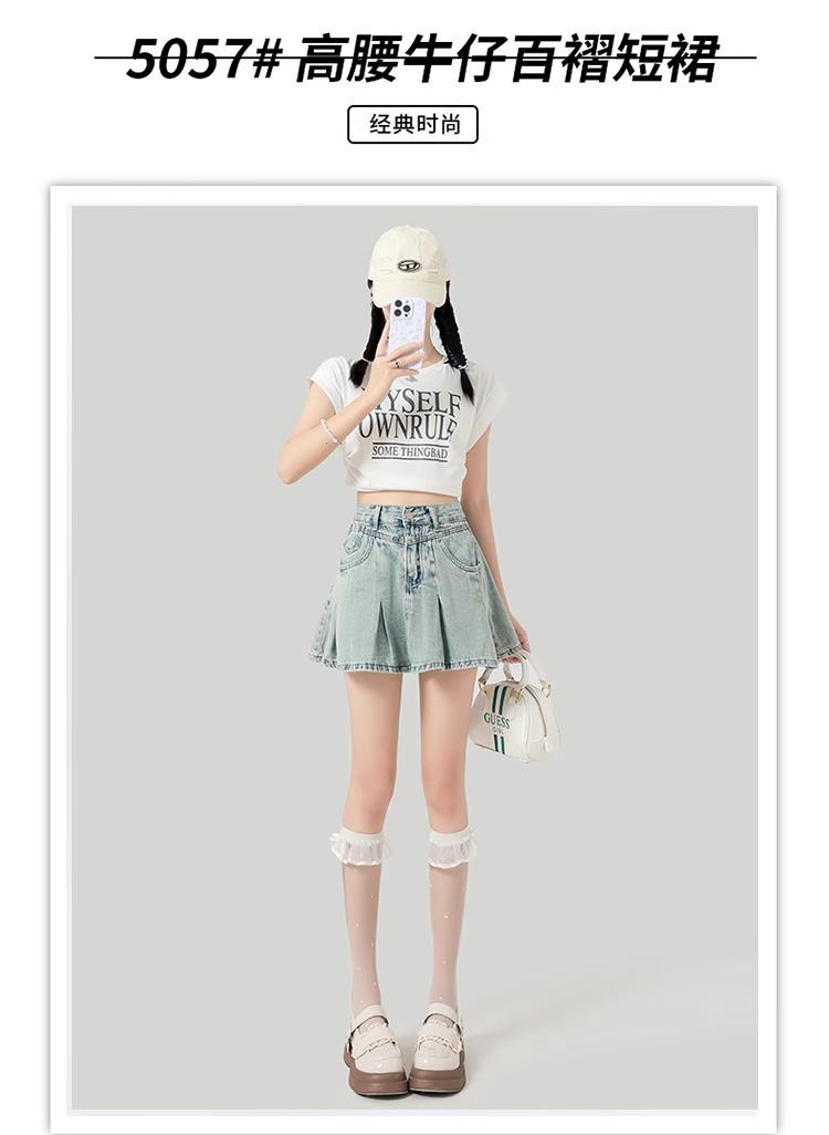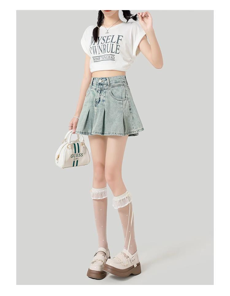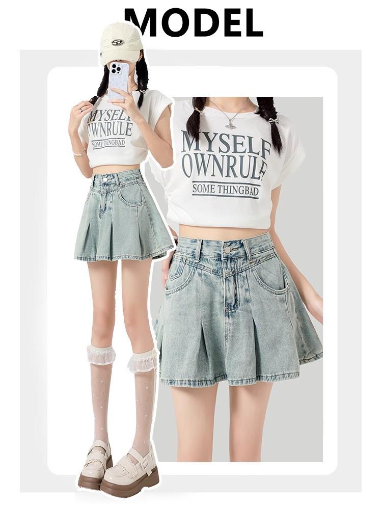 Falda de mezclilla plisada lavada vintage para mujer, estilo Spice Girl que reduce la edad, color claro, falda línea A, cintura alta, adelgazante, falda plisada