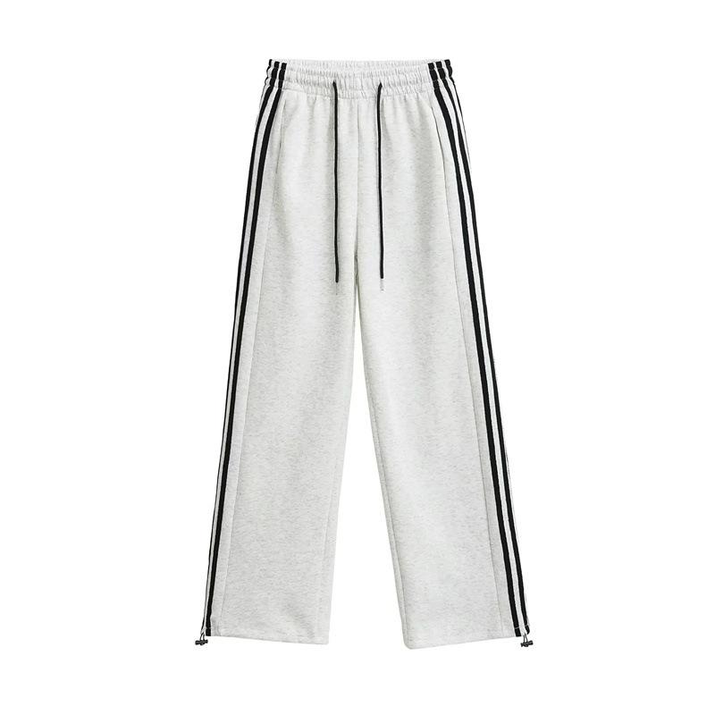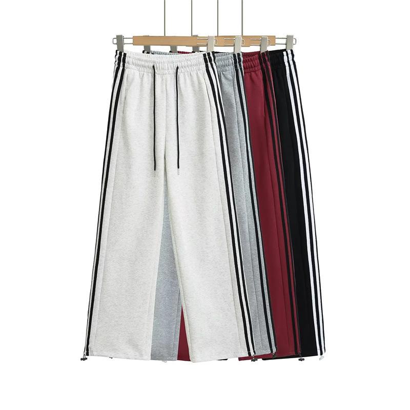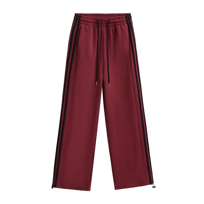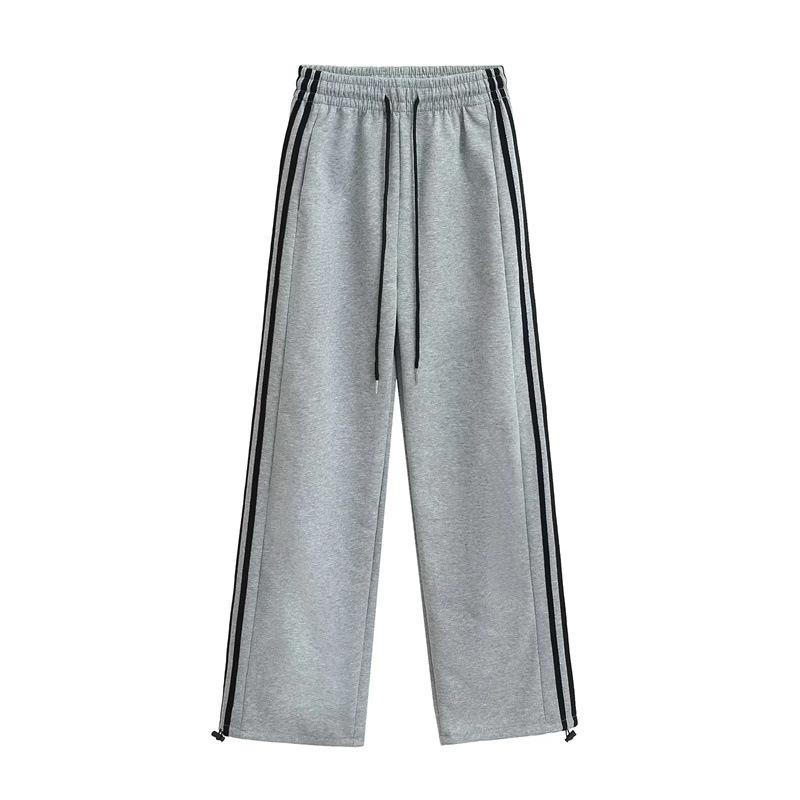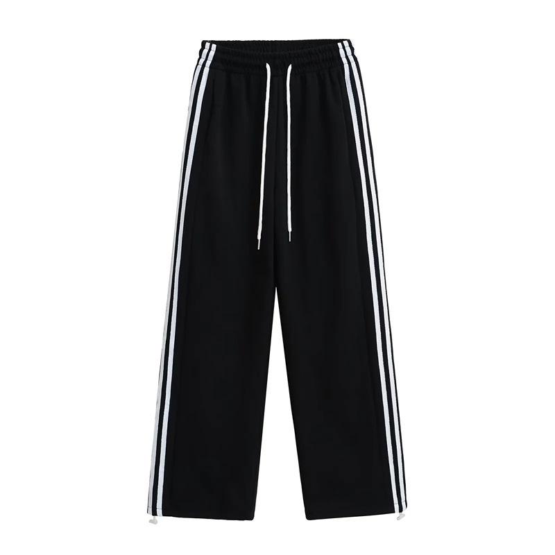 Pantalones deportivos de pierna recta, recién llegados de primavera, modernos, combinables con todo, cintura elástica, cordón ajustable, pantalones holgados con rayas laterales.