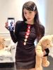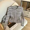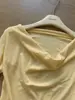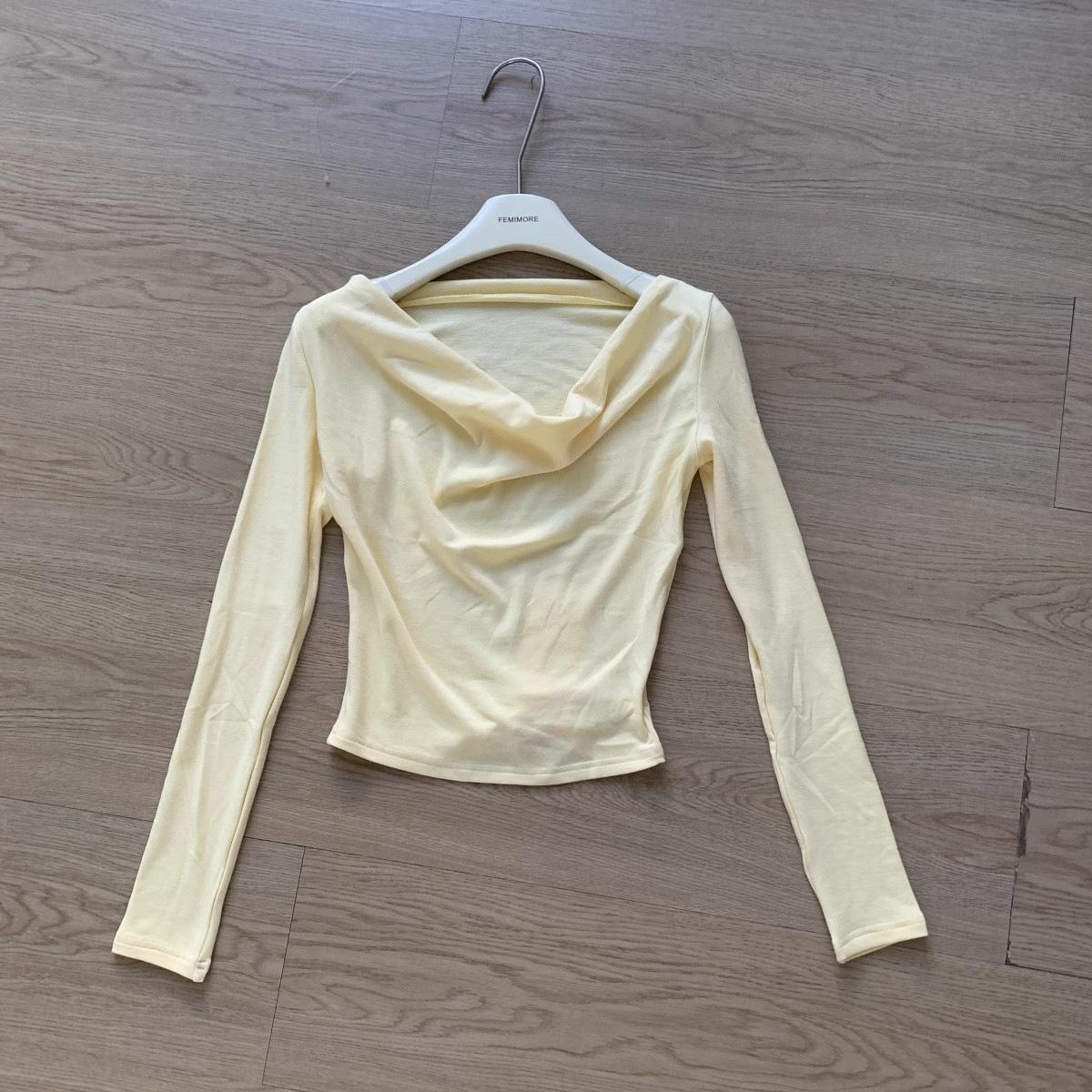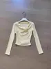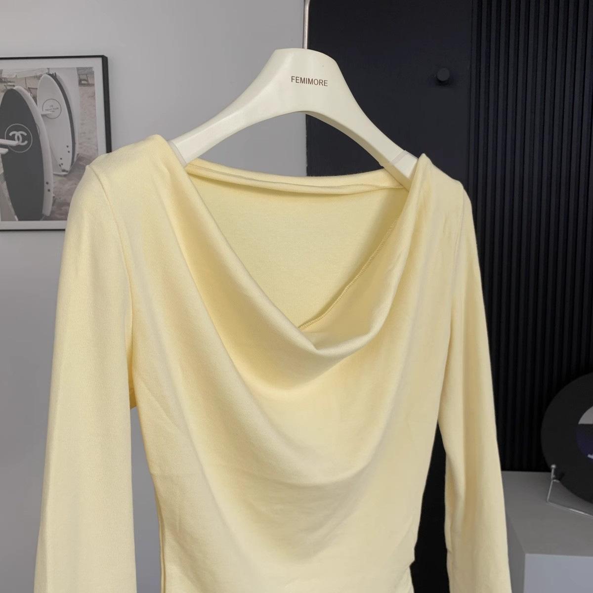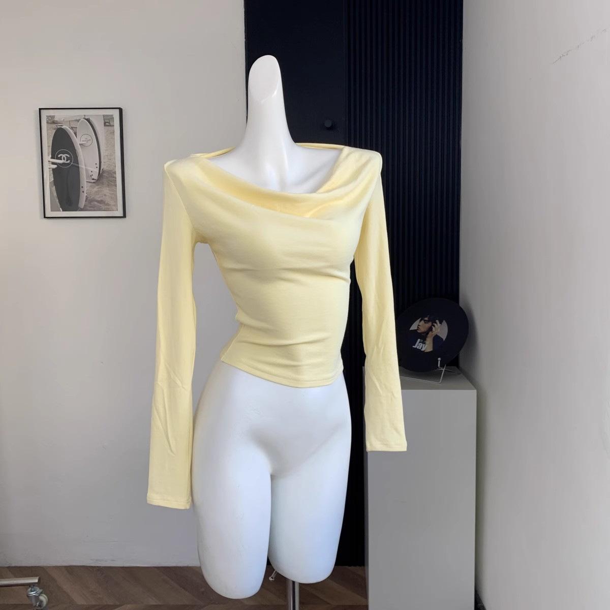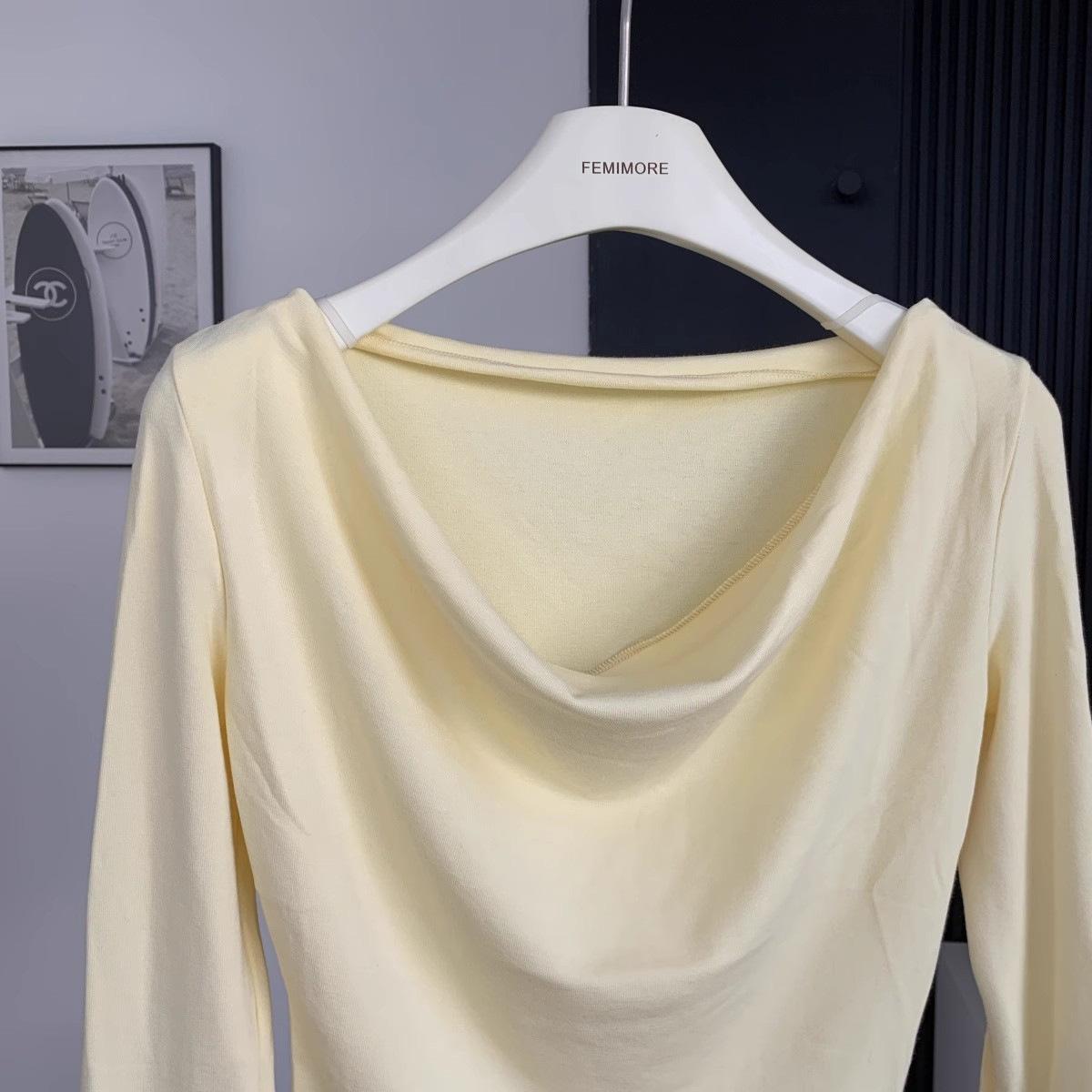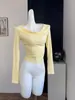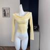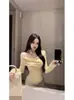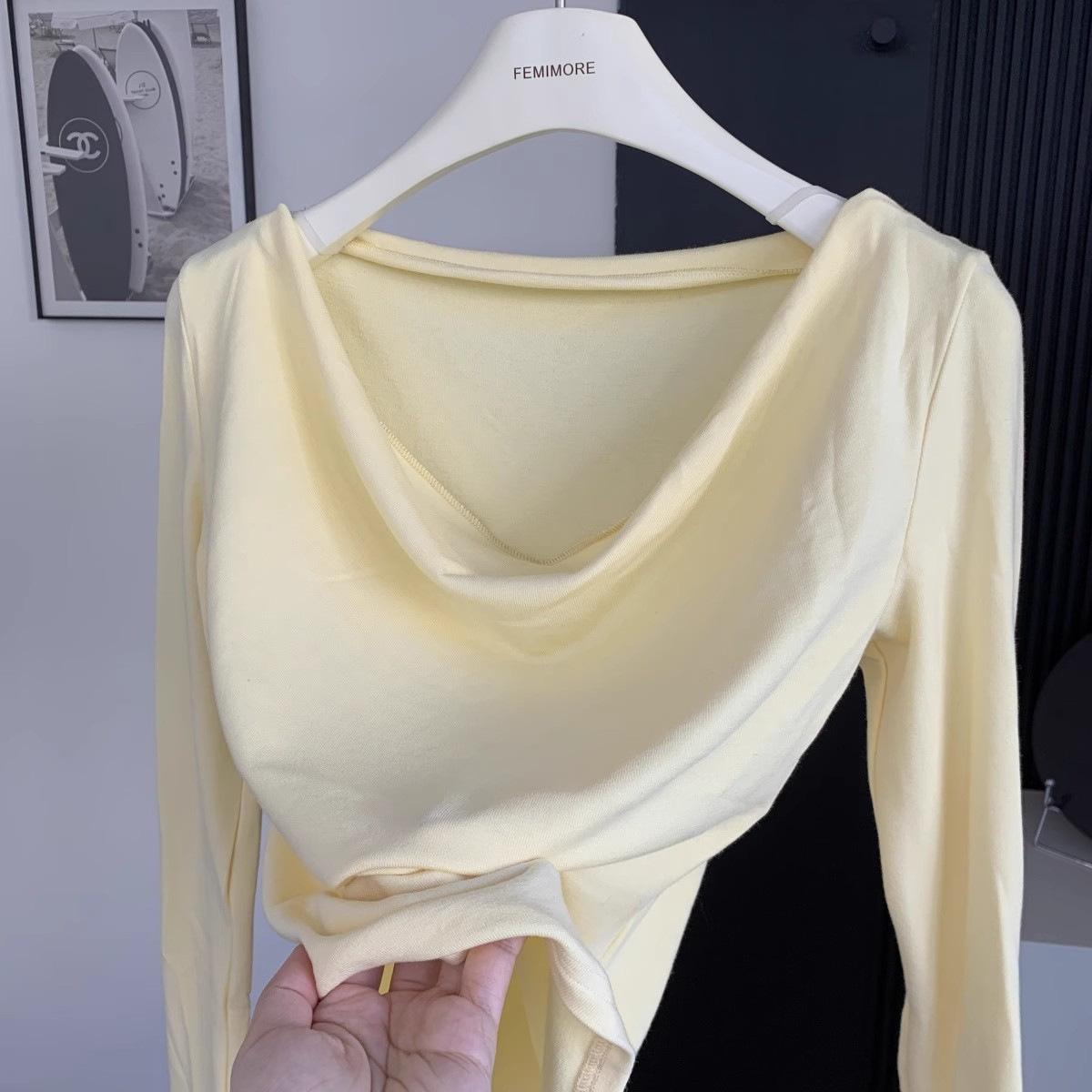 Camiseta básica de otoño de estilo coreano de corte ajustado Spice Girl cuello oscilante manga larga de punto color sólido corta ajustada versátil top Ins
