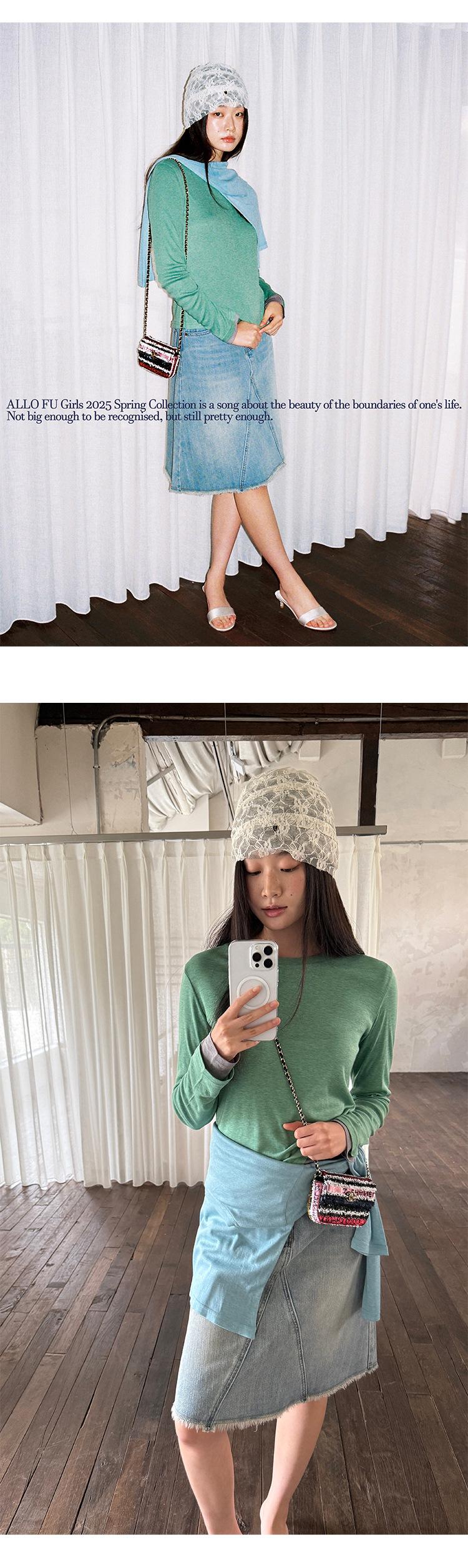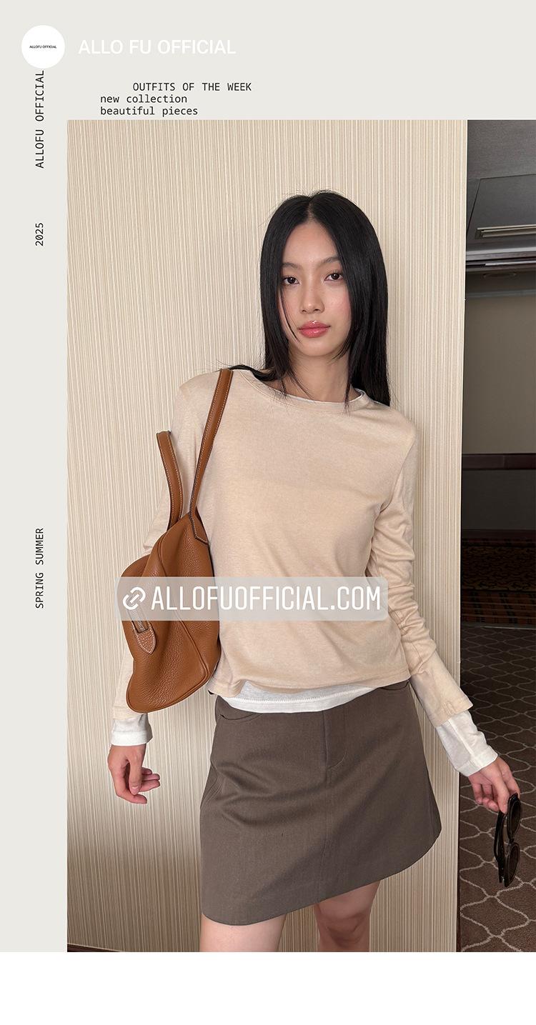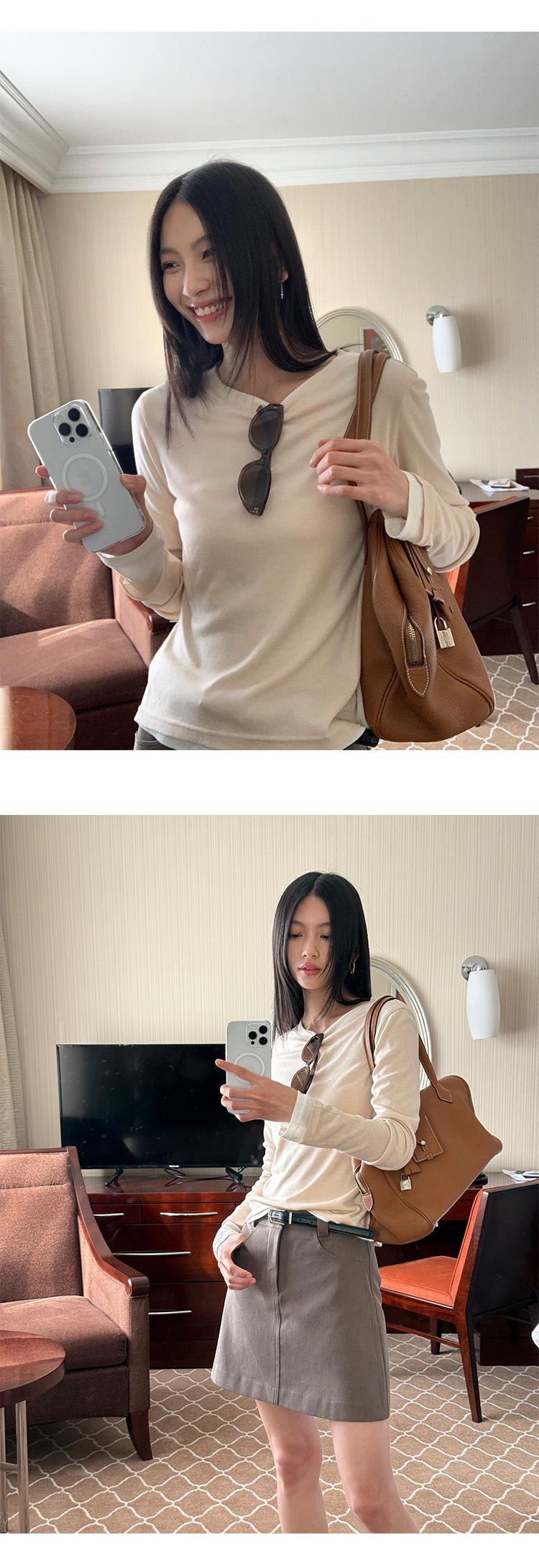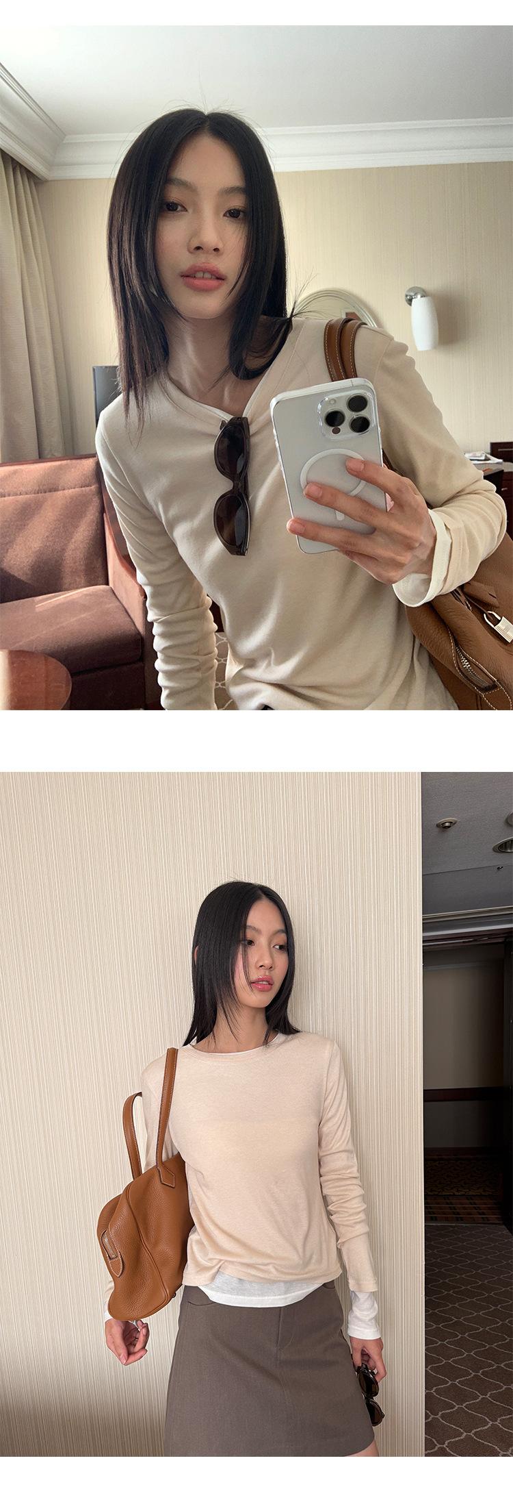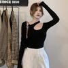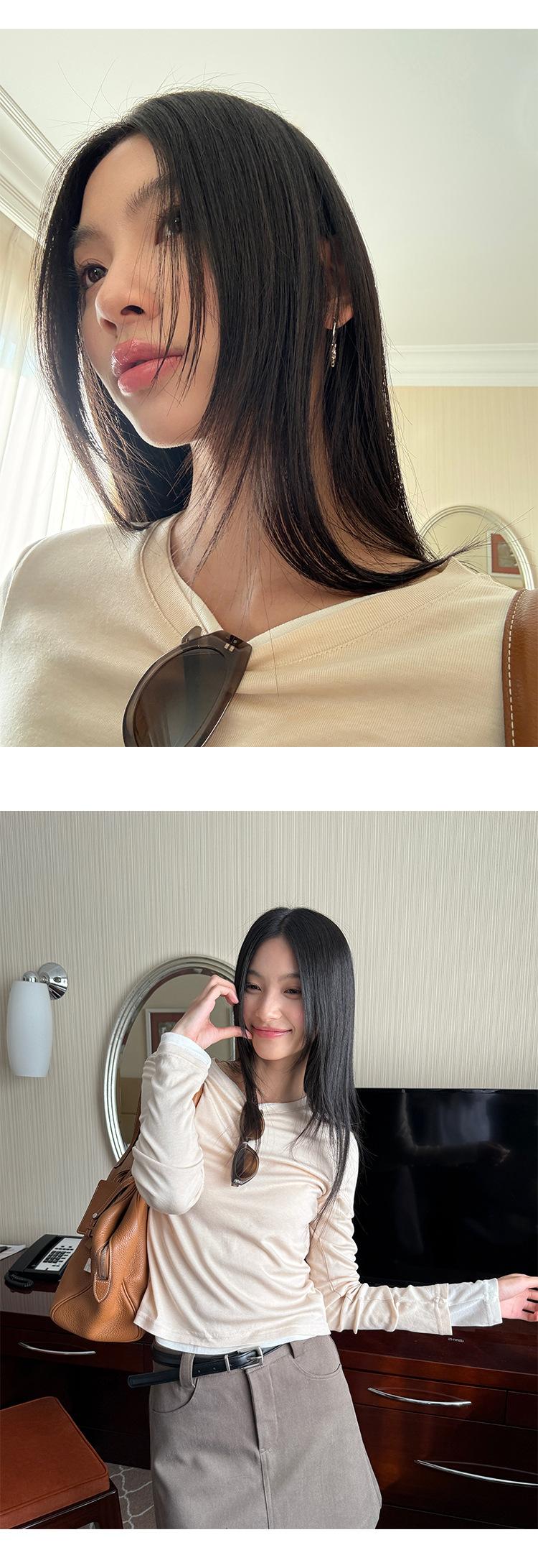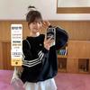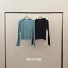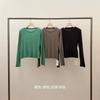 Yifu Estilo Coreano Simple, Cómodo, Suave, Holgado y Ajustado Camiseta Básica para Mujer 2025 Trece Líneas Primavera y Otoño Manga Larga 038