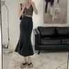 Falda vaquera elegante y ajustada de estilo coreano para mujer, nueva falda de cintura alta con abertura en la cadera, falda informal de un solo paso para desplazamientos diarios.
