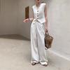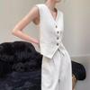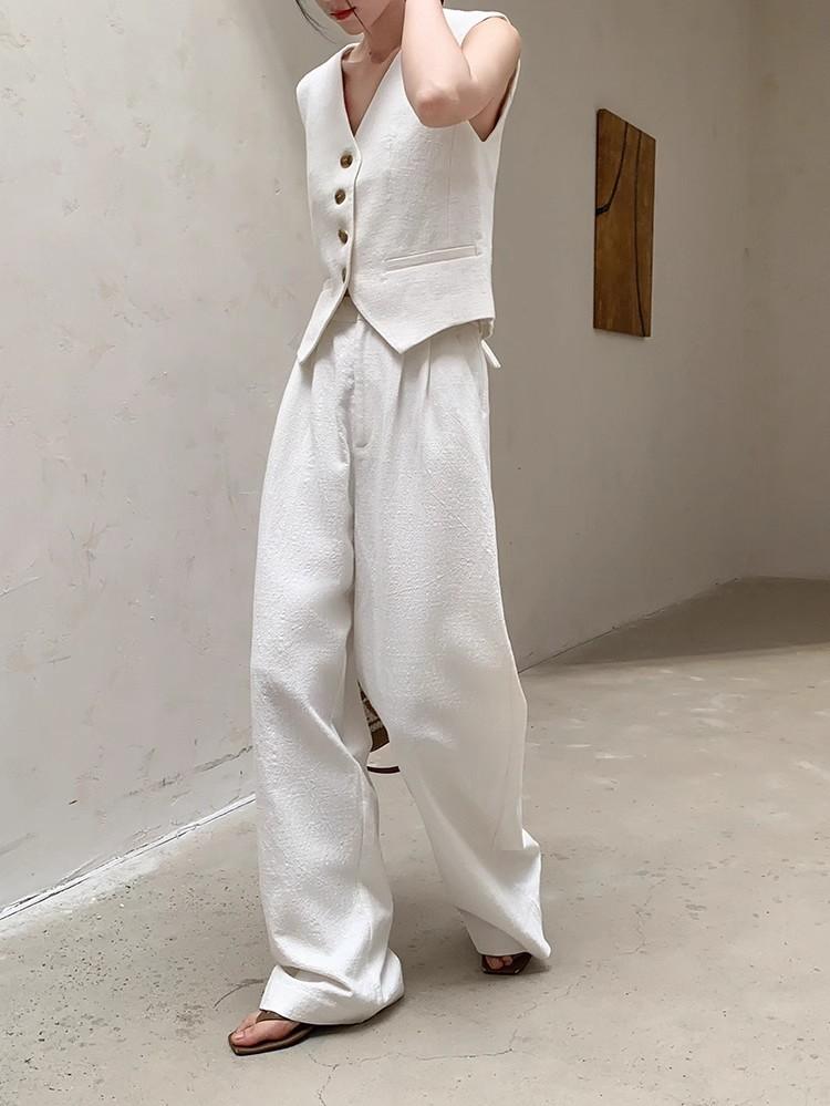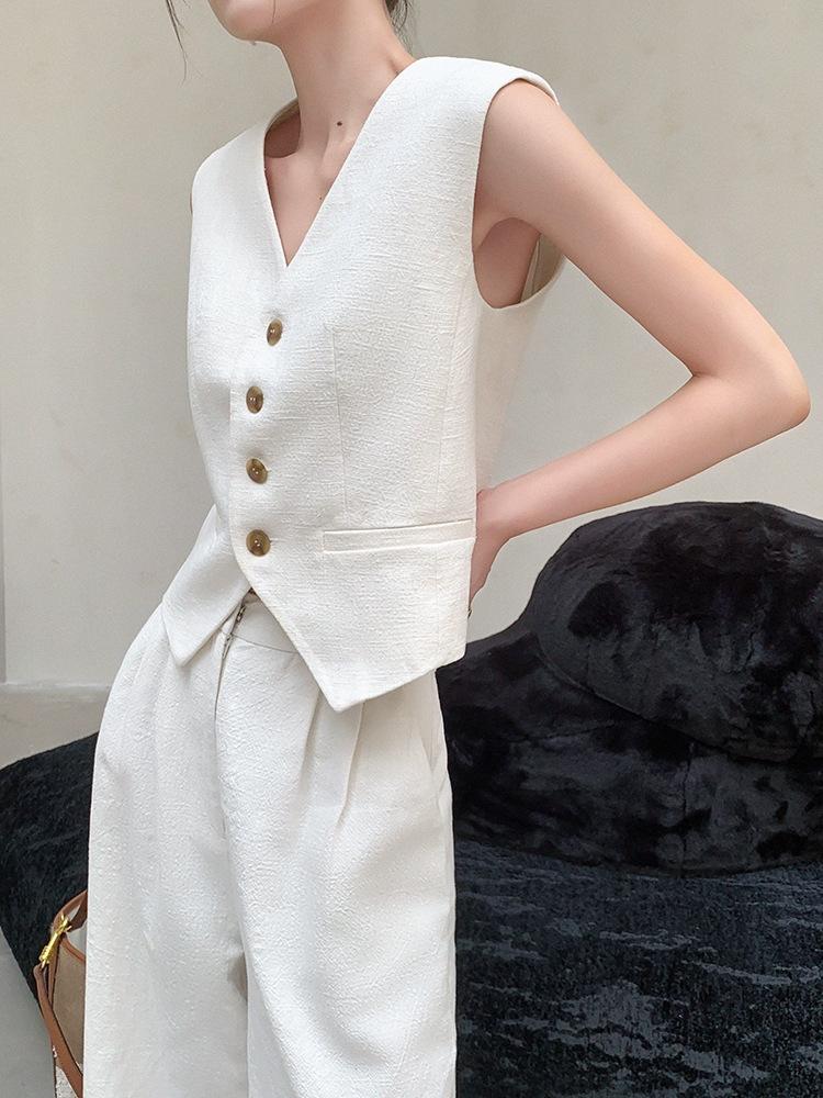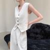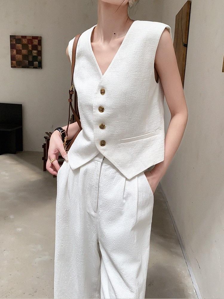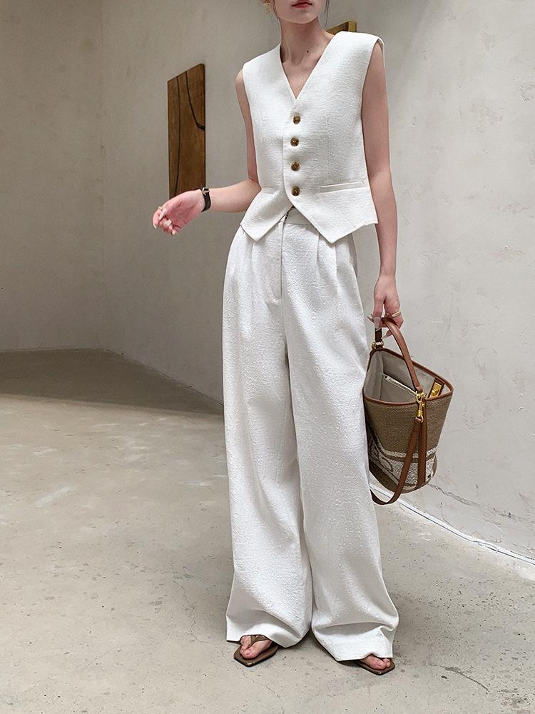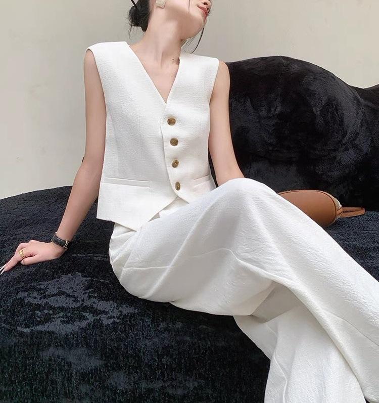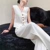 Traje Blanco de Dos Piezas Estilo Estación Europea para Mujer Verano 2025 Nuevo Top Chaleco sin Mangas Pantalones Casuales de Pierna Ancha Cintura Alta