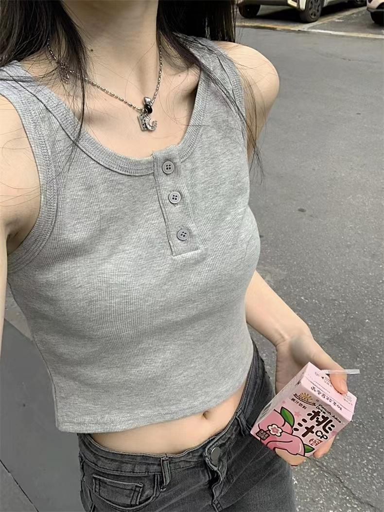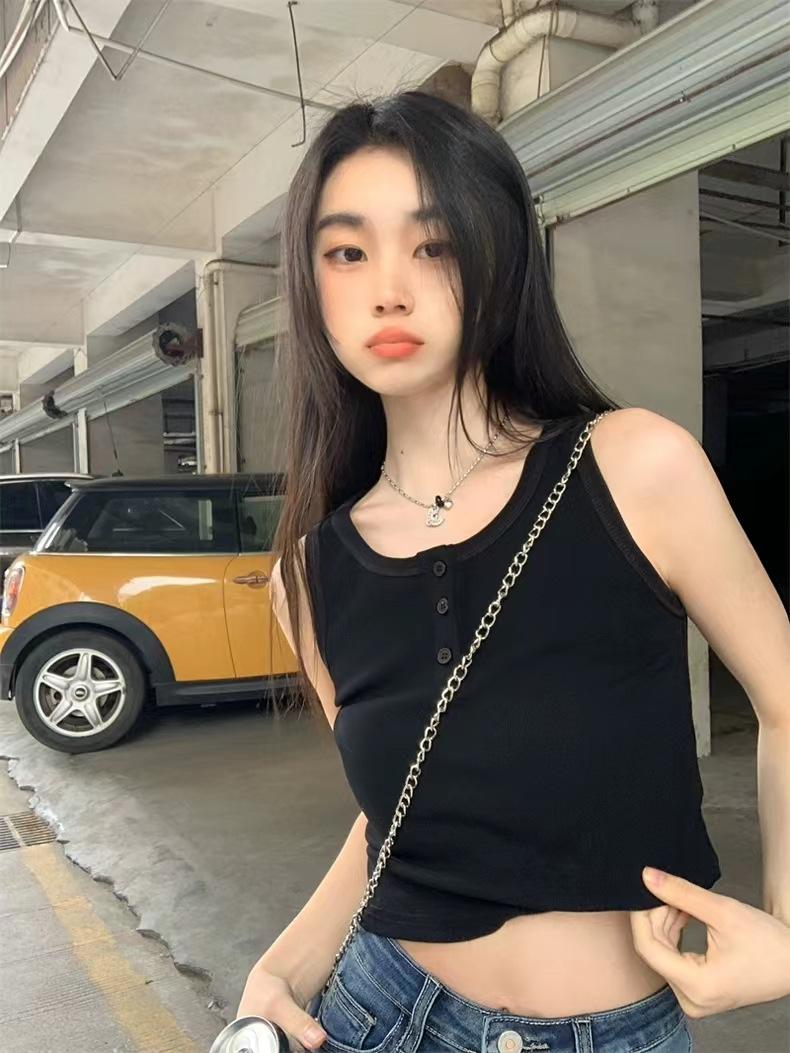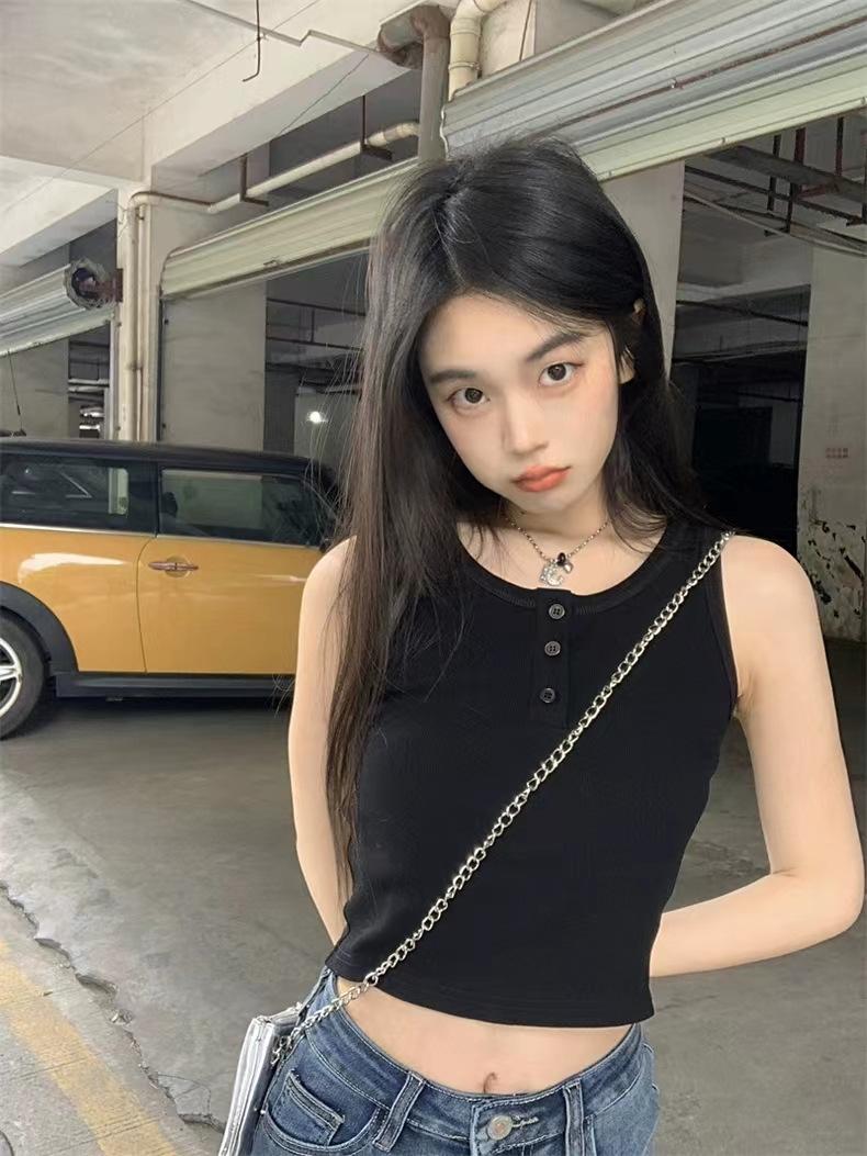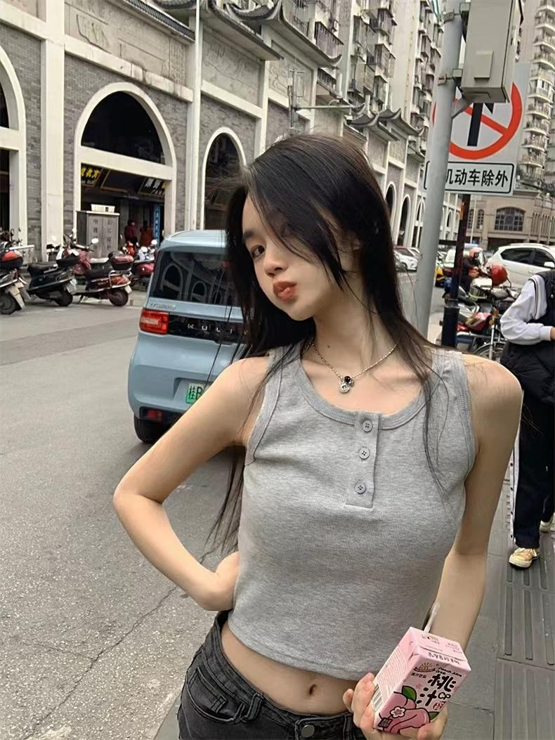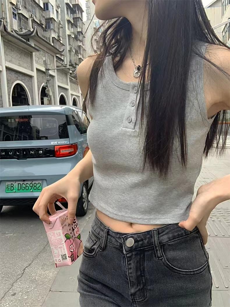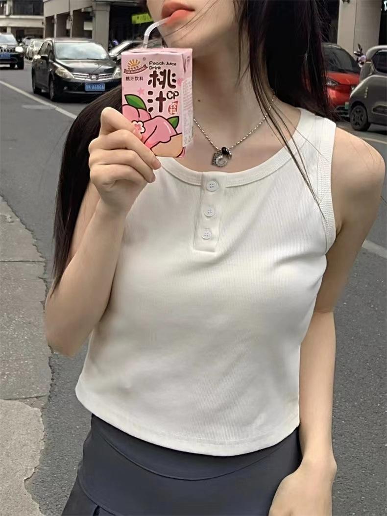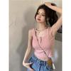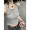 Camisola de Botones sin Mangas de Verano Nueva Ajustada Corta Camiseta Básica Top Nicho Ins