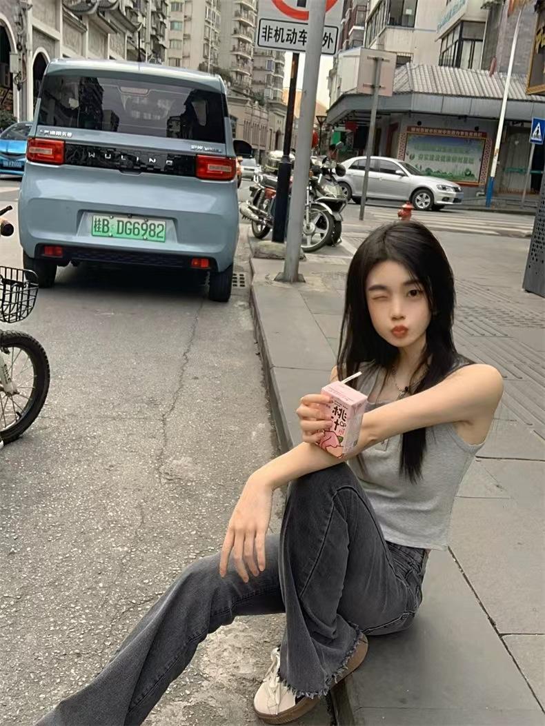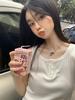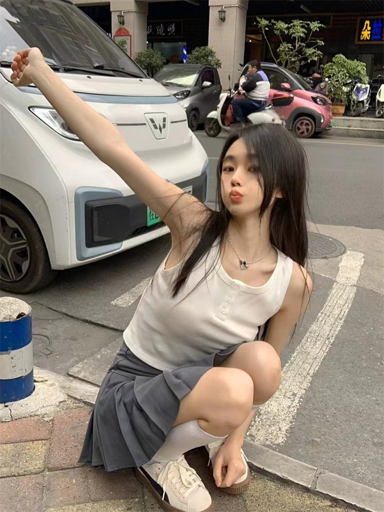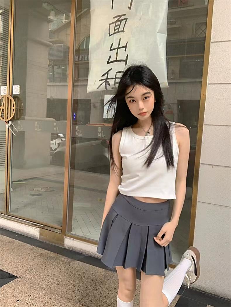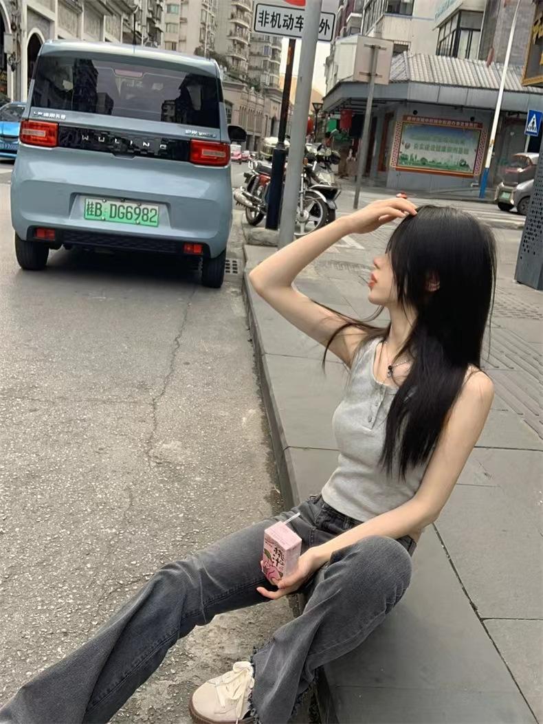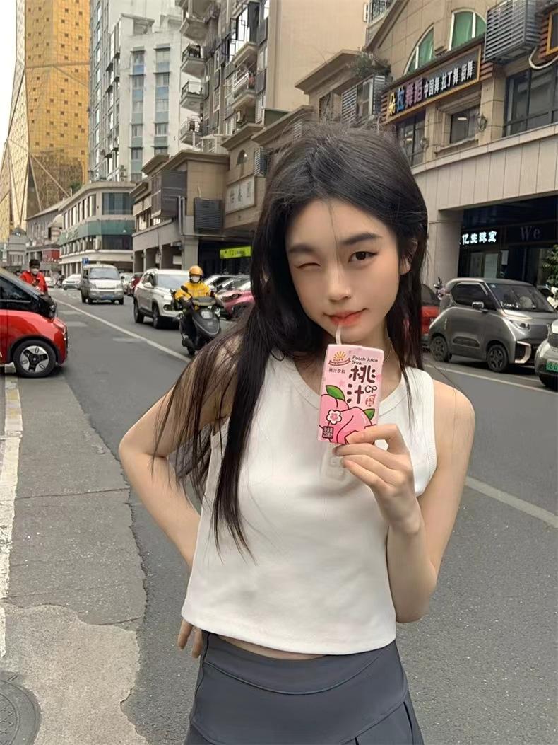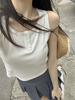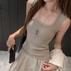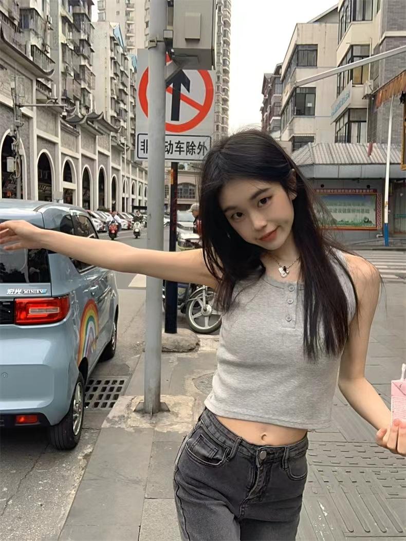 Camisola de Botones sin Mangas de Verano Nueva Ajustada Corta Camiseta Básica Top Nicho Ins