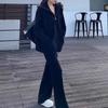 Traje deportivo casual de alta gama, moda, nuevo de primavera, cremallera, negro, holgado, top grueso de dos piezas, ropa de mujer