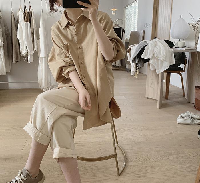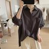 Primavera 2025 Nueva Camisa de Moda de Color Sólido Hermana Gordita Manga Larga Cuello Polo talla extra Elegante Camisa Profesional para Viajero