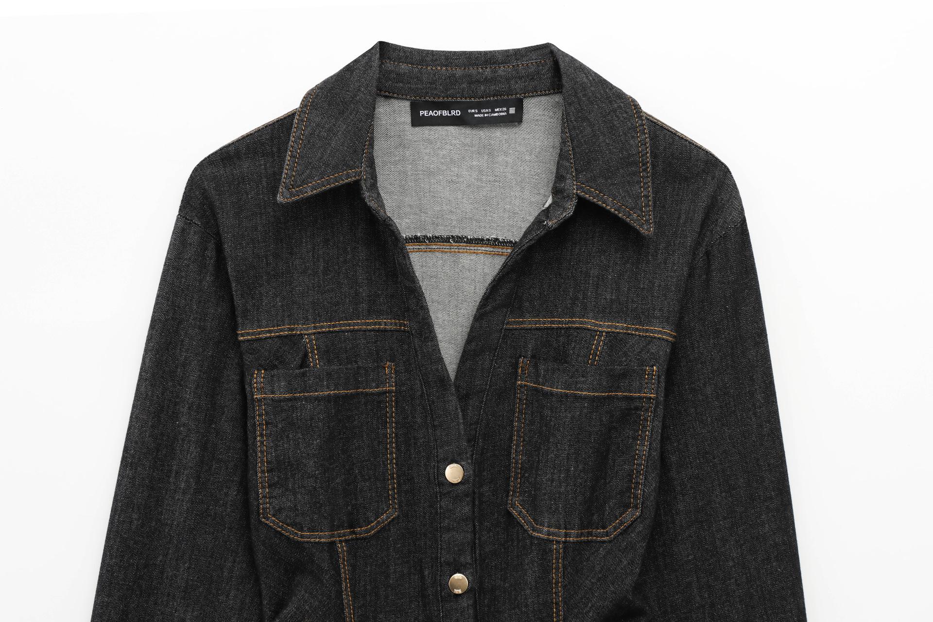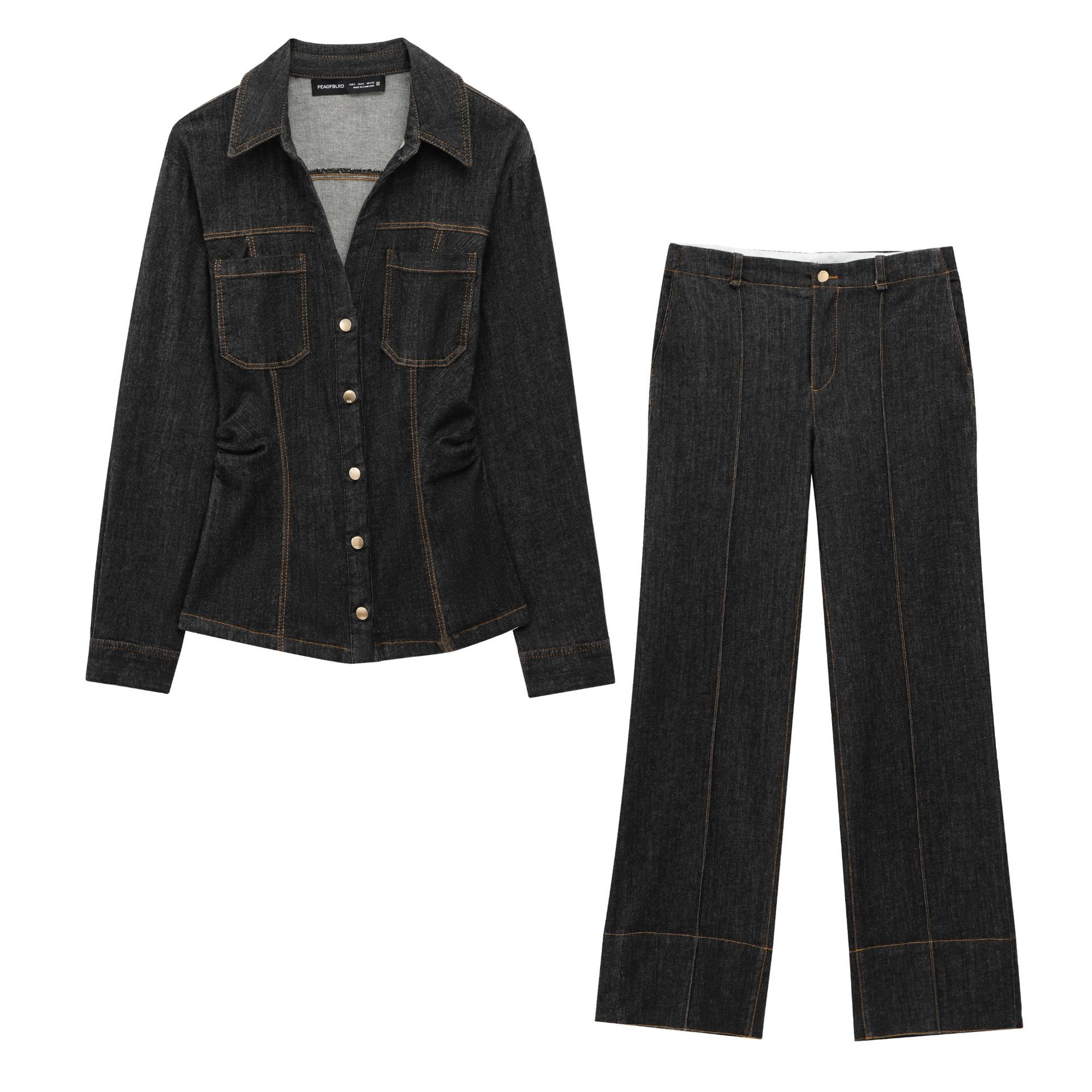 Traje de camisa y pantalón ajustado de mezclilla con explosiones de AliExpress para mujeres europeas y americanas transfronterizas